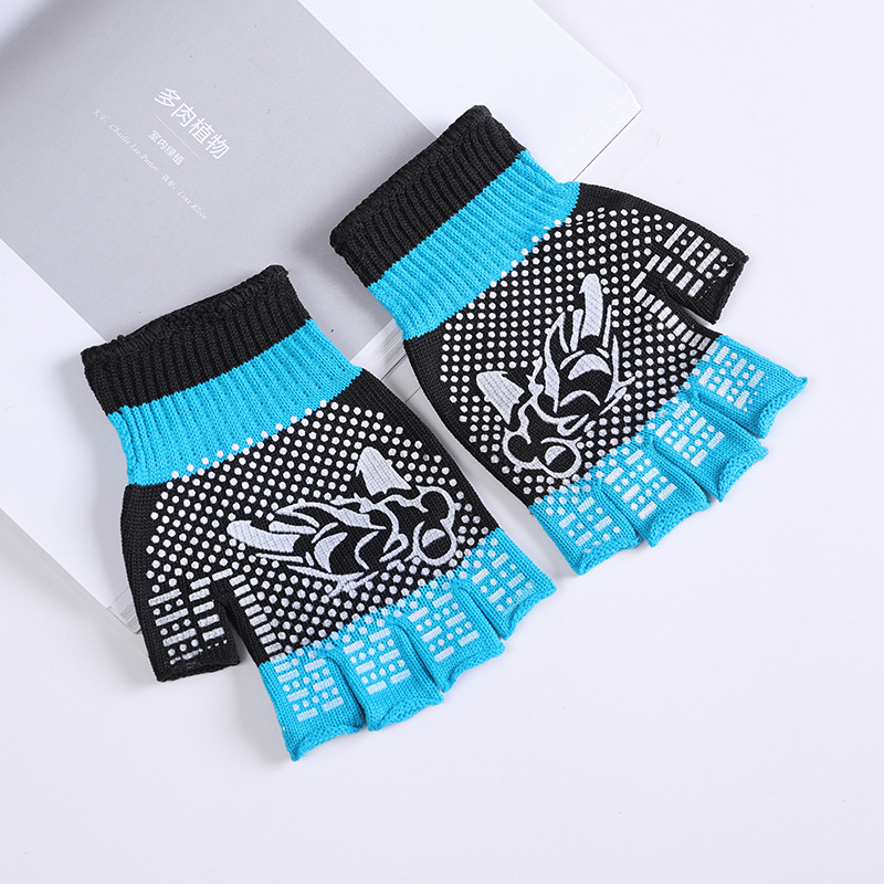 • 하프 핑거 스카이 블루 프린트 장갑
