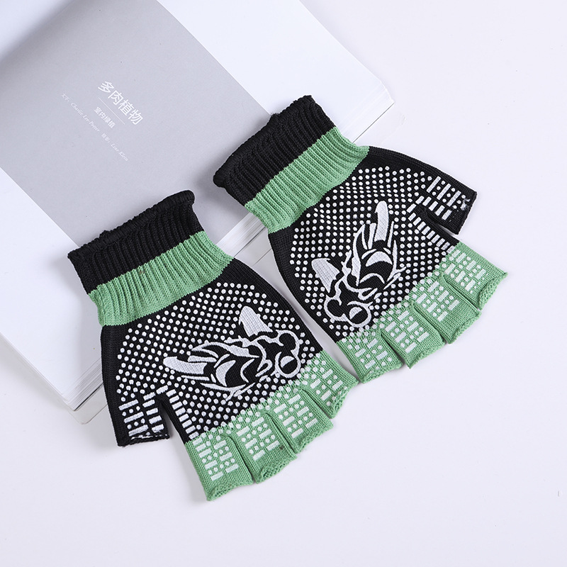 • 하프 핑거 그린 프린트 장갑