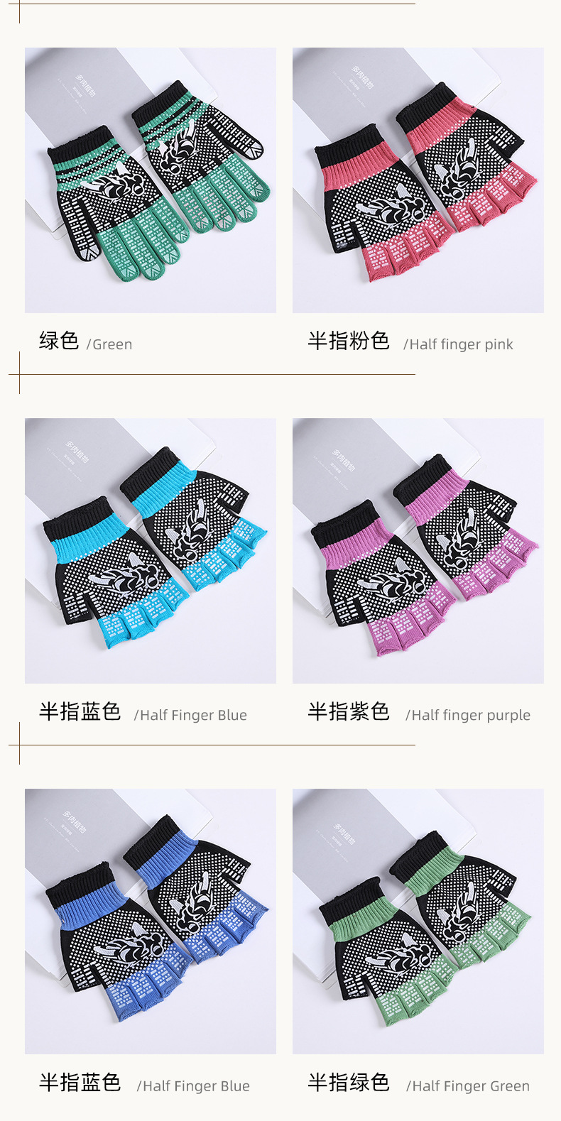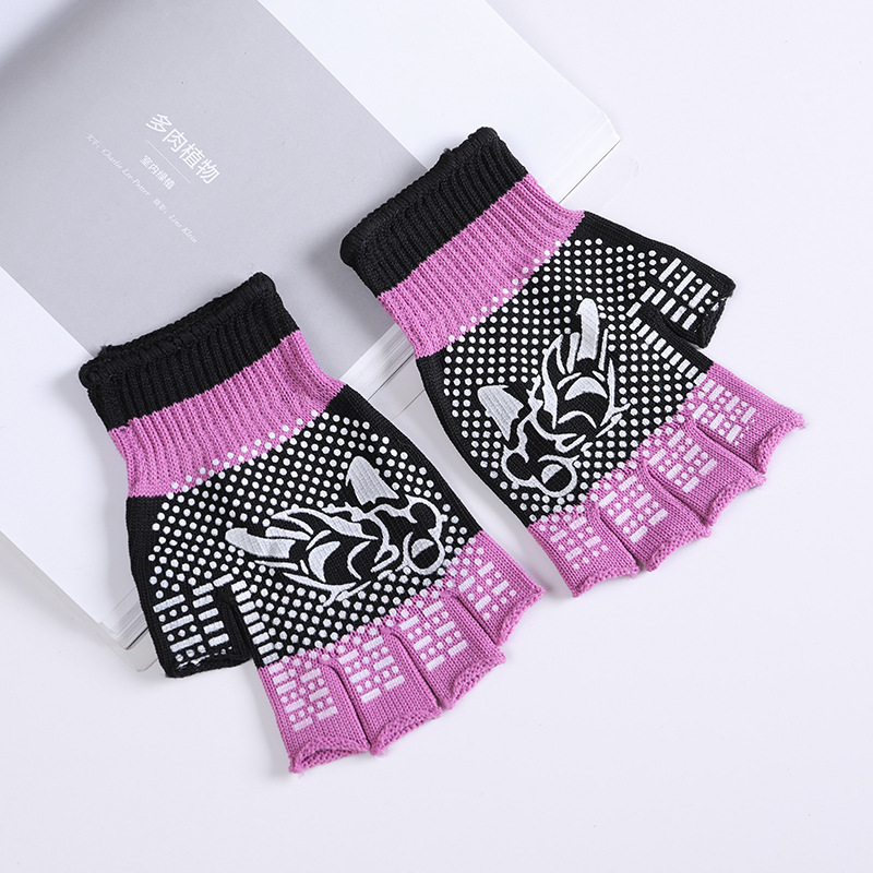 • 반 손가락 보라색 인쇄 장갑