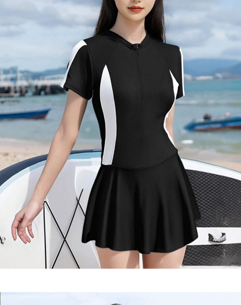 인기 여성 수영복 원피스 스커트 스타일 보수적 스포츠 배 커버 슬리밍 온천 전문 트레이닝 수영복 공장 직판스토어 가기