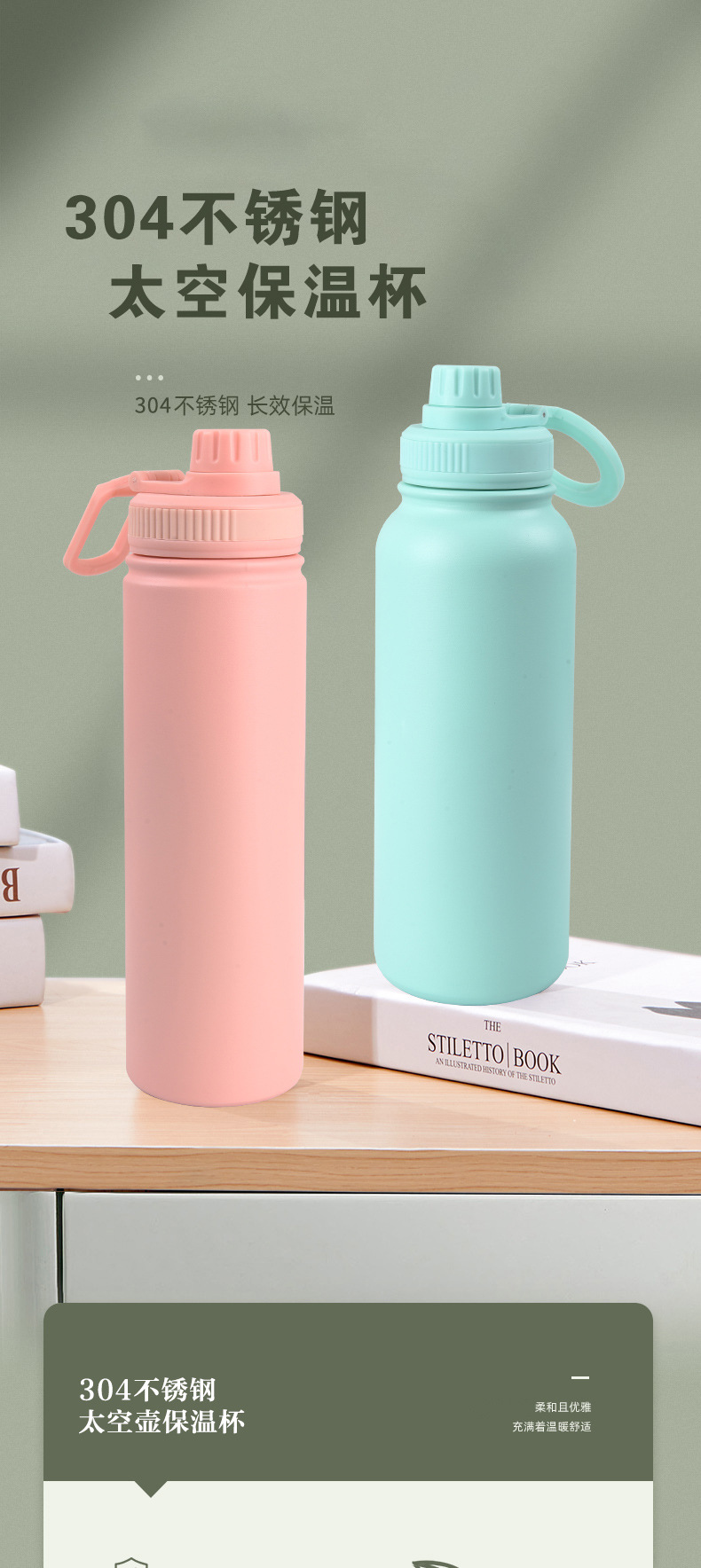 국경 간 뜨거운 판매 대용량 보온병 컵 304 스테인레스 스틸 공간 냄비 휴대용 야외 휴대용 스포츠 주전자 도매