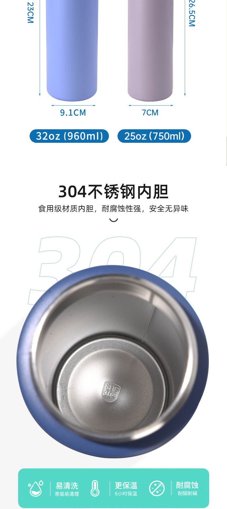 국경 간 뜨거운 판매 대용량 보온병 컵 304 스테인레스 스틸 공간 냄비 휴대용 야외 휴대용 스포츠 주전자 도매스토어 가기
