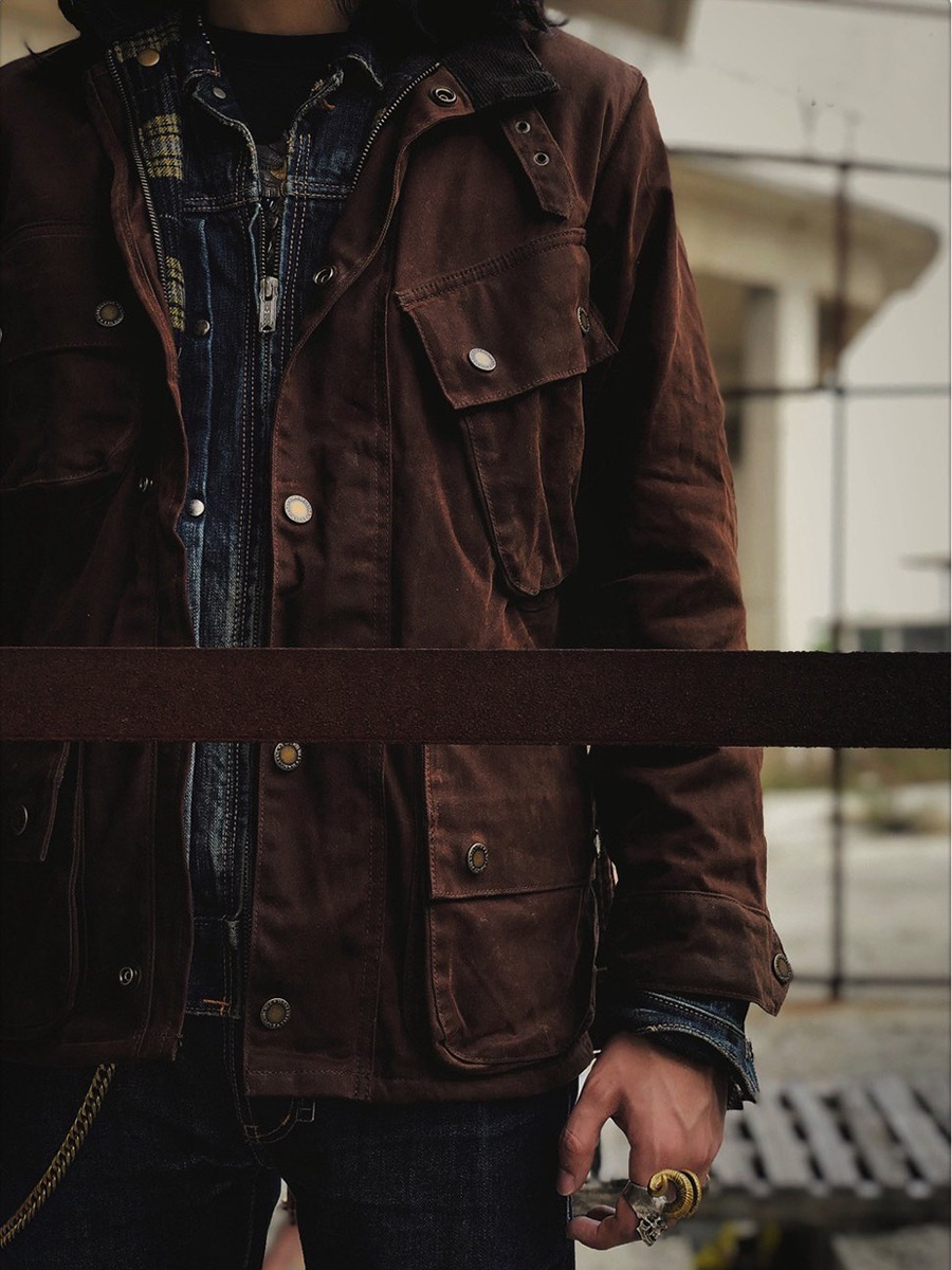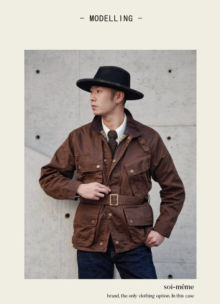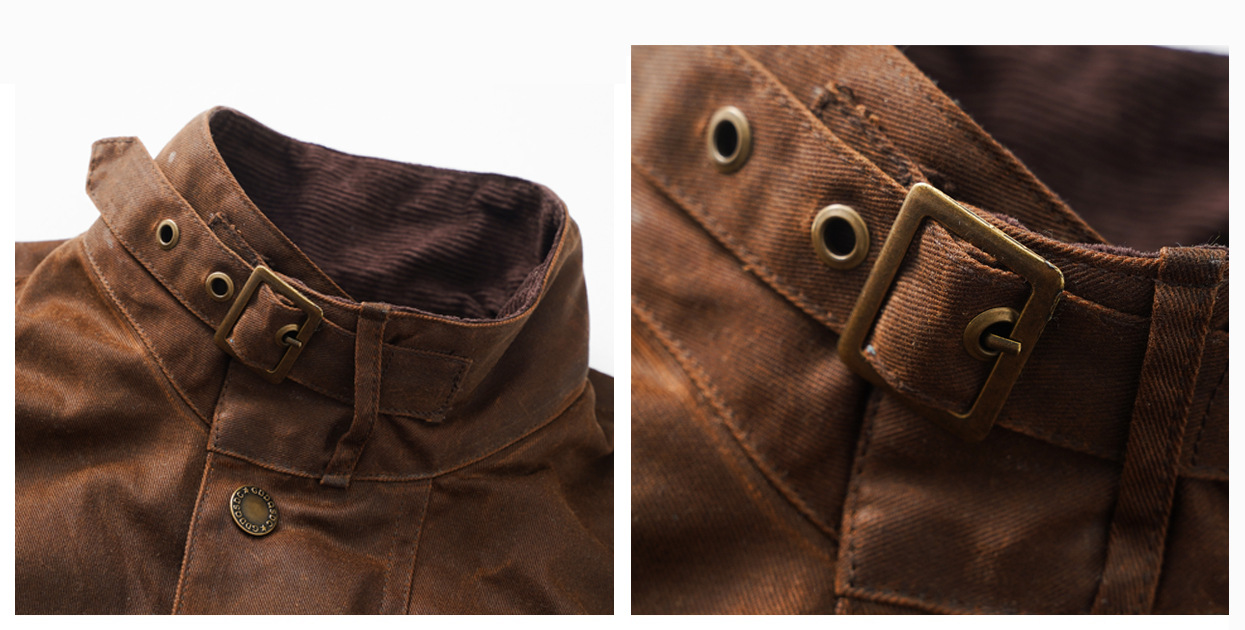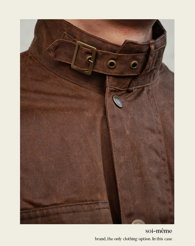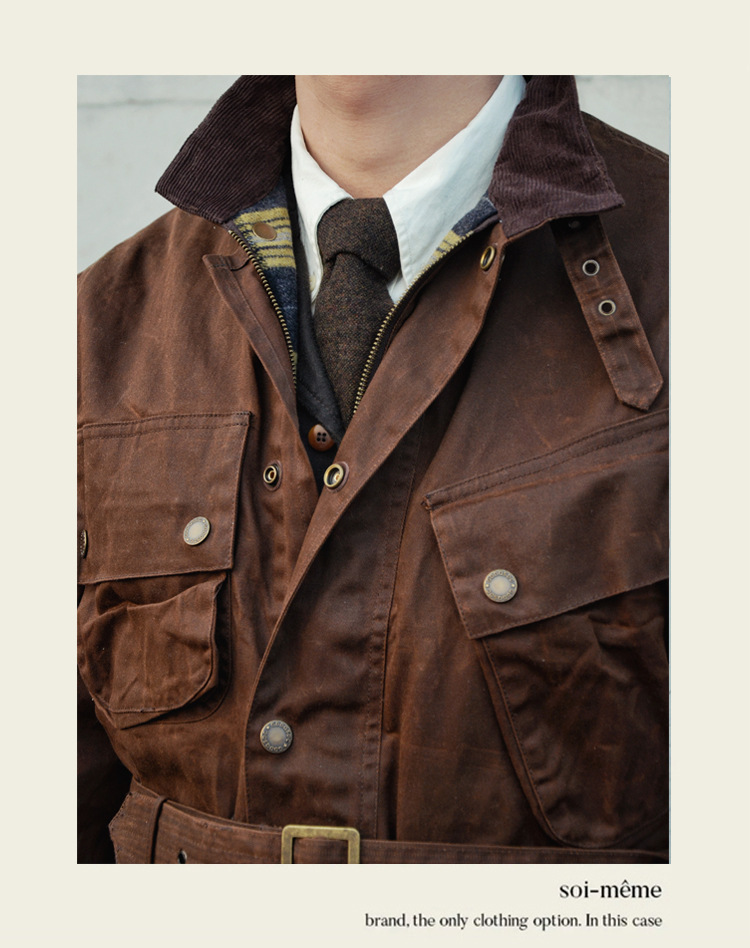 Shenwu 아메리칸 레트로 헤비급 오일 왁스 중간 길이 재킷 남성용 사냥 자전거 재킷 윈드 브레이커 아미 카키 가을, 겨울스토어 가기