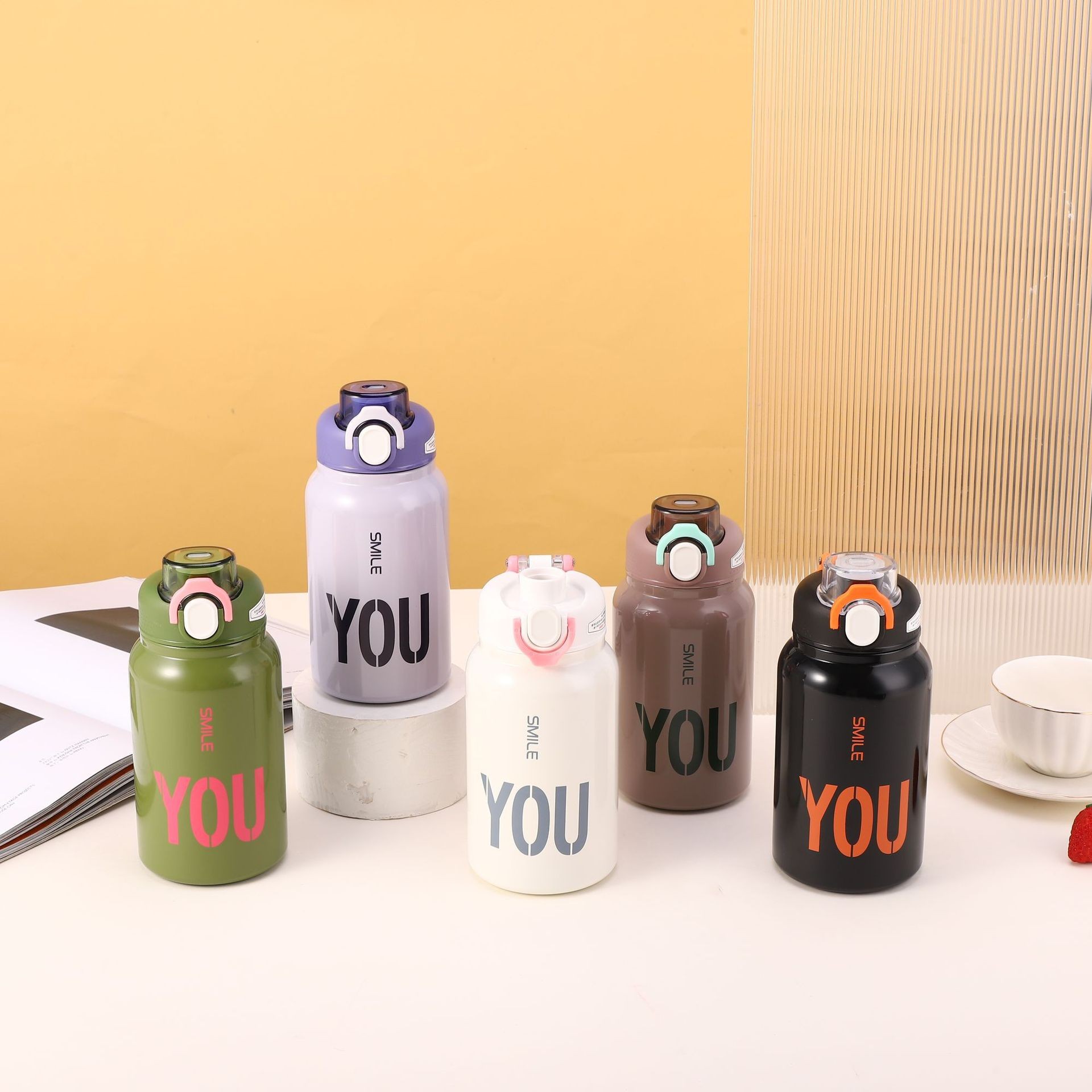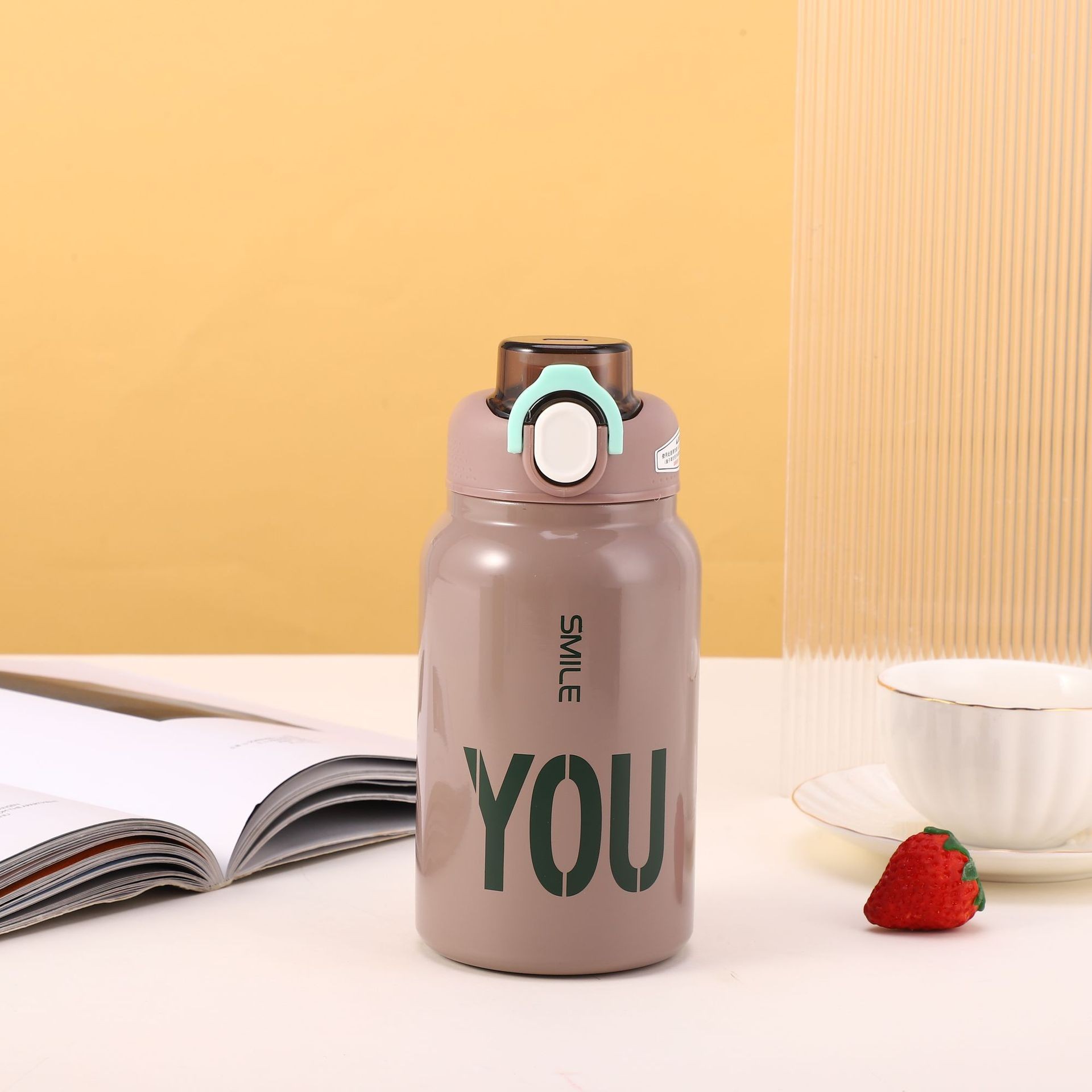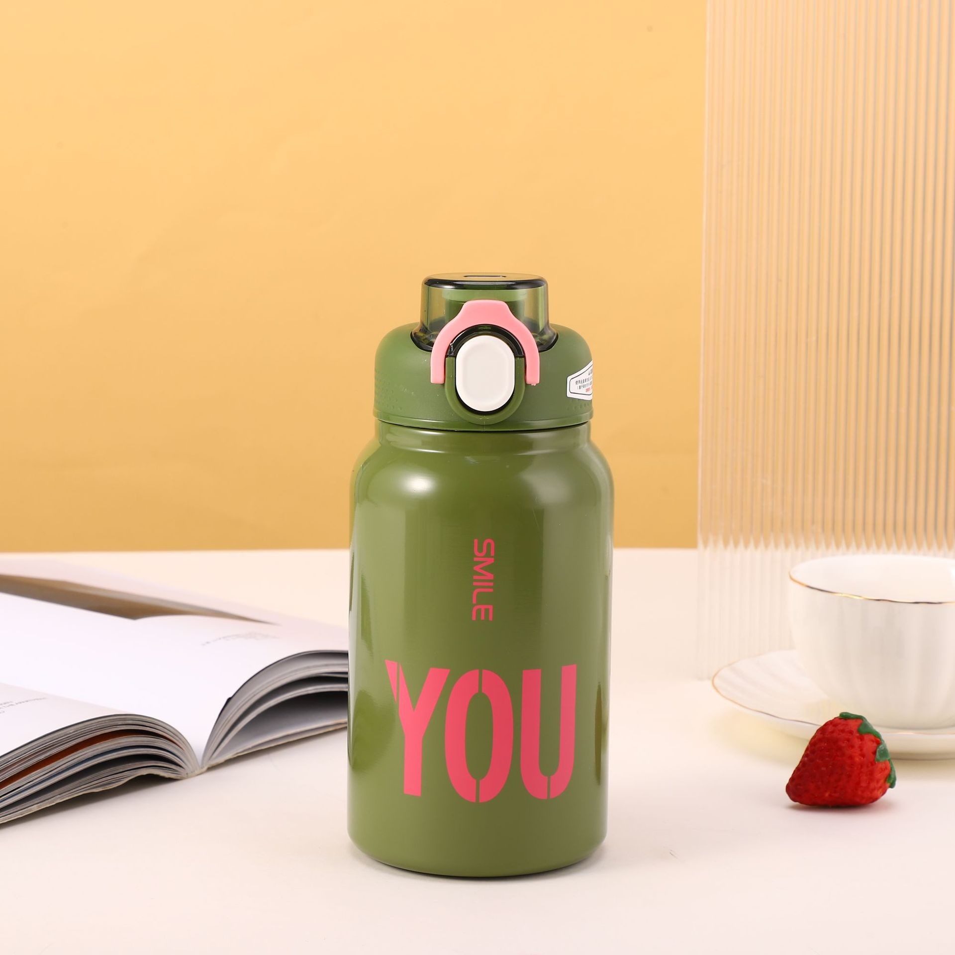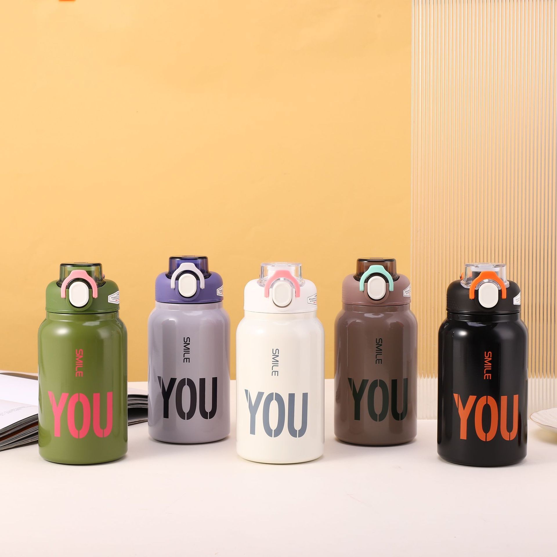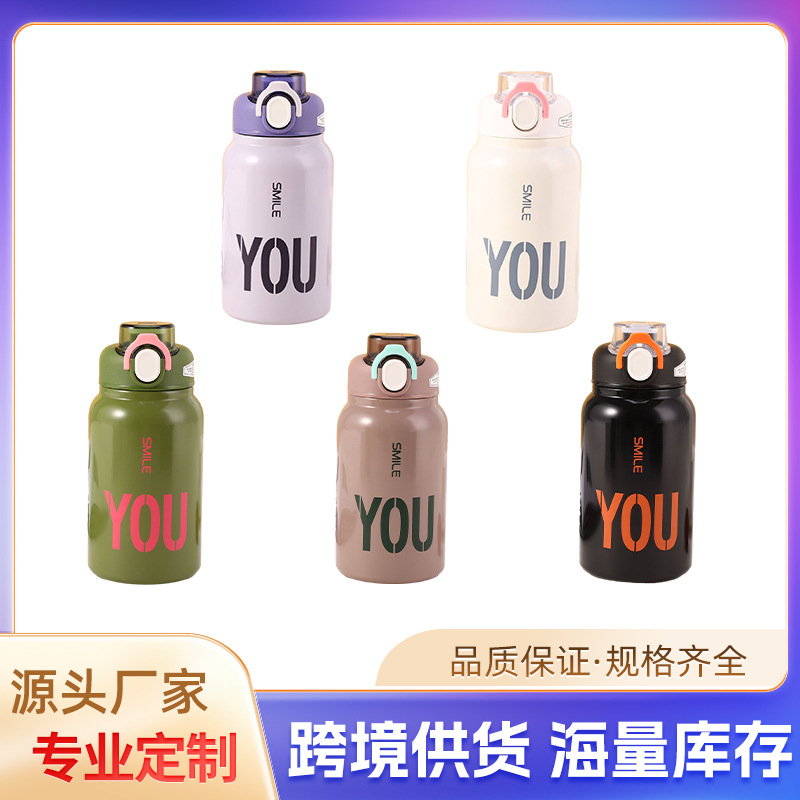 크로스 보더 304 스테인레스 스틸 핸들 등산 스포츠 주전자 야외 휴대용 더블 레이어 탄성 뚜껑 다이렉트 음료 머그 도매스토어 가기