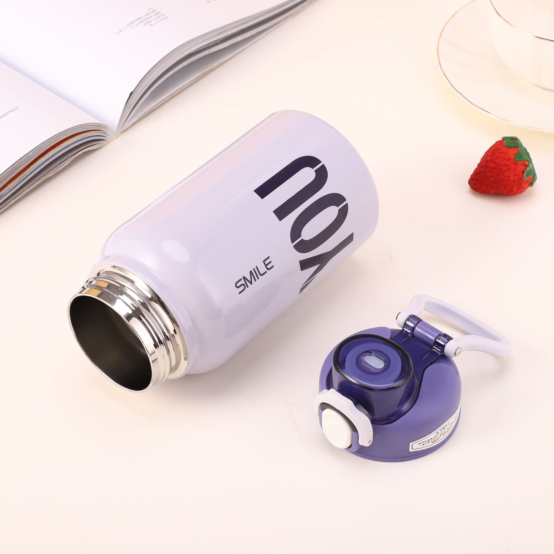 크로스 보더 304 스테인레스 스틸 핸들 등산 스포츠 주전자 야외 휴대용 더블 레이어 탄성 뚜껑 다이렉트 음료 머그 도매
