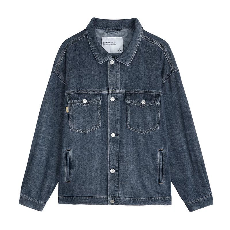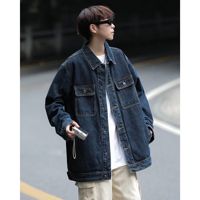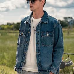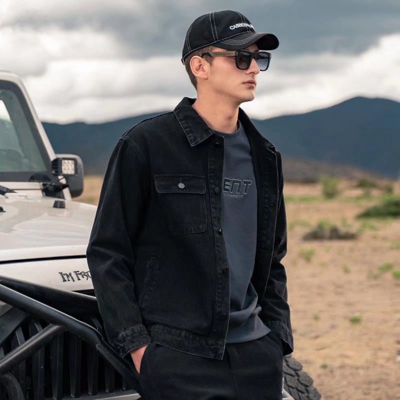牛仔外套男2022春秋新款纯色潮牌宽松翻领工装夹克上衣室外工作服