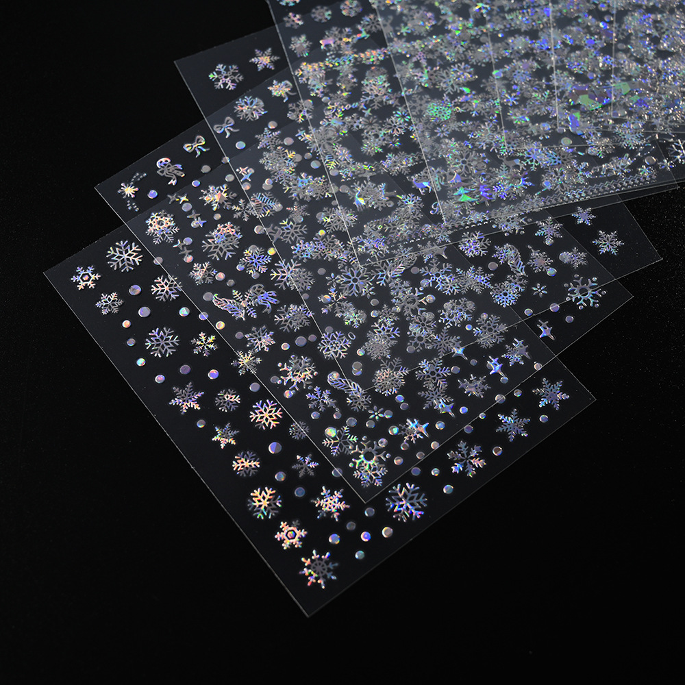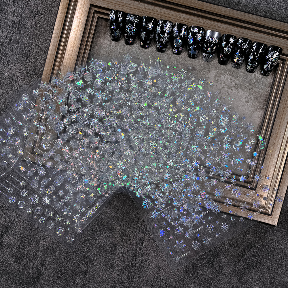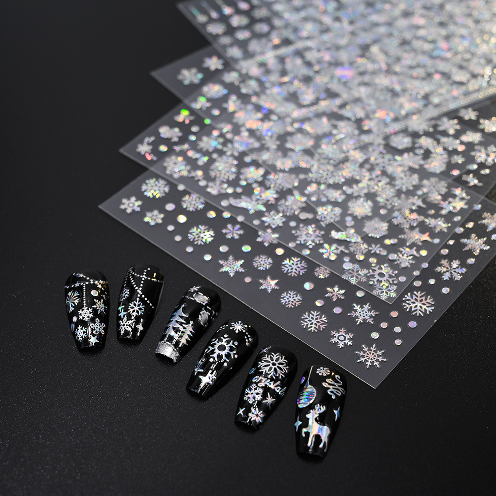 작은 빨간 책 폭발 크리스마스 눈송이 네일 아트 스티커 레이저 실버 흰색 눈송이 엘크 크리스마스 네일 장식 스티커스토어 가기