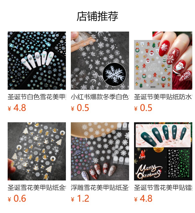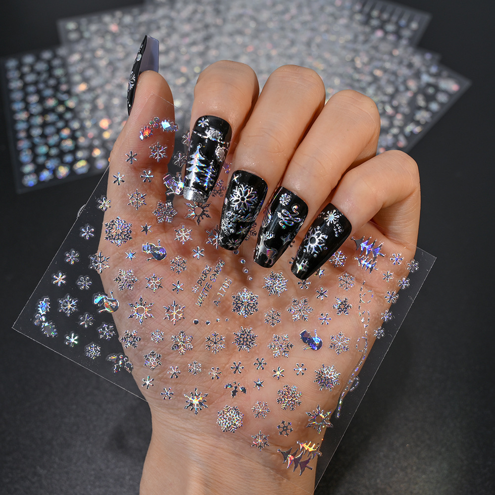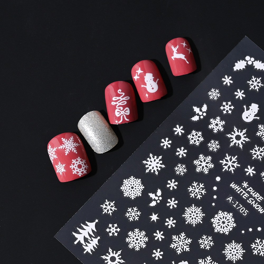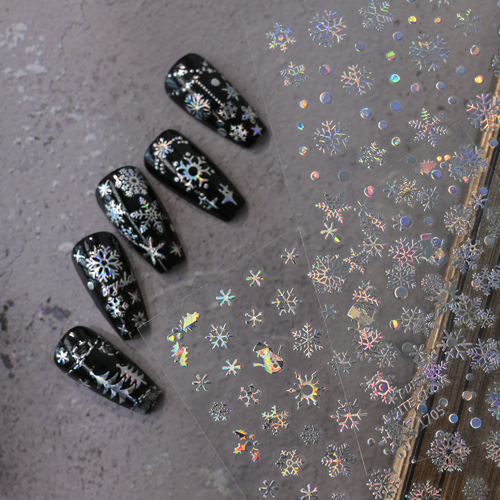 작은 빨간 책 폭발 크리스마스 눈송이 네일 아트 스티커 레이저 실버 흰색 눈송이 엘크 크리스마스 네일 장식 스티커스토어 가기