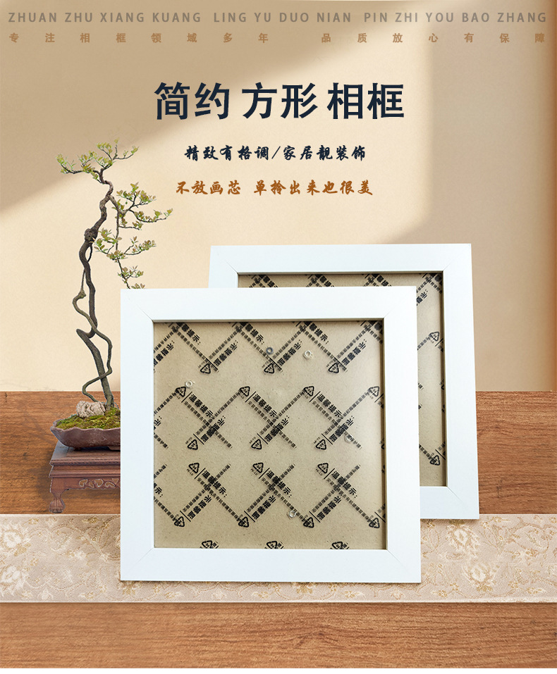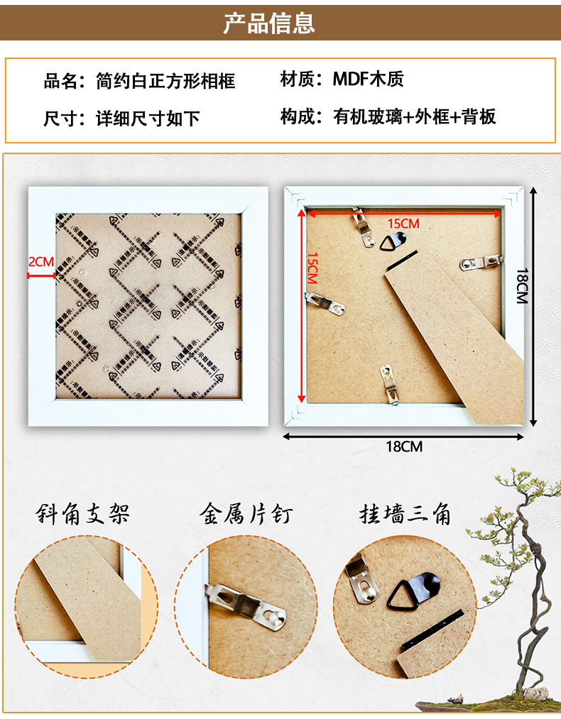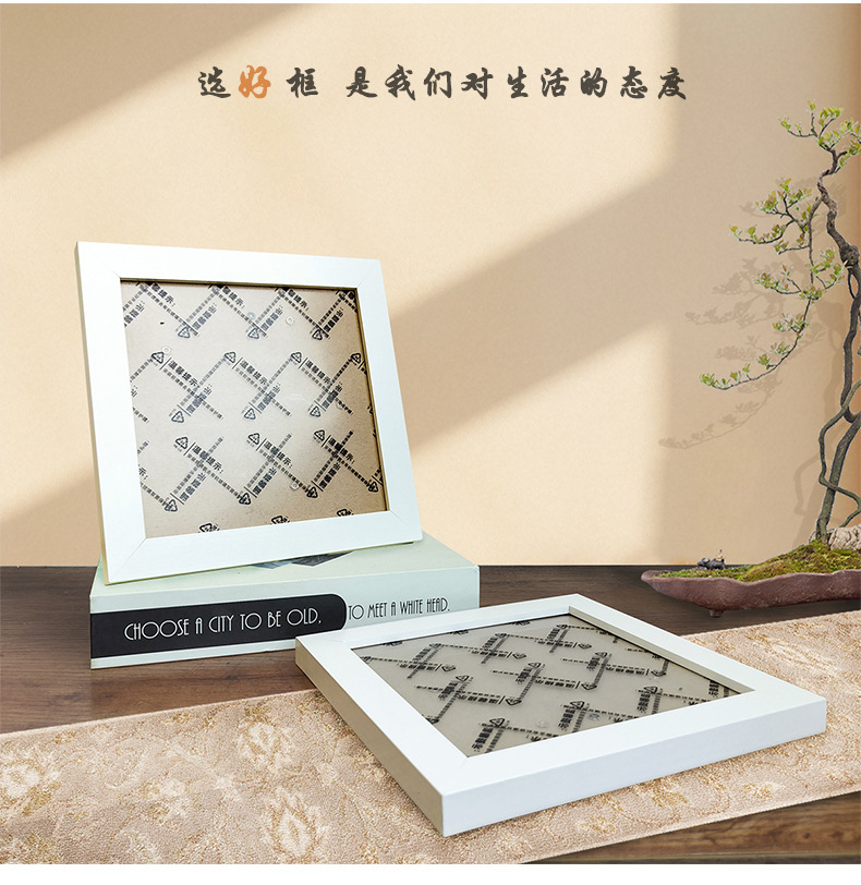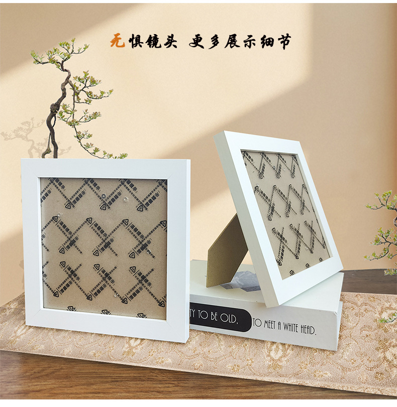 정사각형 액자 다이아몬드 액자 15x 15cm 외부 크기 18x 18cm 밀도판 목재 프레임 작은 흰색 액자