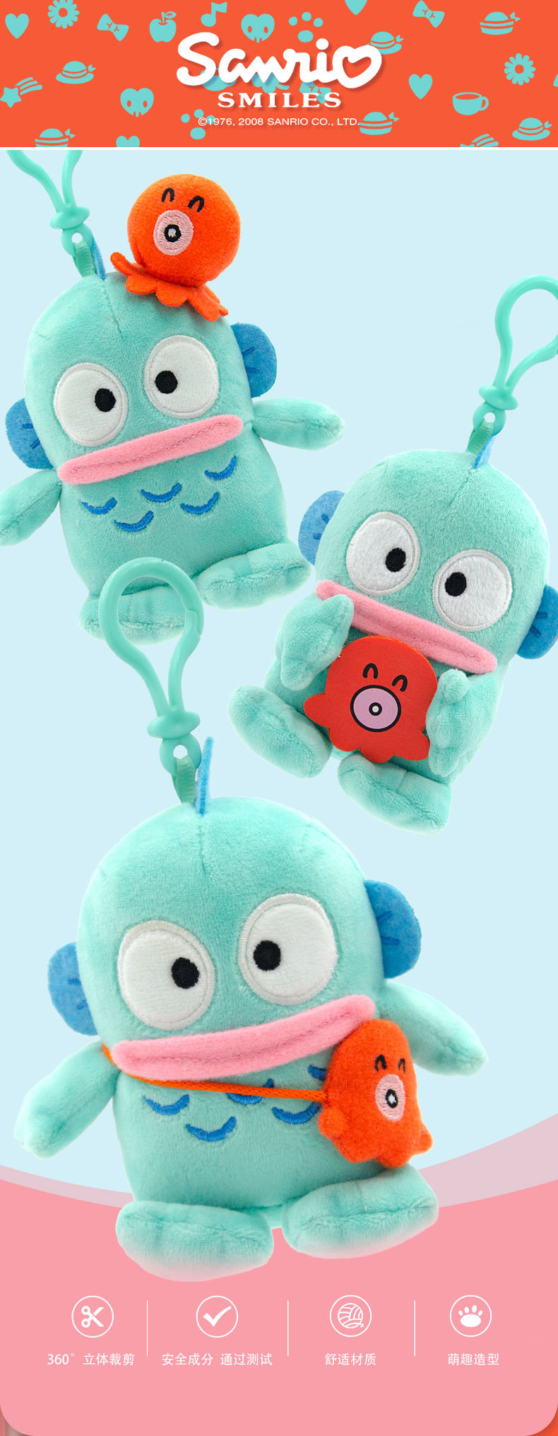 정품 산리오 인형 펜던트 반 어부 한턴 열쇠 고리 못생긴 물고기 봉제 장난감 만화 잡는 기계 인형 여성스토어 가기