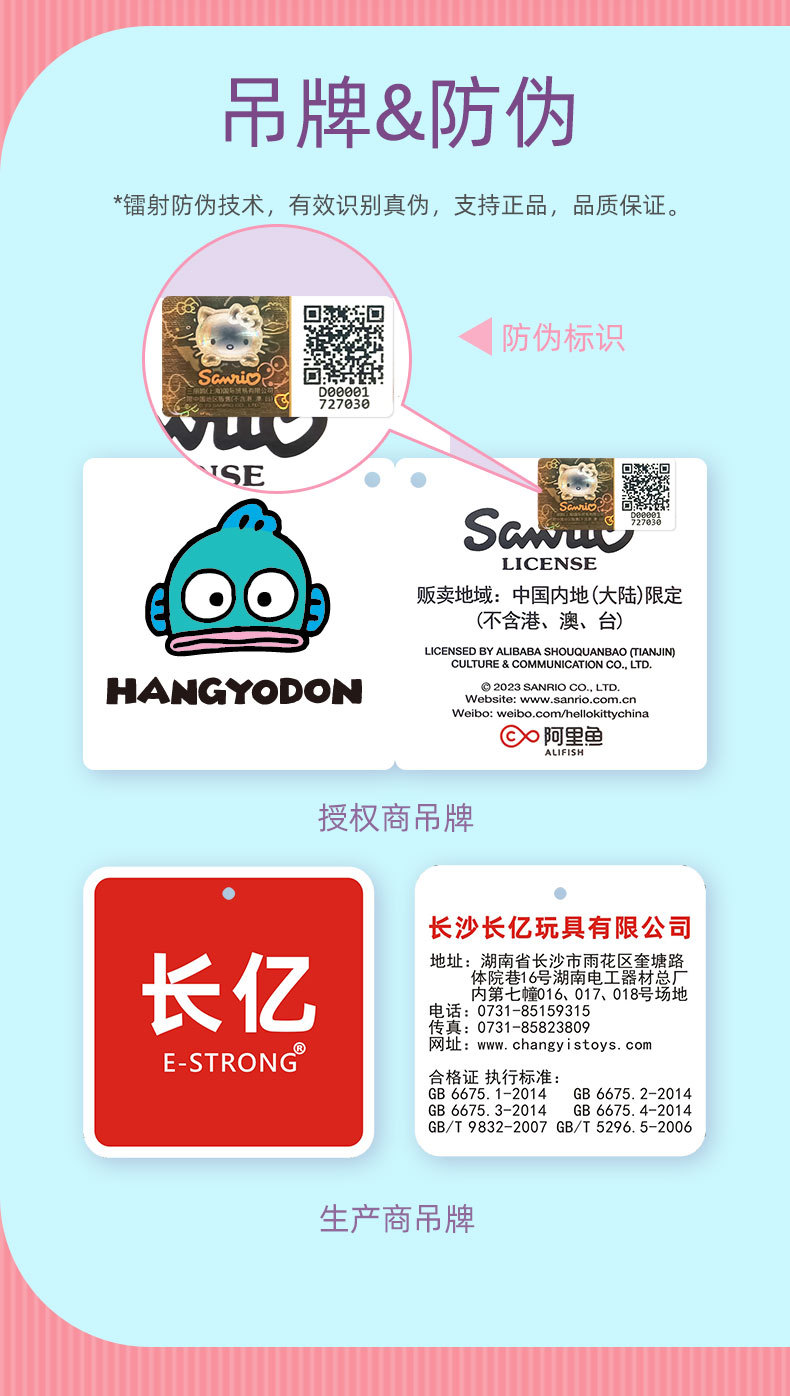 정품 산리오 인형 펜던트 반 어부 한턴 열쇠 고리 못생긴 물고기 봉제 장난감 만화 잡는 기계 인형 여성