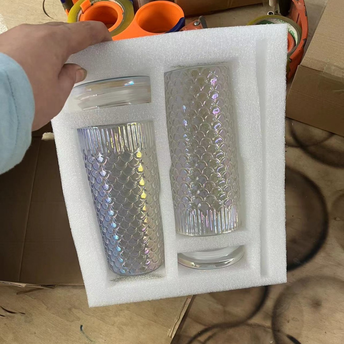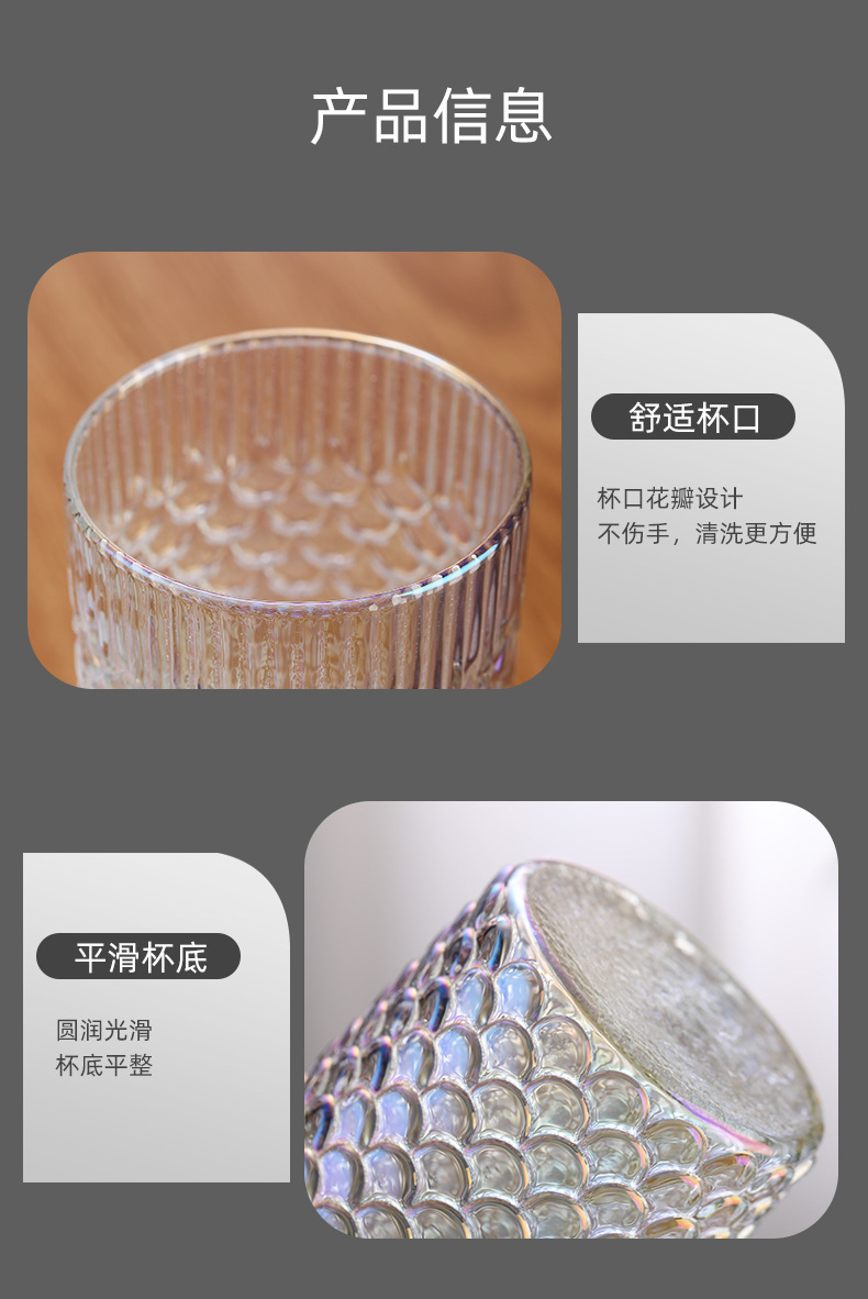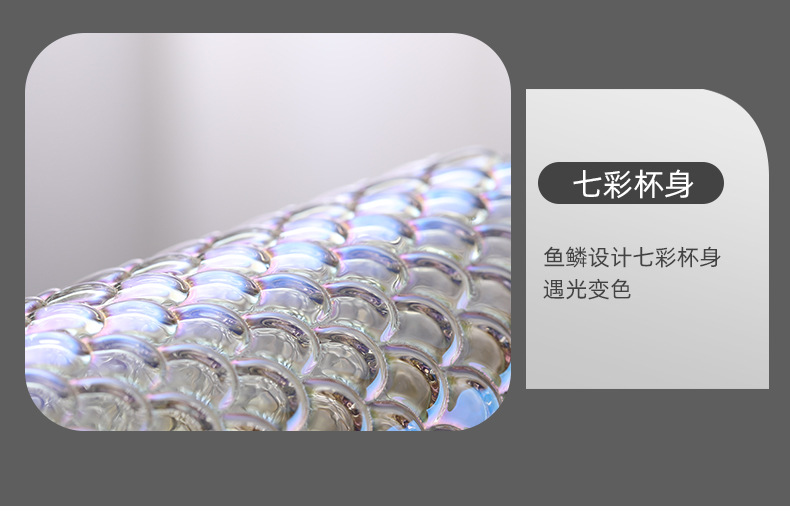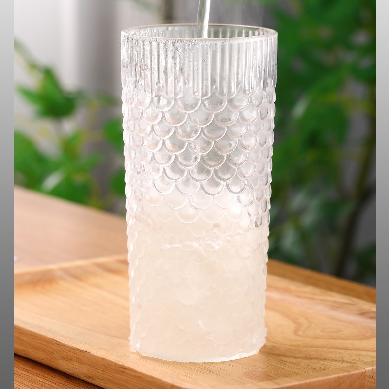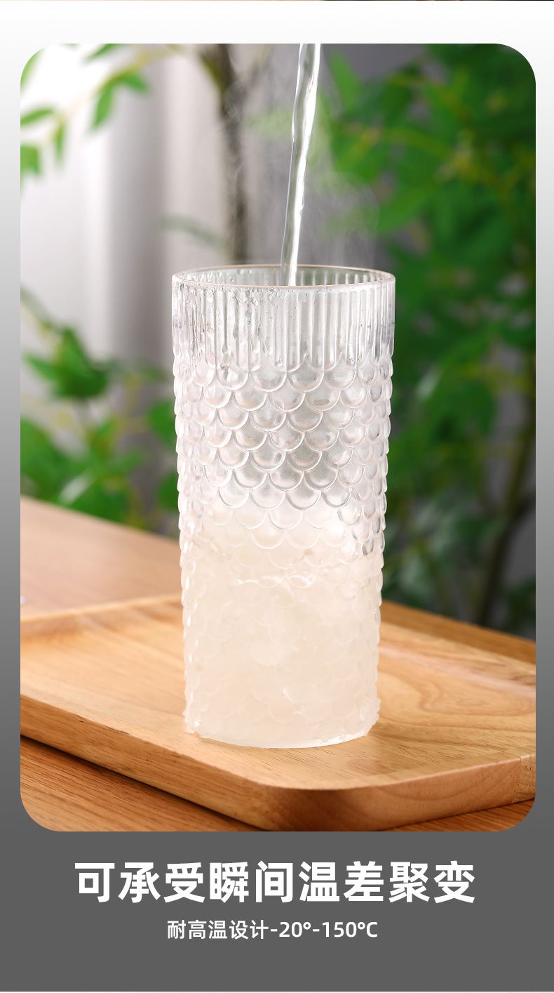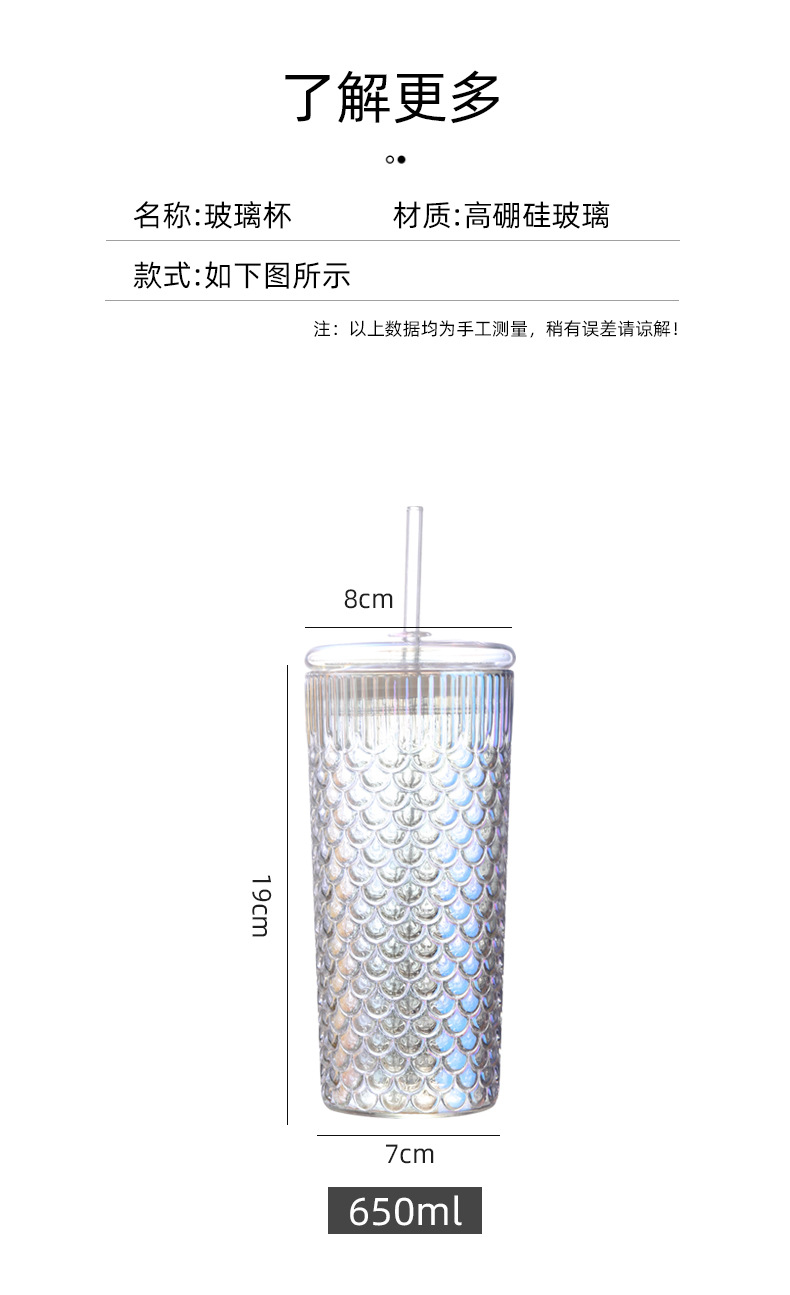 뚜껑이 있는 창의적인 유리 빨대 컵, 고급스러운 가정용 유리 물컵, 고온 방지 생선 비늘 패턴 밀크 티 컵, 차가운 음료 컵스토어 가기