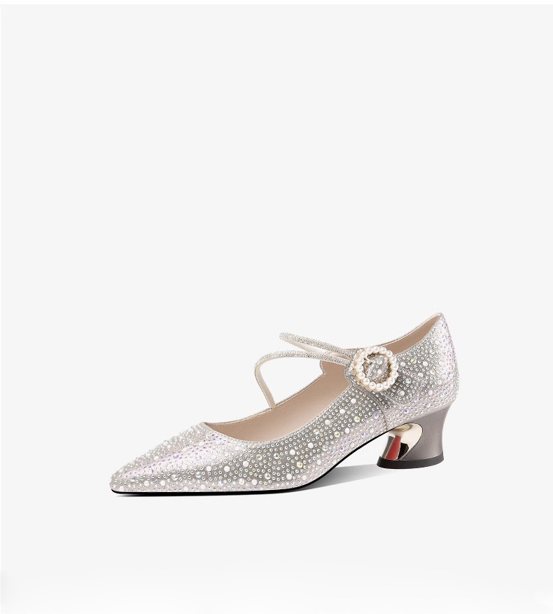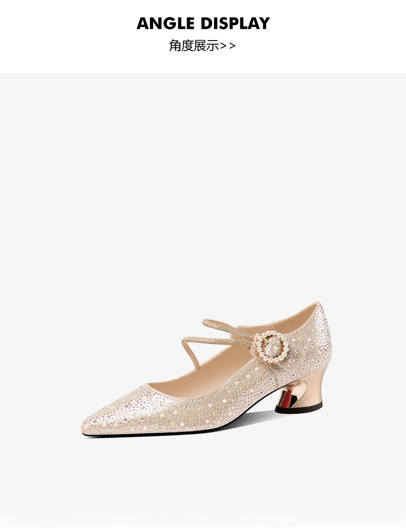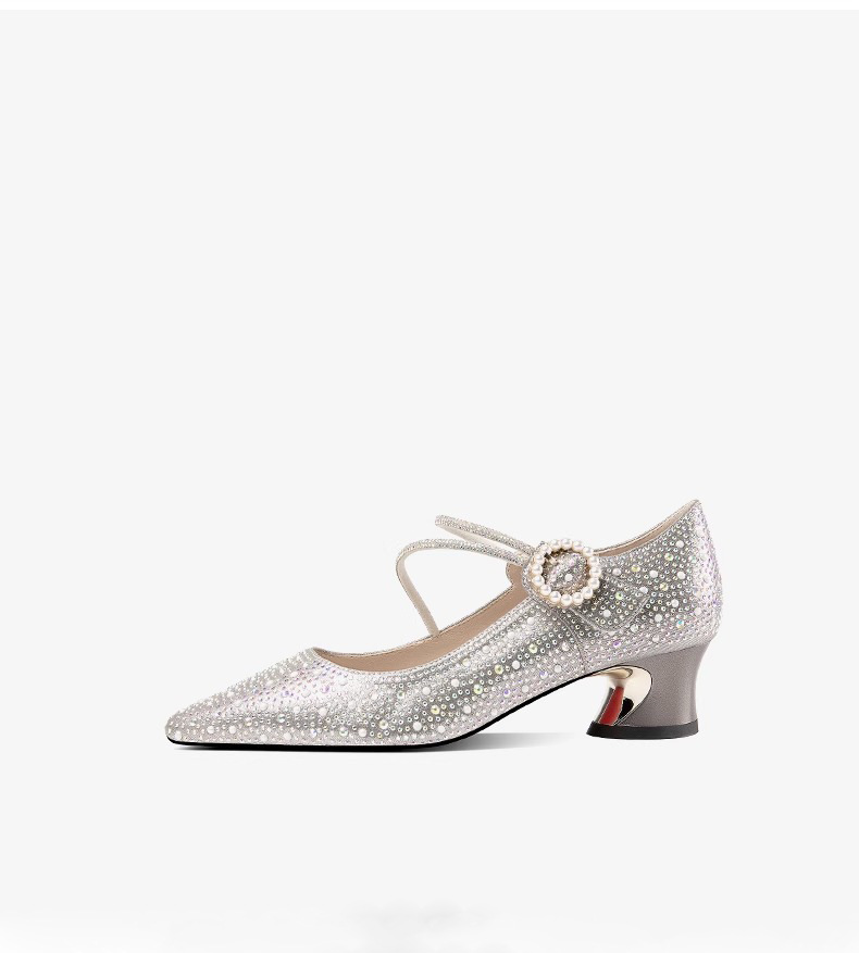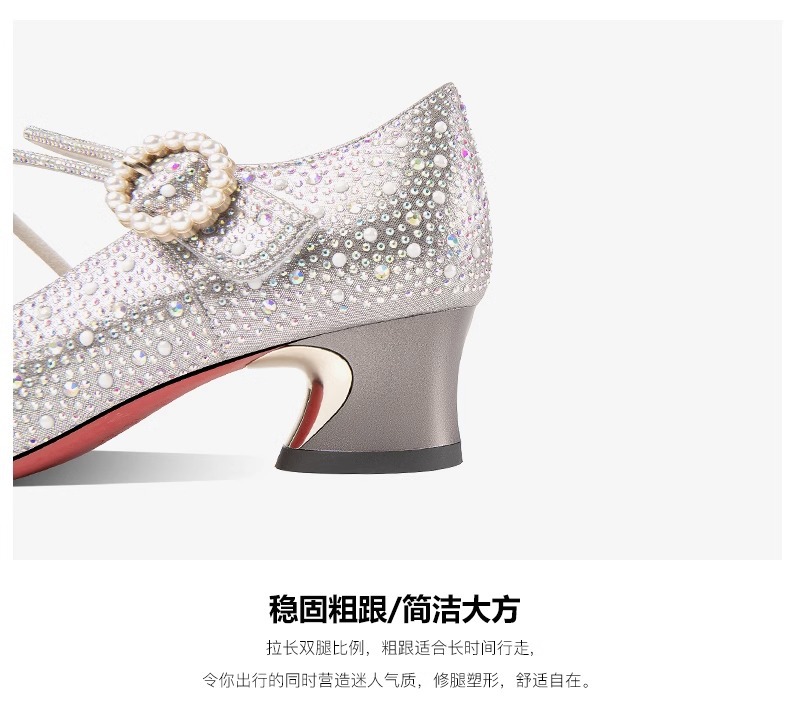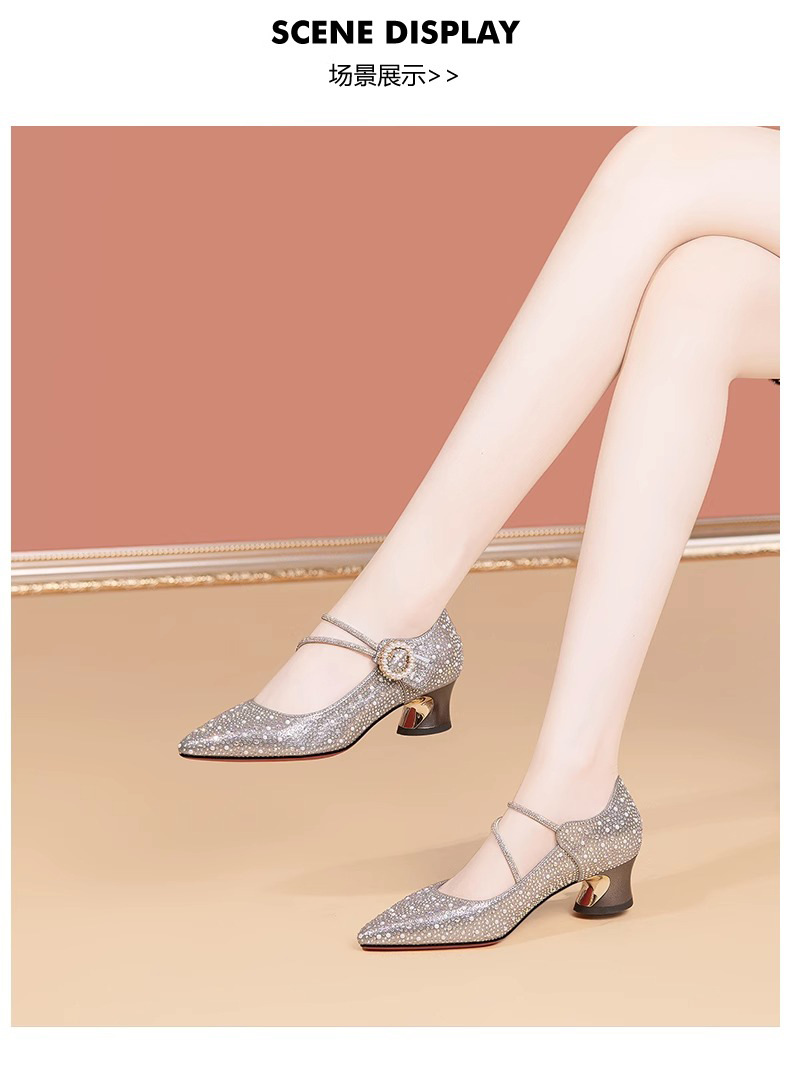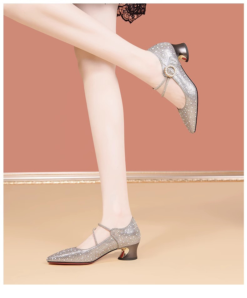 청키 힐 여성용 하이힐 신발 2023 봄과 가을 패션 미들 힐 웨딩 신발 얕은 입 여성 신발스토어 가기