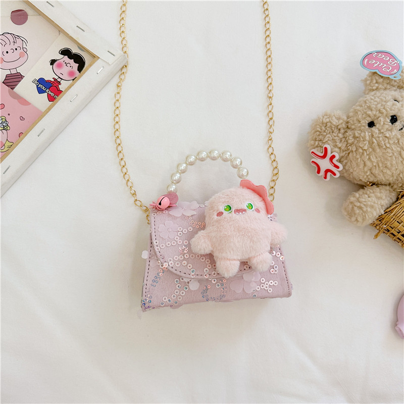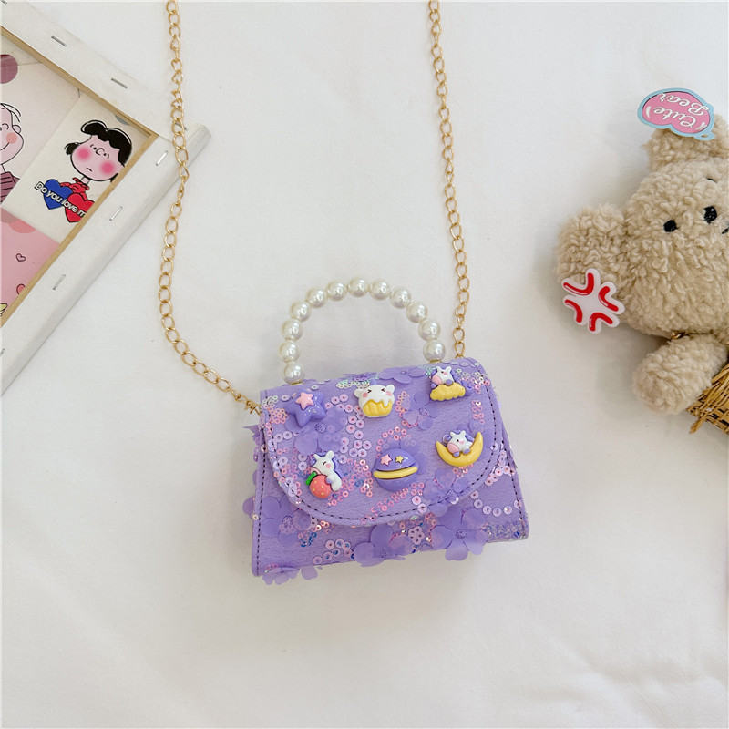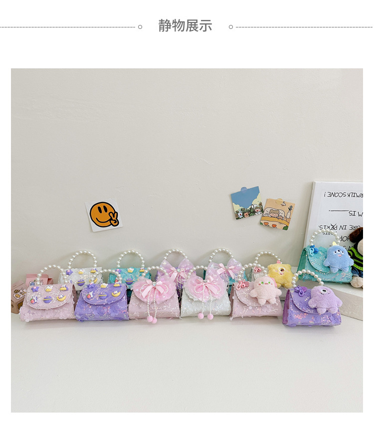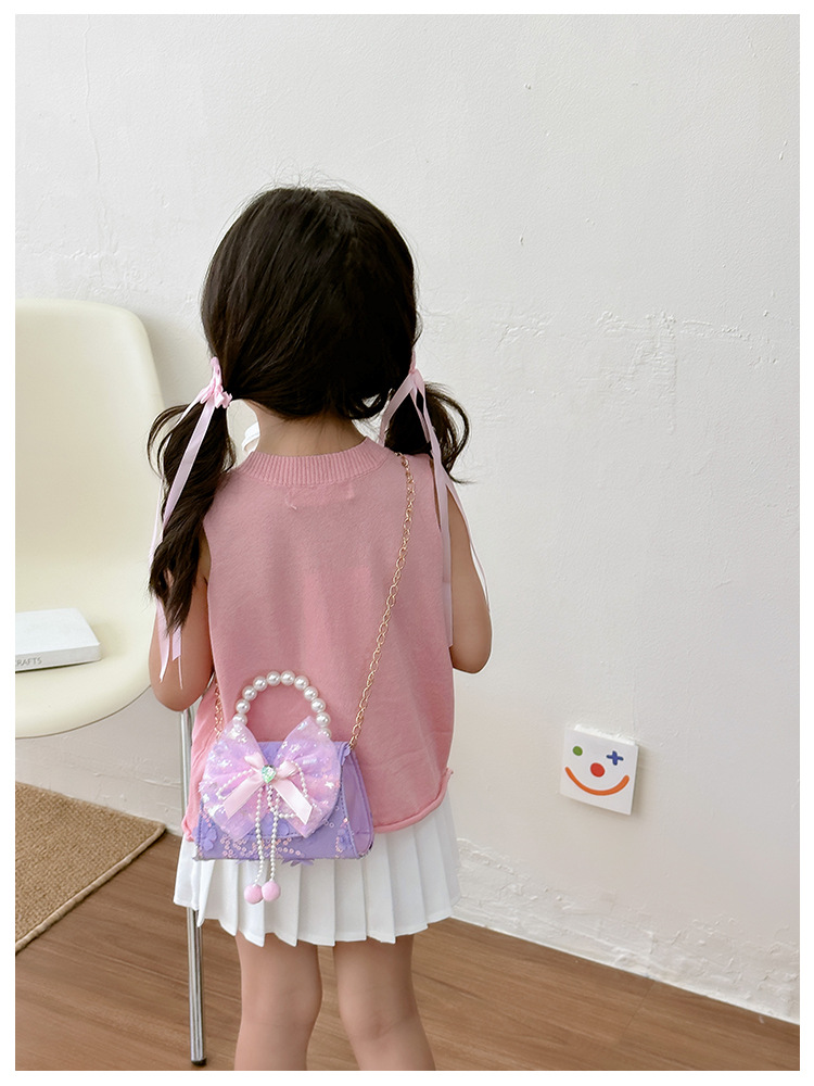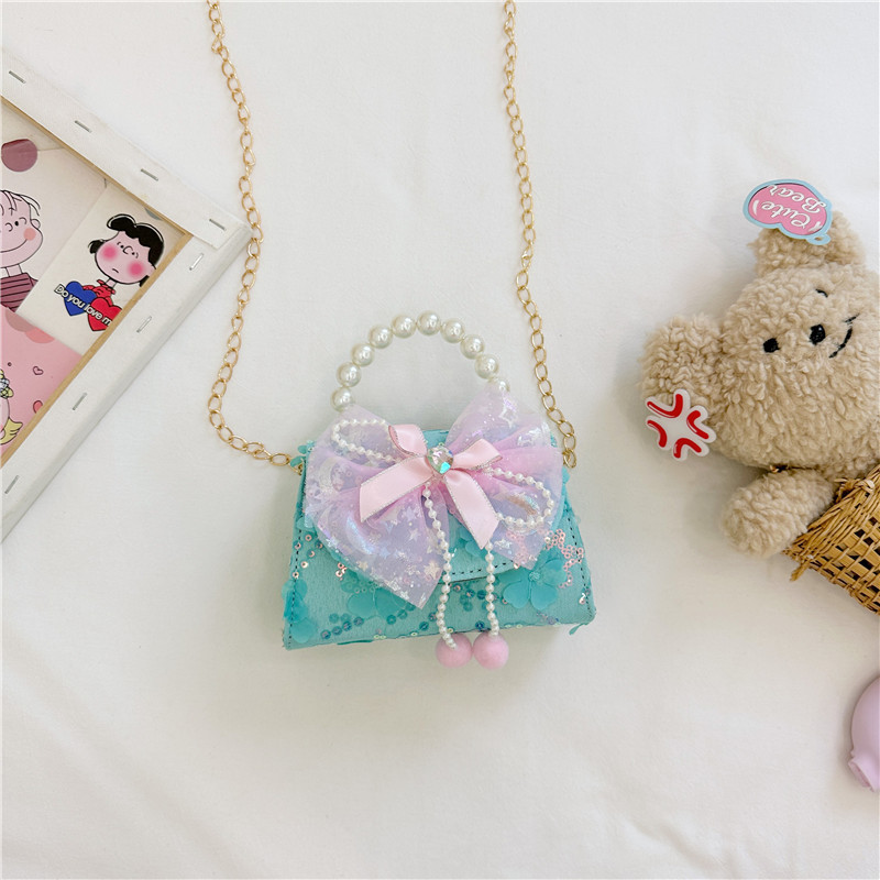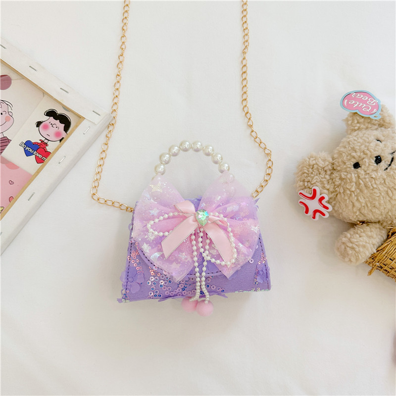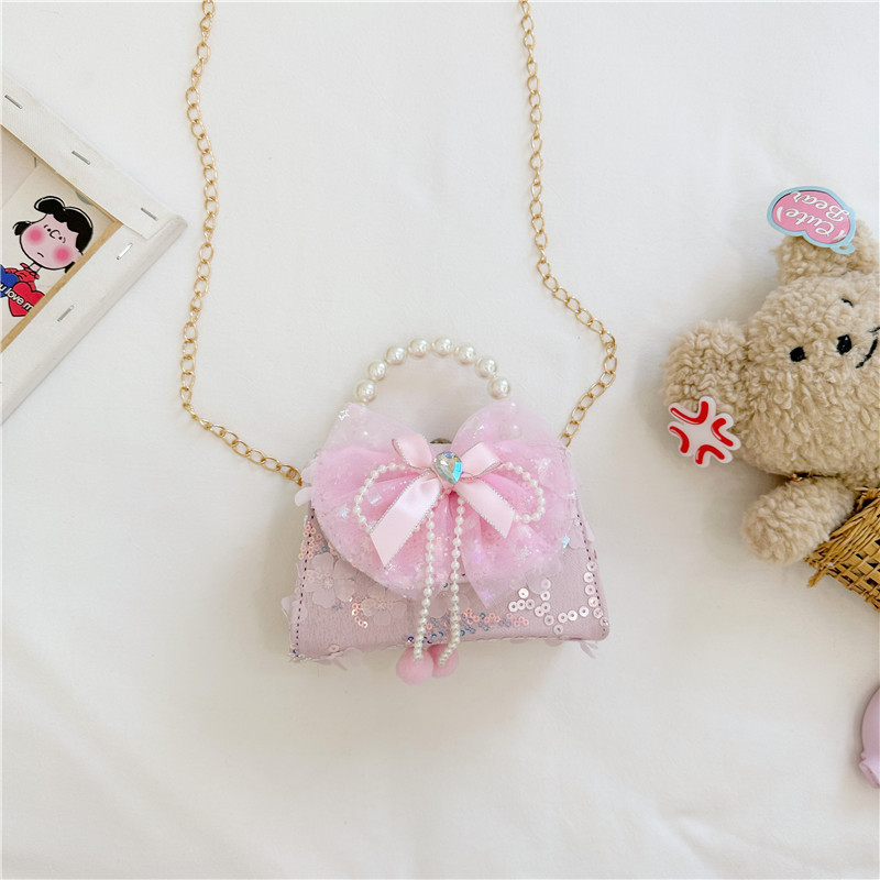 어린이 가방 샤넬 스타일 공주 진주 핸드백 동전 지갑 귀여운 인형 소녀의 활 어깨 크로스 바디 백
