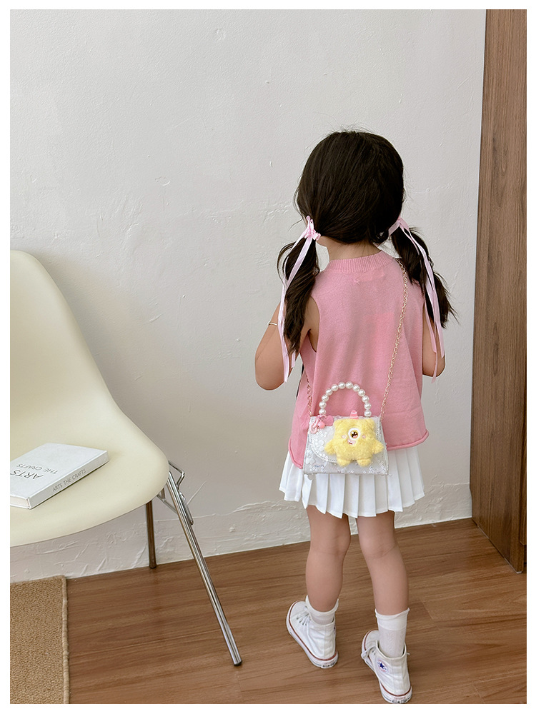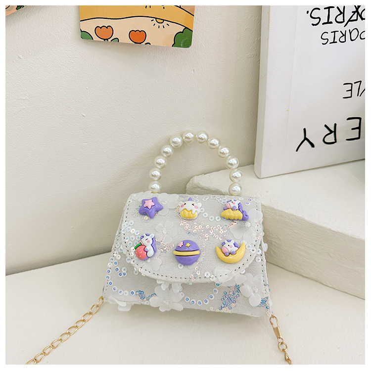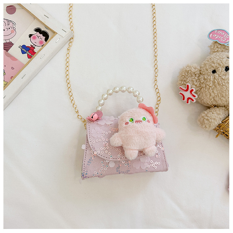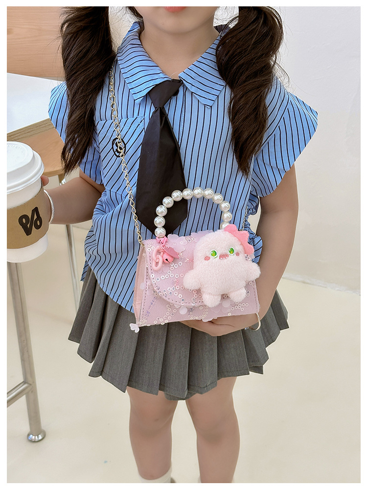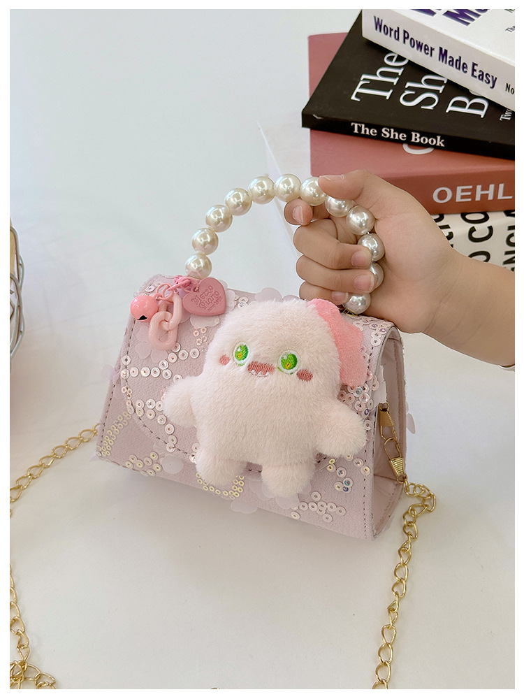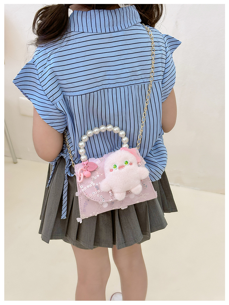 어린이 가방 샤넬 스타일 공주 진주 핸드백 동전 지갑 귀여운 인형 소녀의 활 어깨 크로스 바디 백