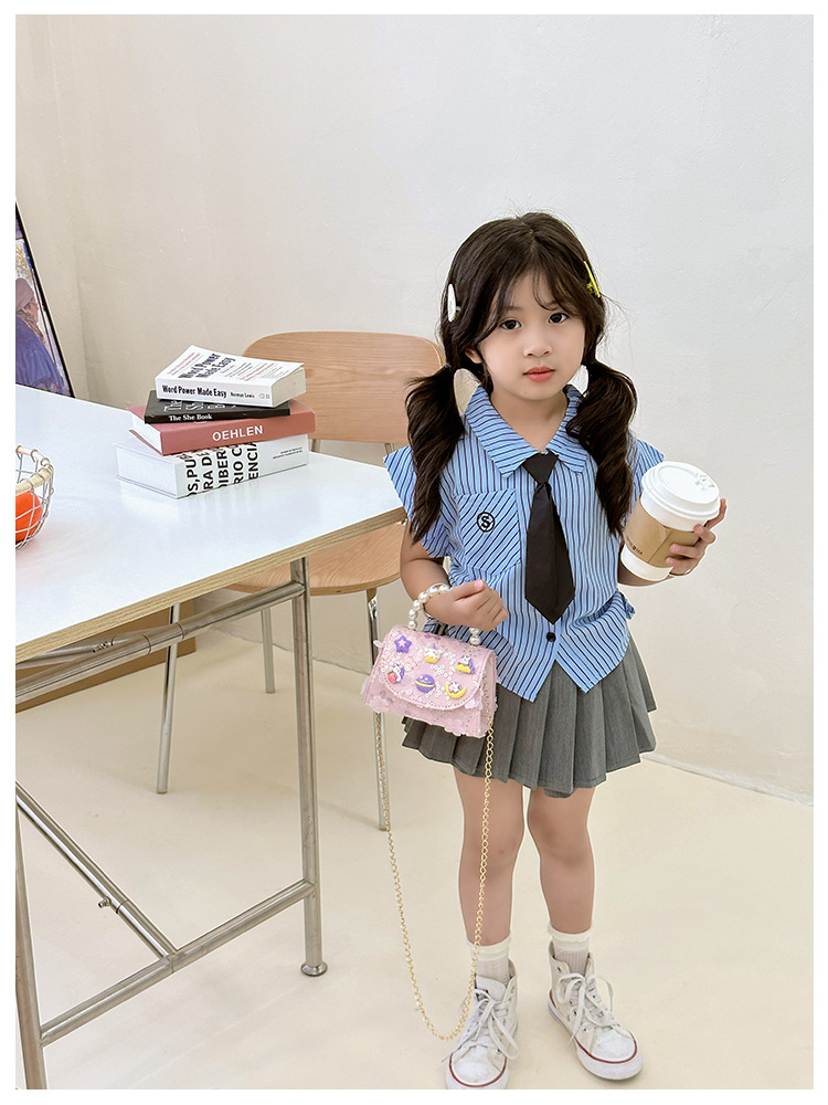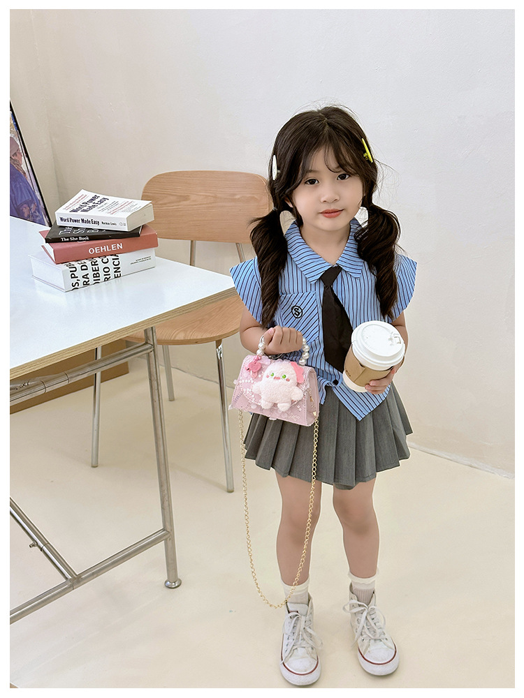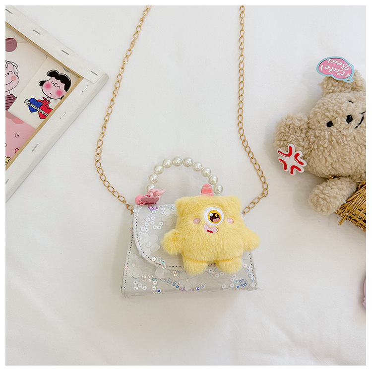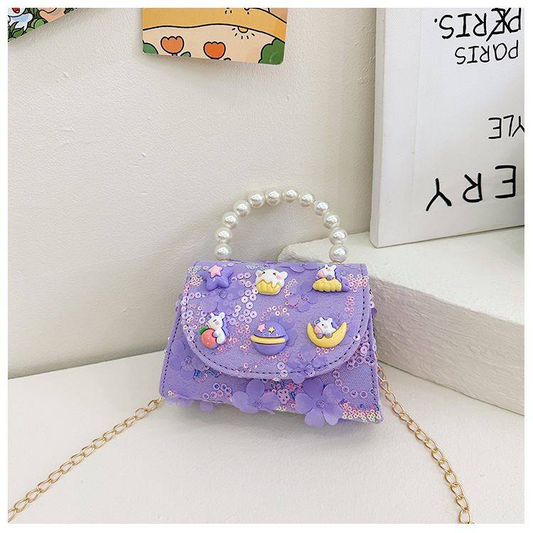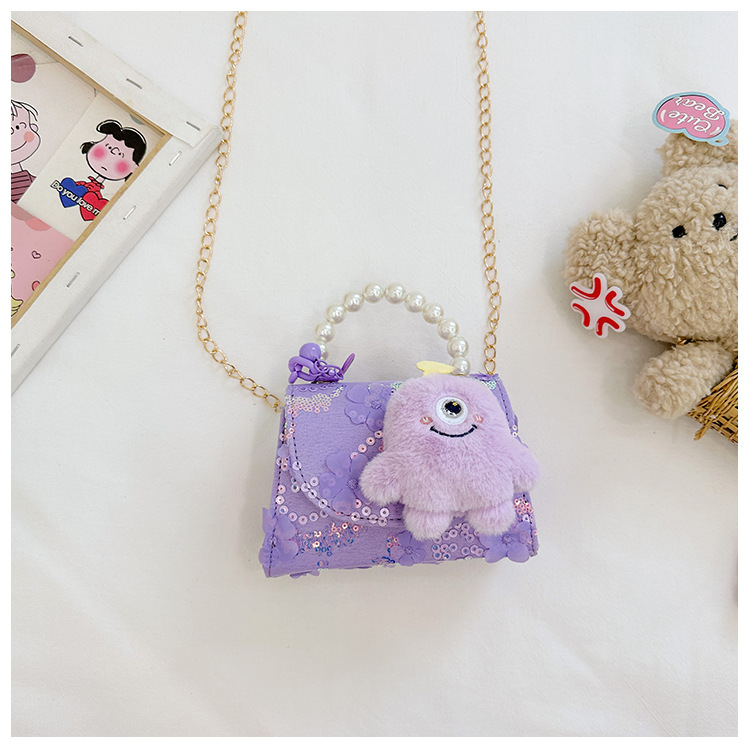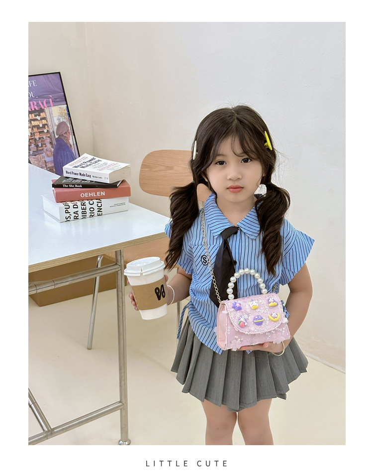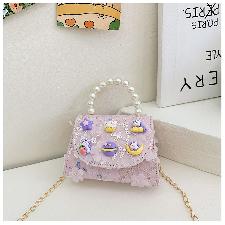 어린이 가방 샤넬 스타일 공주 진주 핸드백 동전 지갑 귀여운 인형 소녀의 활 어깨 크로스 바디 백