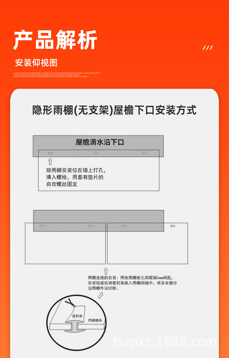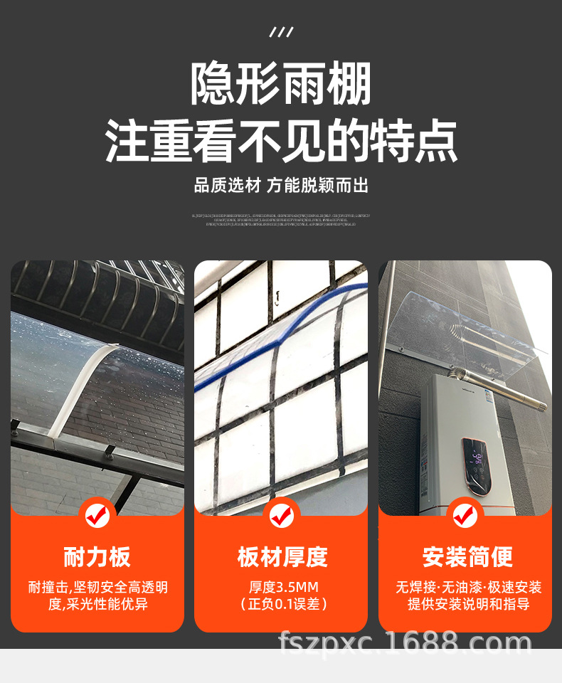 투명 차양, 보이지 않는 브래킷 없는 차양, 두꺼운 처마, 발코니 차양, 충전기 차양, 국경 간 라벨링 및 배송