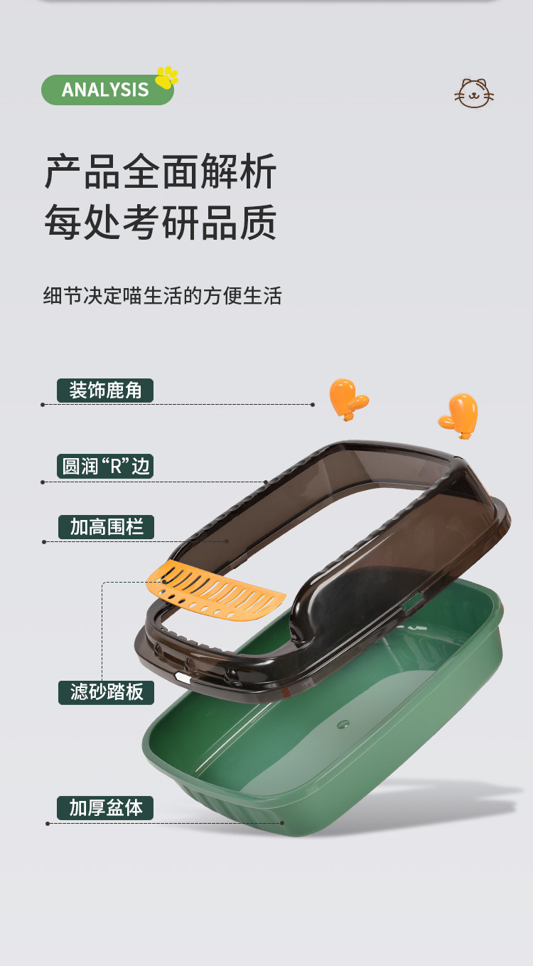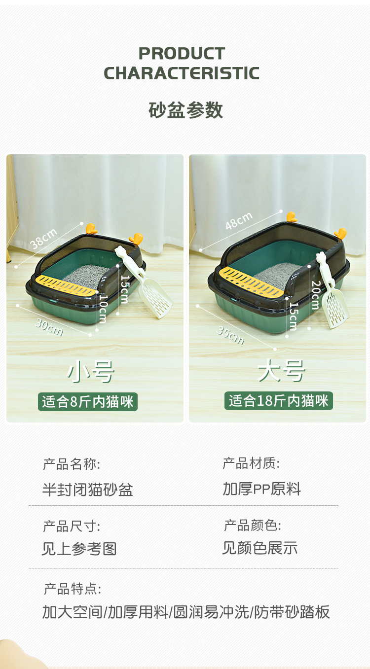 하이라이트 울타리 고양이 쓰레기 상자 이동식 고양이 용품 고양이 쓰레기 상자 반 폐쇄 새끼 고양이 용품 재고 도매