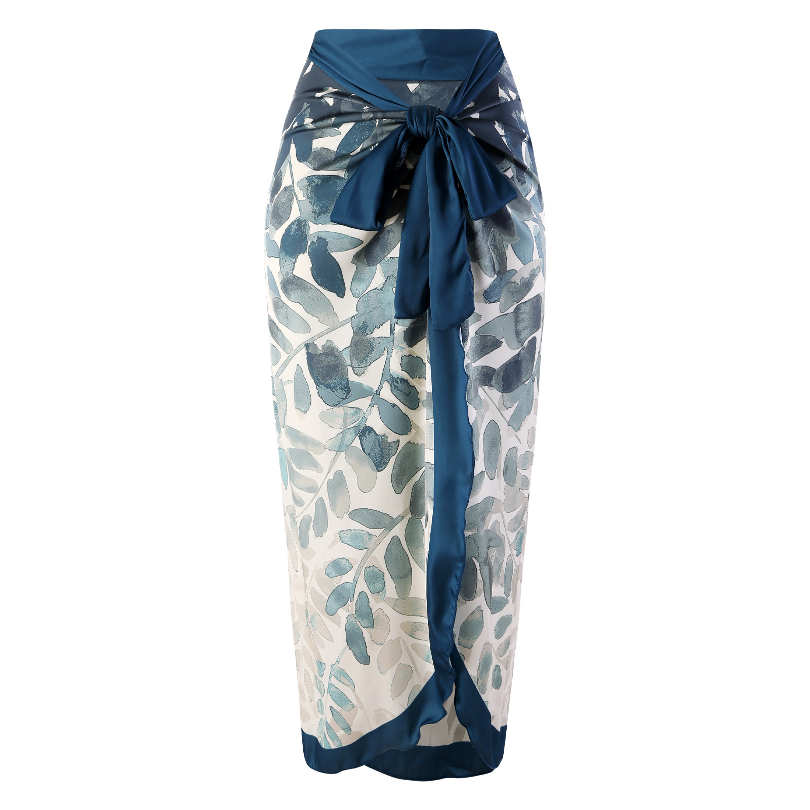 2023 유럽 및 미국 해외 신상품 피부색 잎사귀 프린트 원피스 수영복 비치 온천 거즈 스커트 투피스 세트
