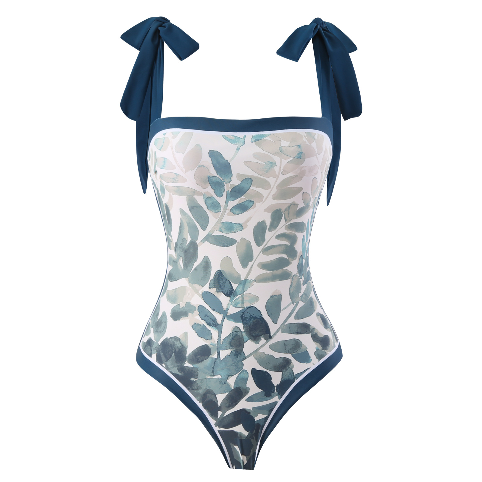 2023 유럽 및 미국 해외 신상품 피부색 잎사귀 프린트 원피스 수영복 비치 온천 거즈 스커트 투피스 세트스토어 가기