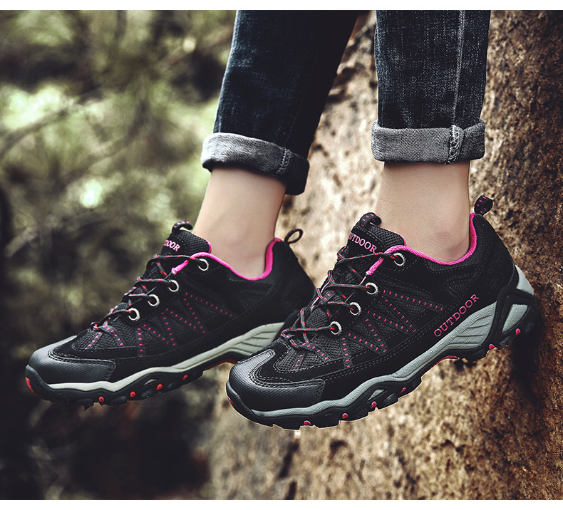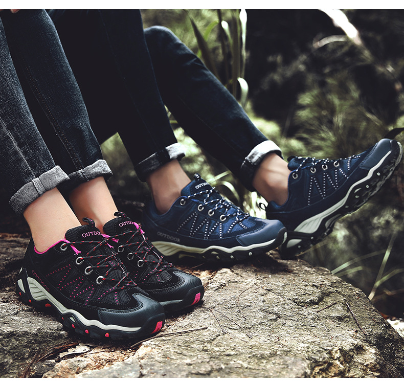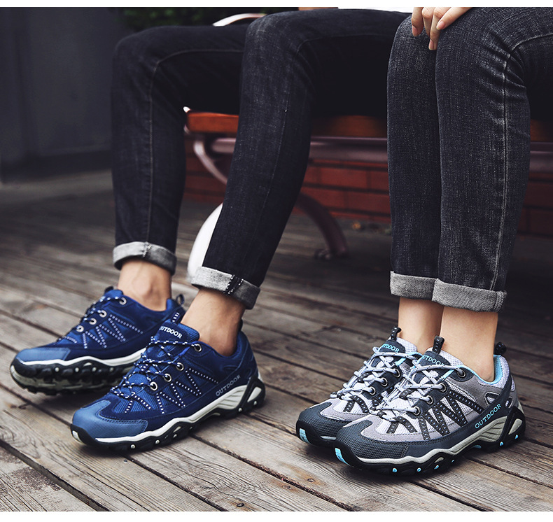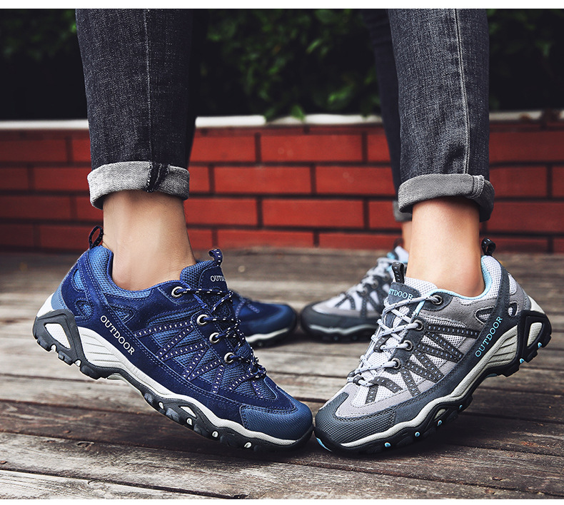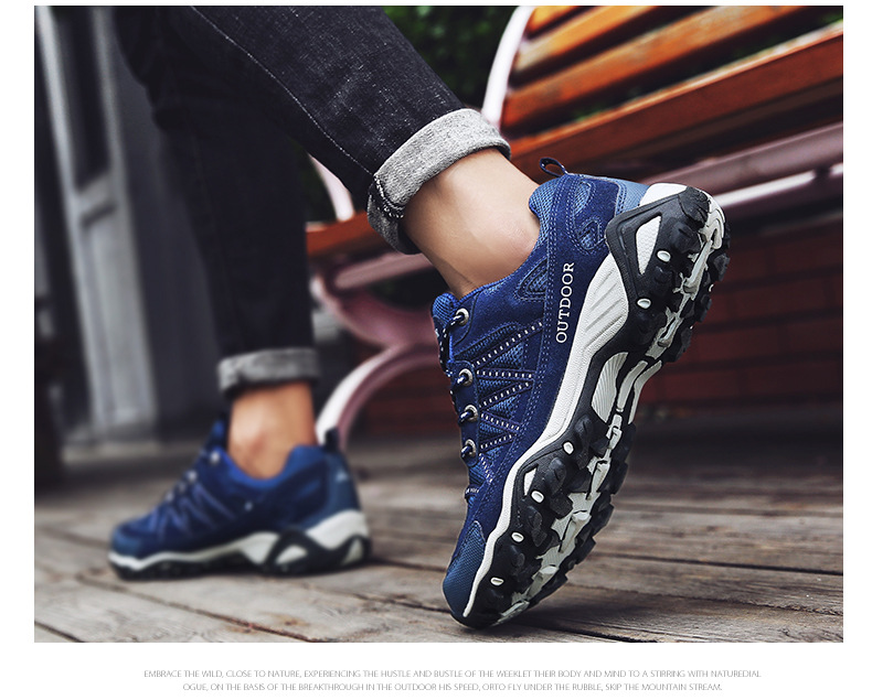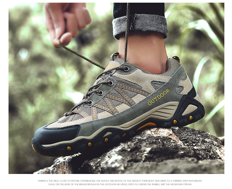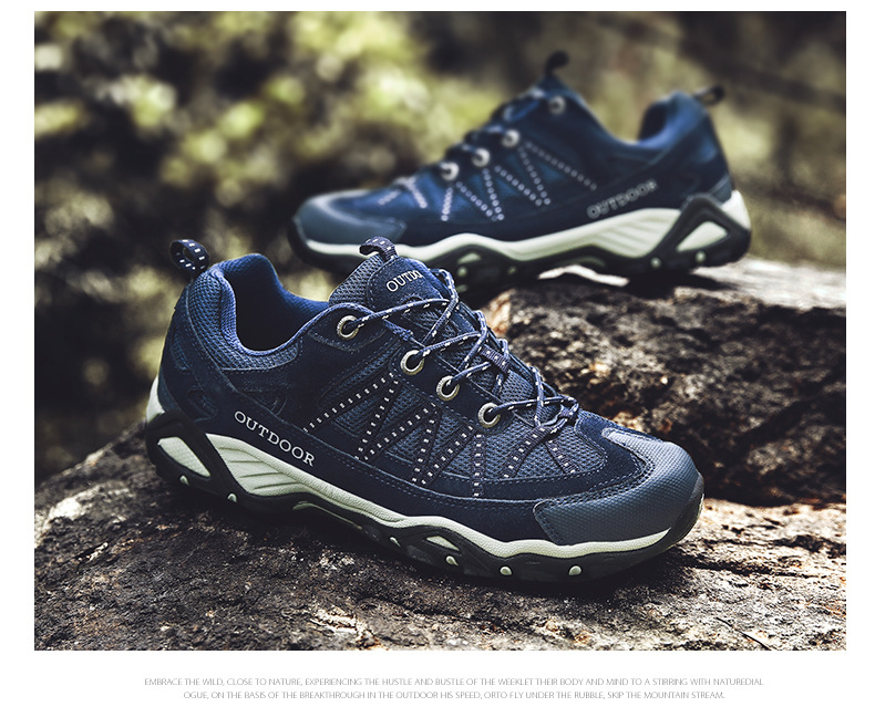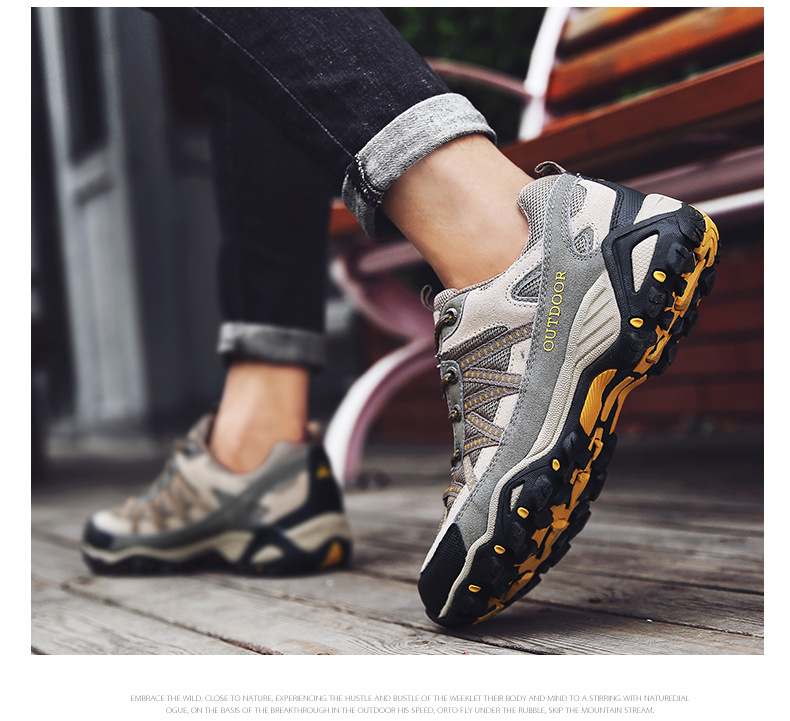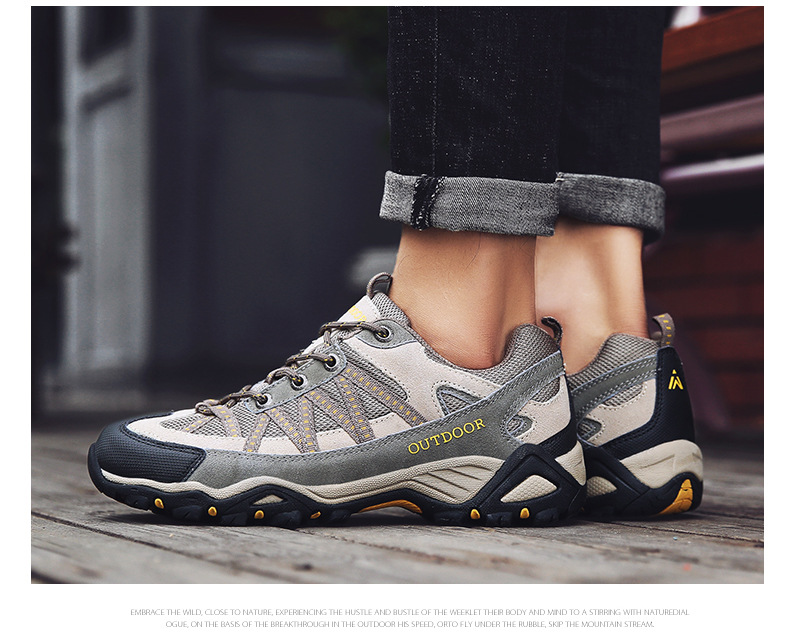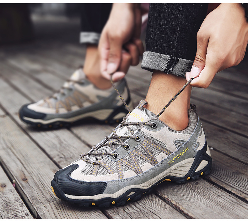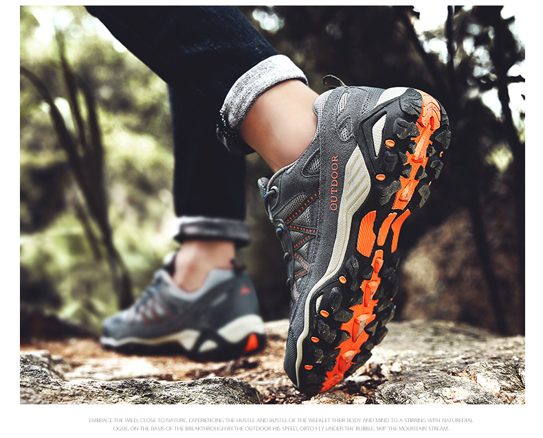 국경 간 가을과 겨울 가죽 야외 신발 남성 메쉬 통기성 미끄럼 방지 커플 하이킹 신발 로우 탑 하이킹 신발 도매스토어 가기