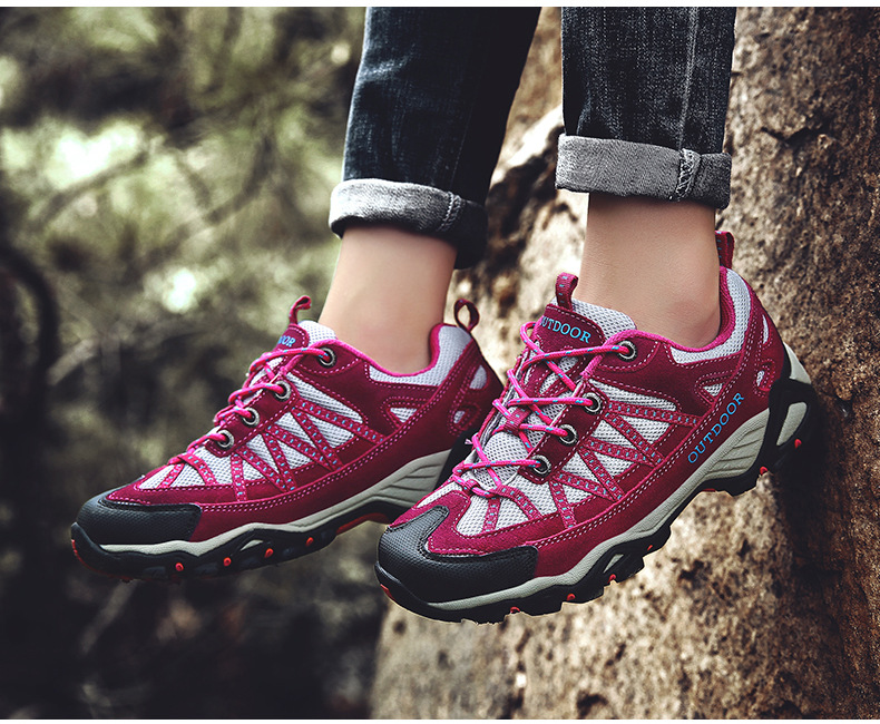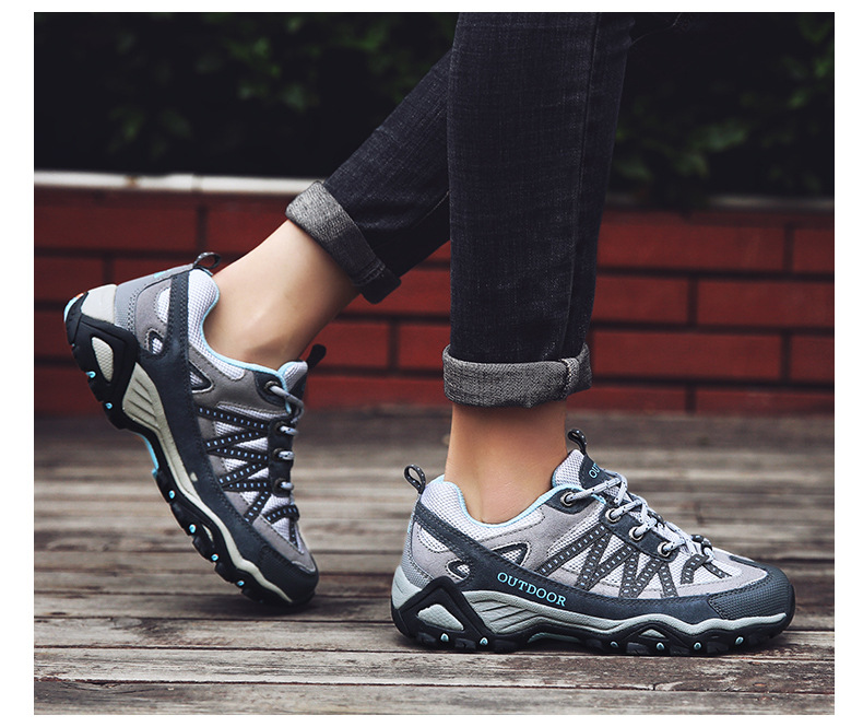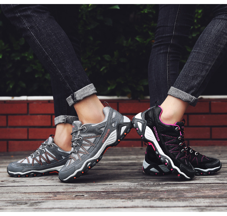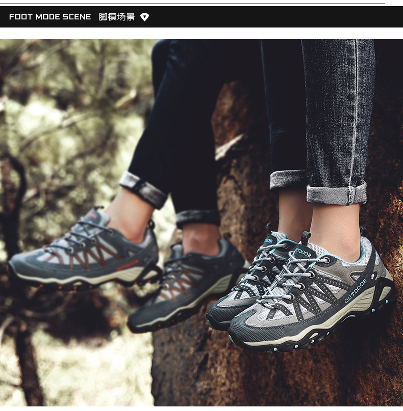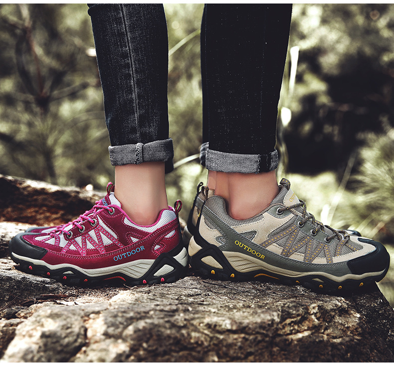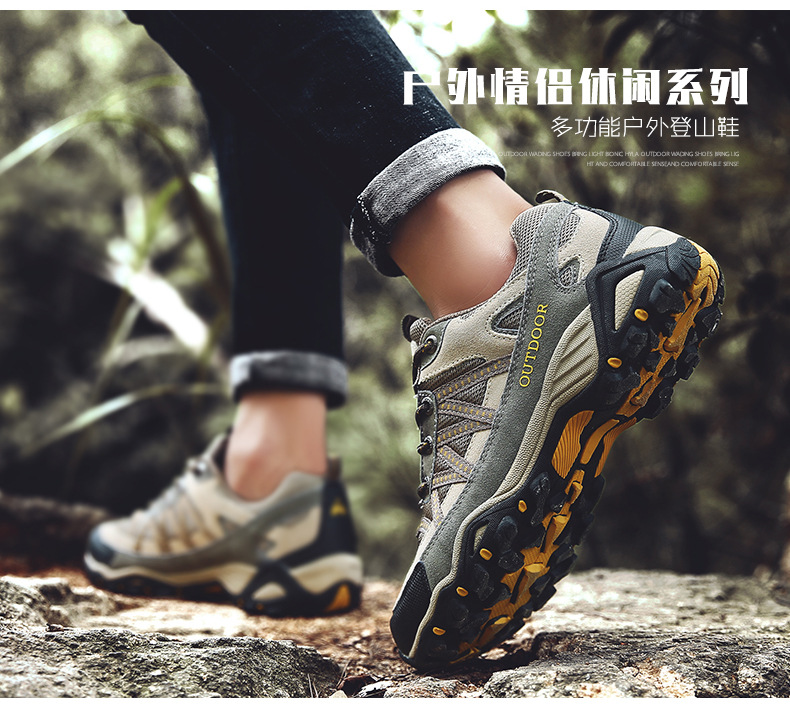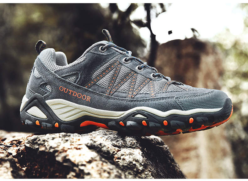 국경 간 가을과 겨울 가죽 야외 신발 남성 메쉬 통기성 미끄럼 방지 커플 하이킹 신발 로우 탑 하이킹 신발 도매