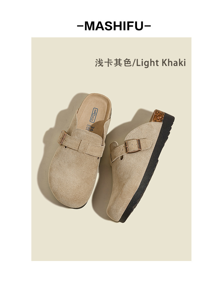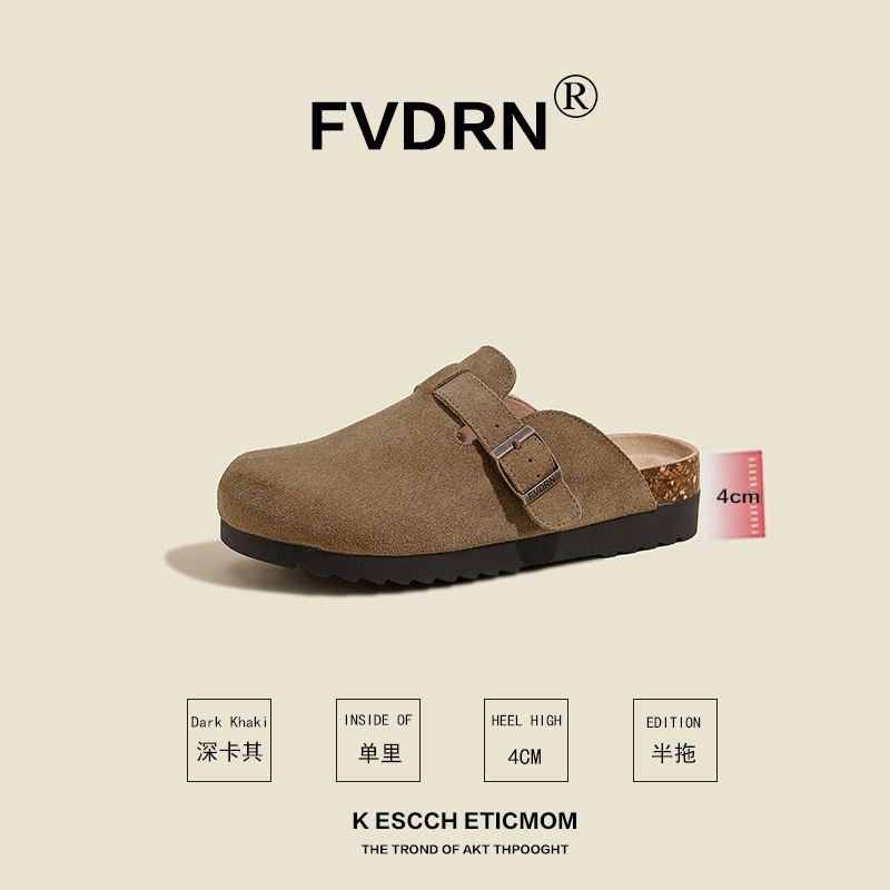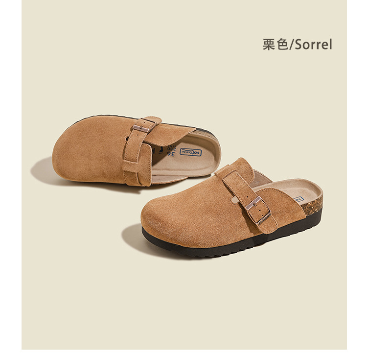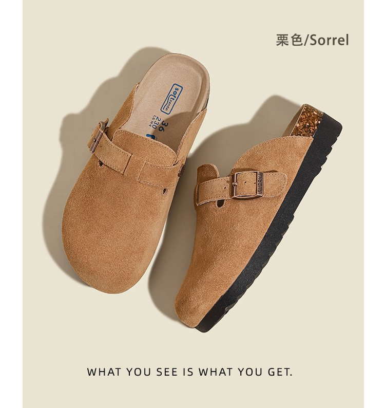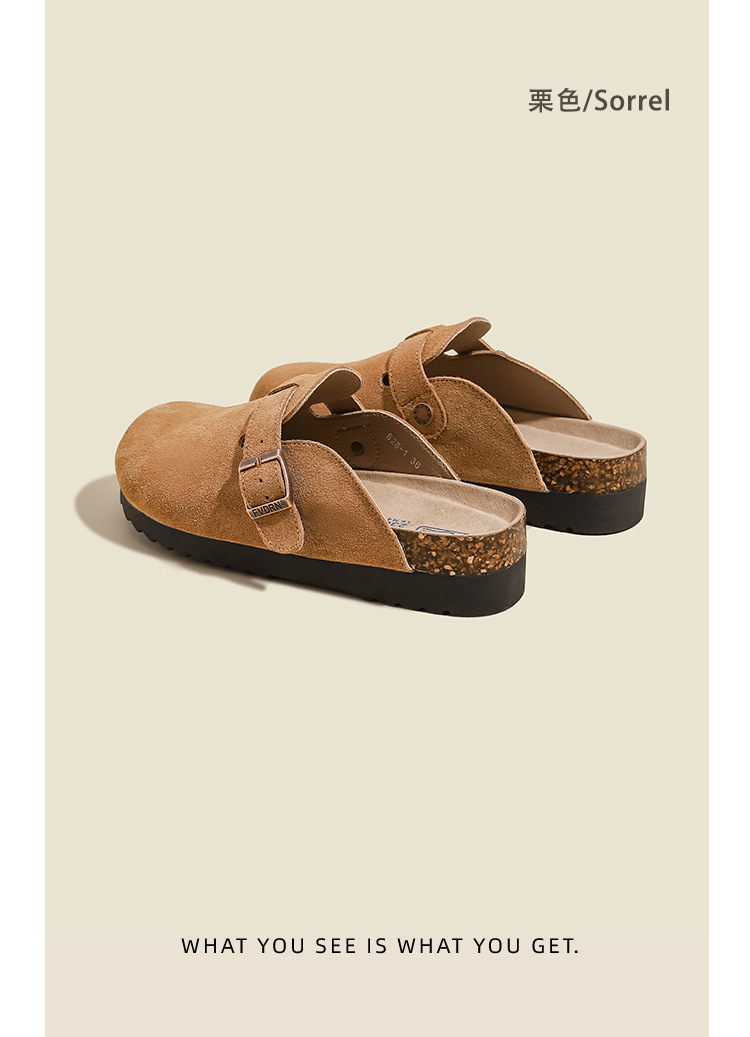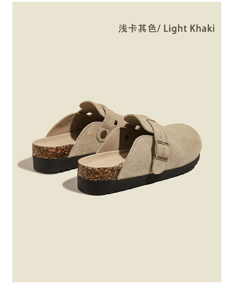 4CM 업그레이드 버전 리얼 코르크 밑창 두꺼운 밑창 전체 소가죽 레트로 버켄스탁 신발 여성용 플랫 토우 반 슬리퍼