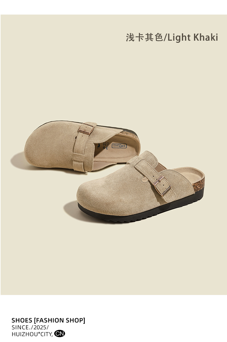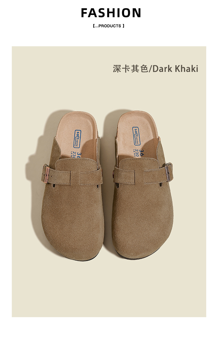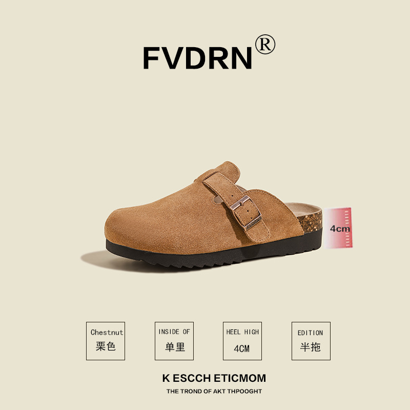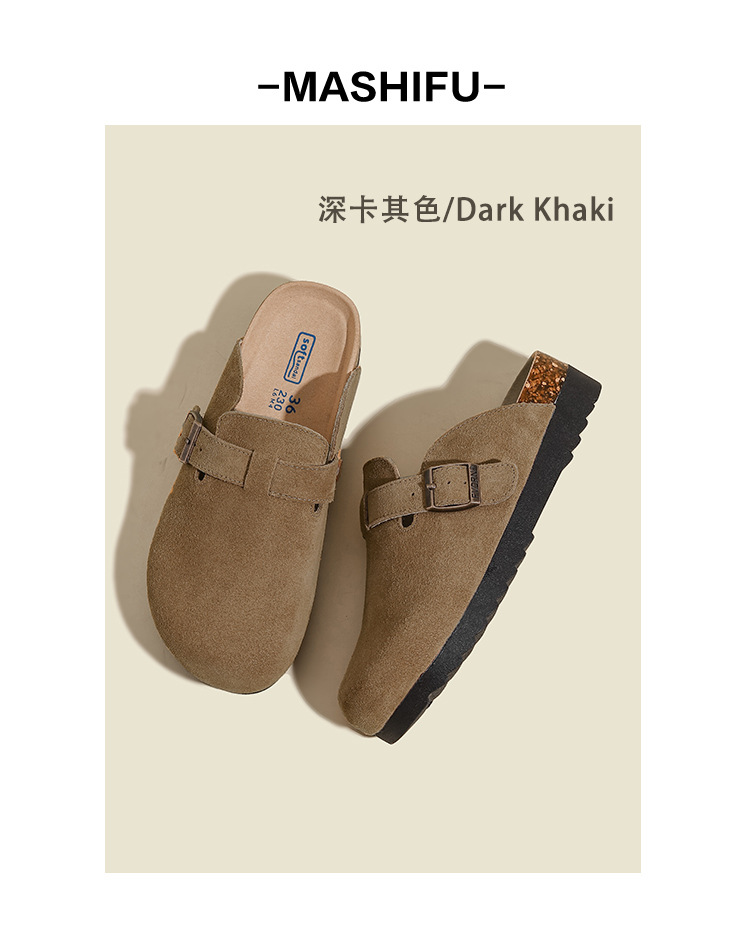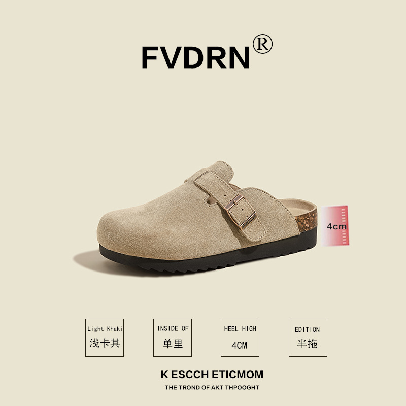 4CM 업그레이드 버전 리얼 코르크 밑창 두꺼운 밑창 전체 소가죽 레트로 버켄스탁 신발 여성용 플랫 토우 반 슬리퍼