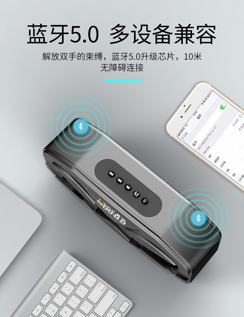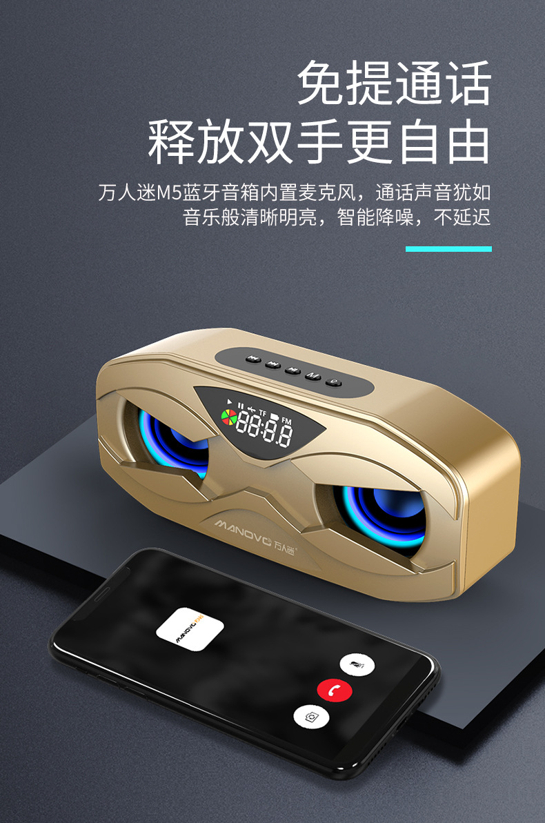 소스 제조 업체 heartthrob M5 더블 혼 다채로운 조명 무선 블루투스 스피커 서브 우퍼 라디오 소형 스테레오스토어 가기
