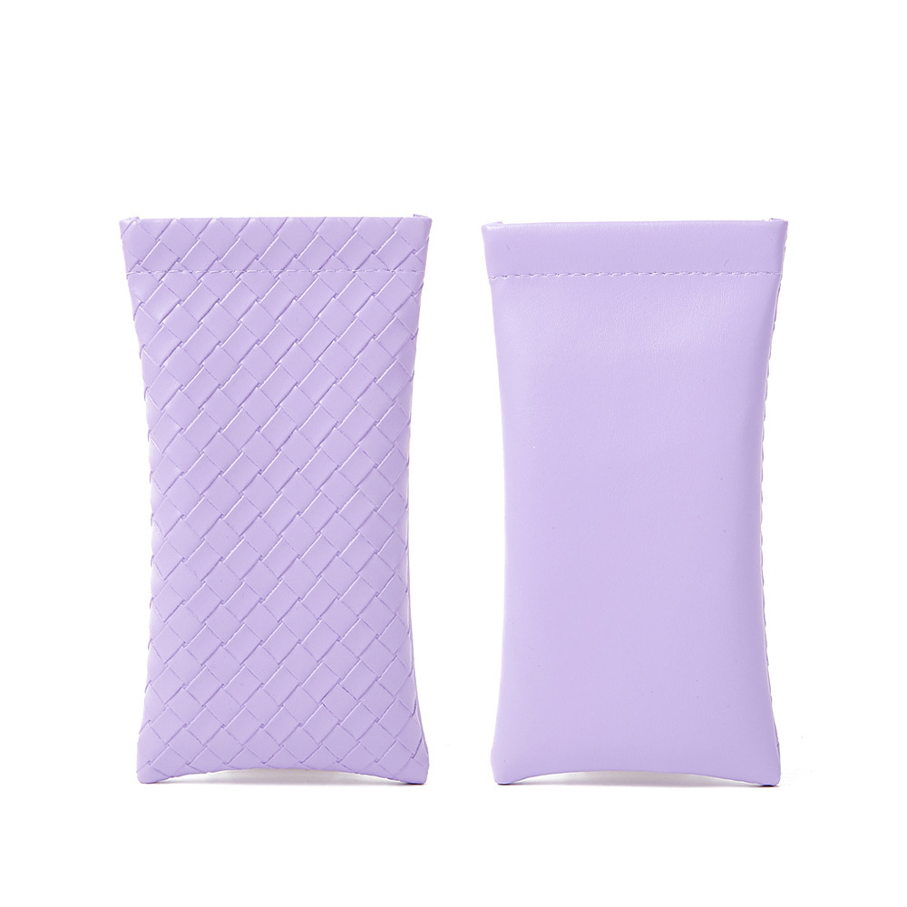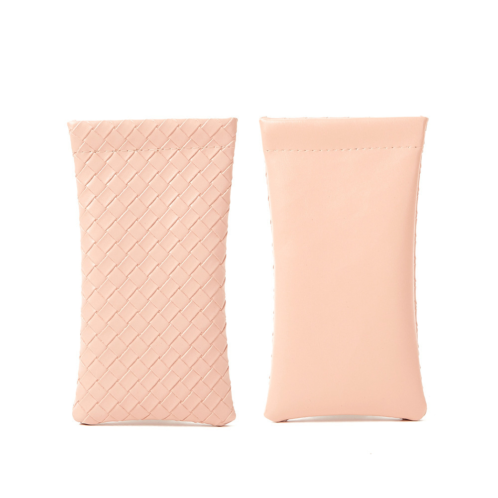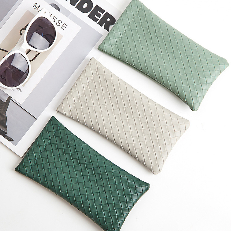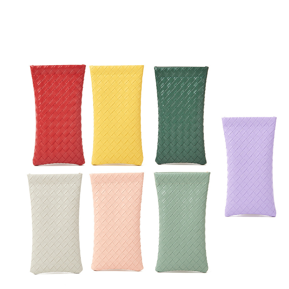 자동 폐쇄 파편 간단한 안경 가방 단색 짠 패턴 PU 가죽 안경 보관 가방 근시 선글라스 가방