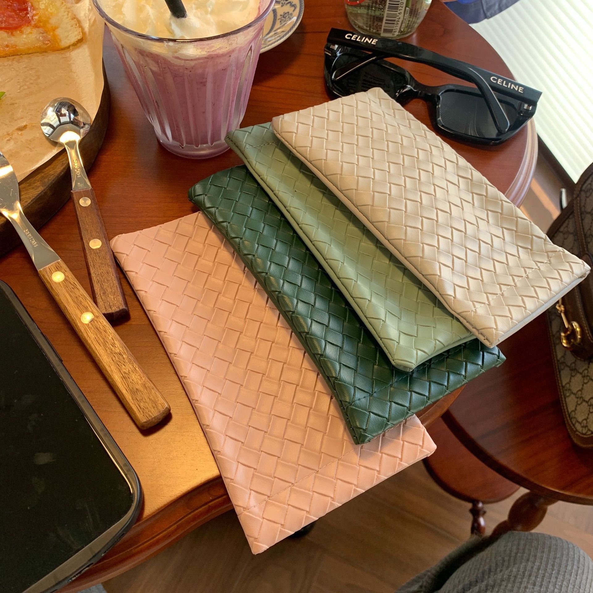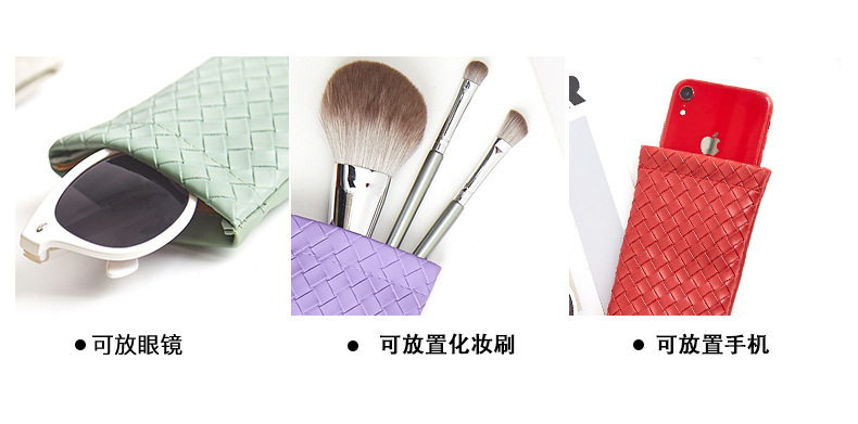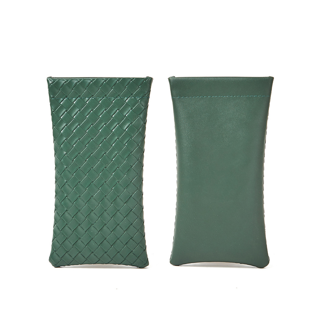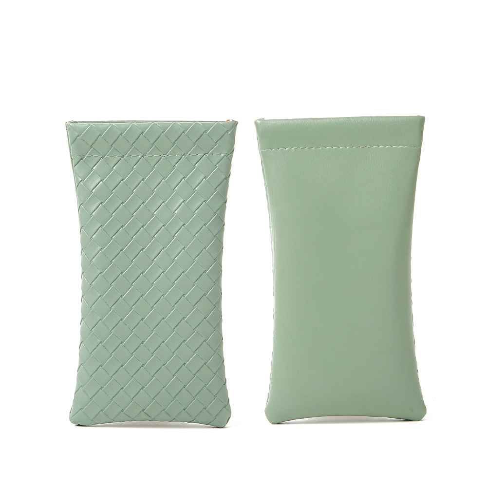 자동 폐쇄 파편 간단한 안경 가방 단색 짠 패턴 PU 가죽 안경 보관 가방 근시 선글라스 가방
