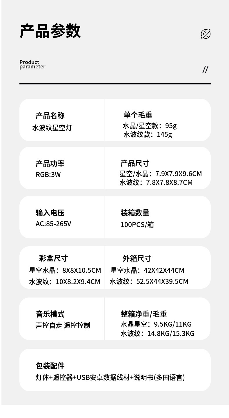 크로스보더 크리에이티브 별빛 프로젝션 램프 물결무늬 북극광 USB 침대 옆 분위기 조명 침실 LED 발광 야간등