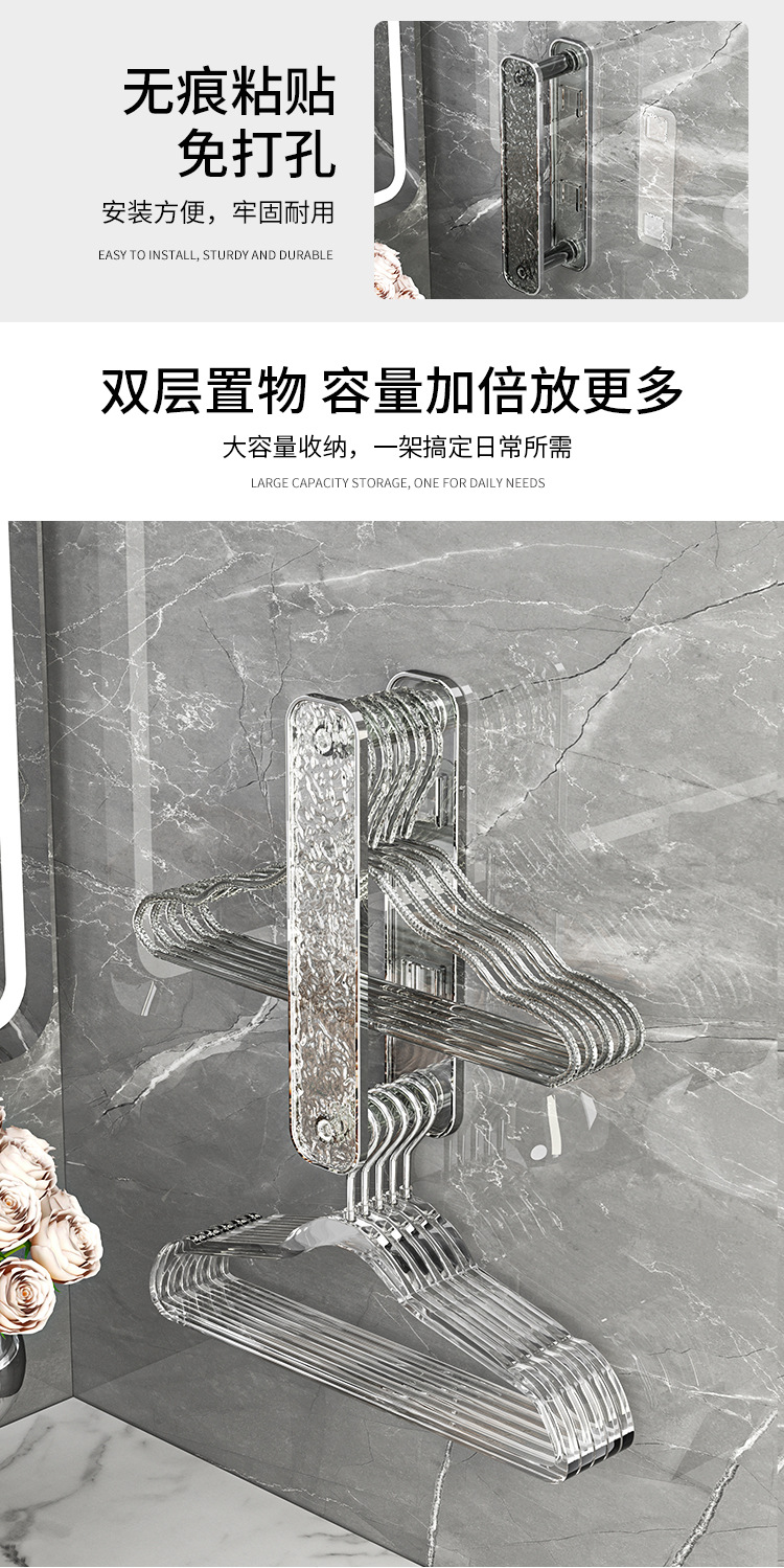 빙하 패턴 옷걸이 보관 랙 가정용 수납 후크 옷을위한 비 펀치 다기능 발코니 맞춤 랙