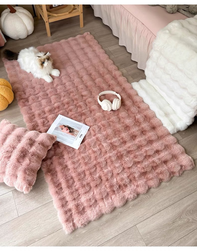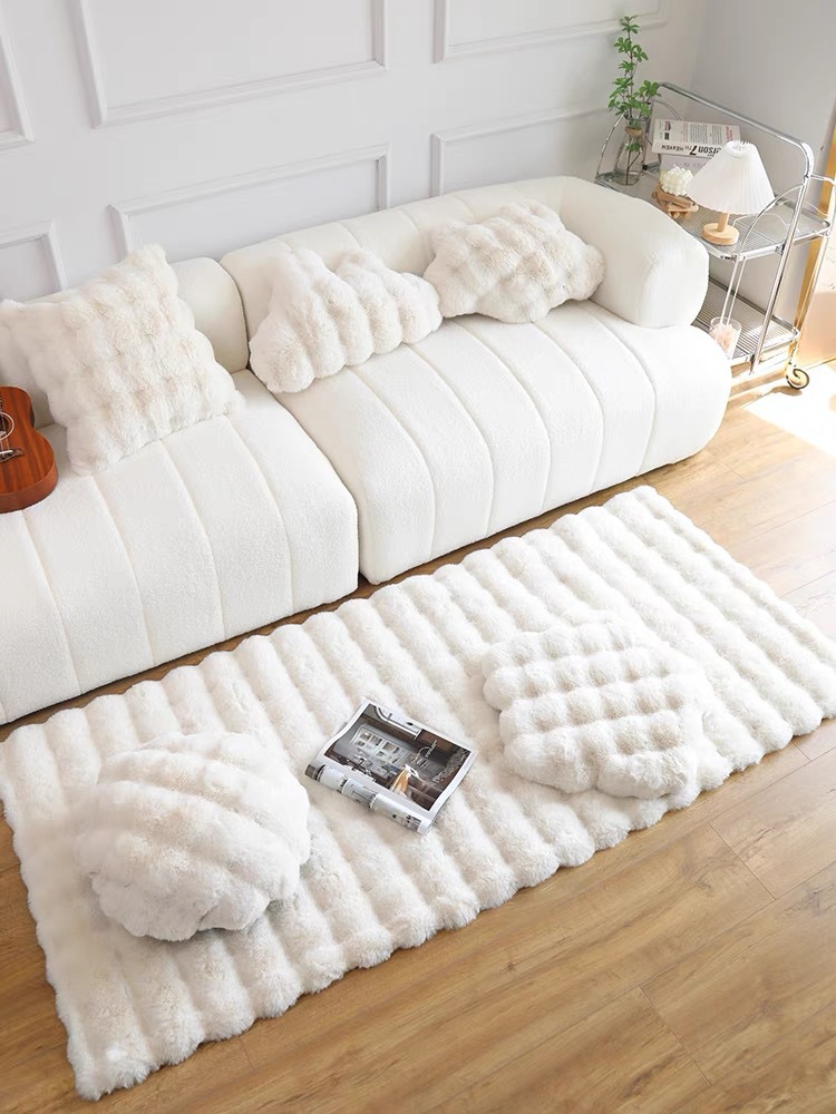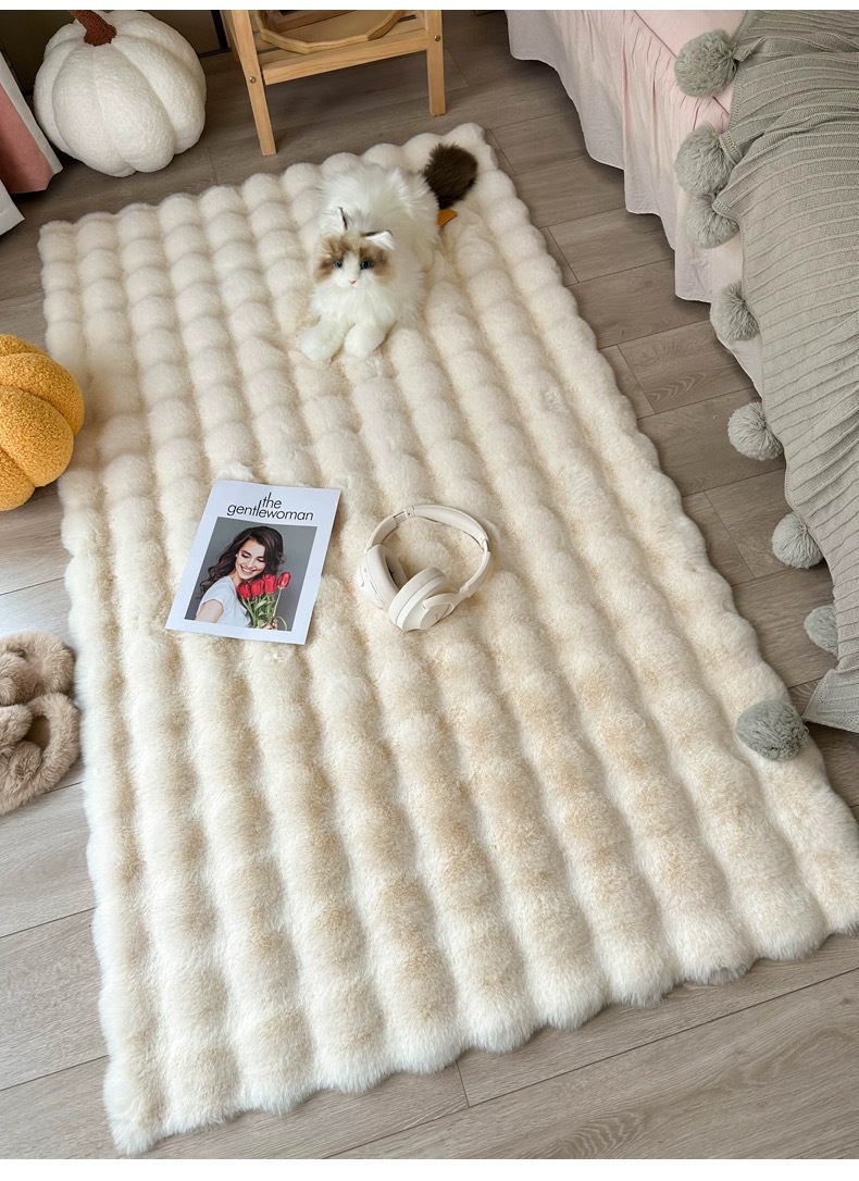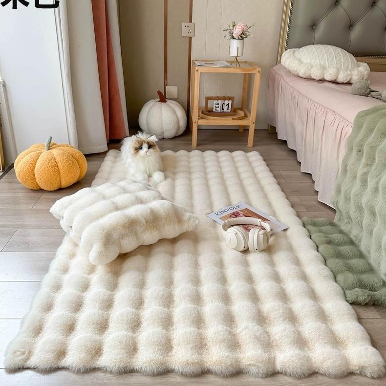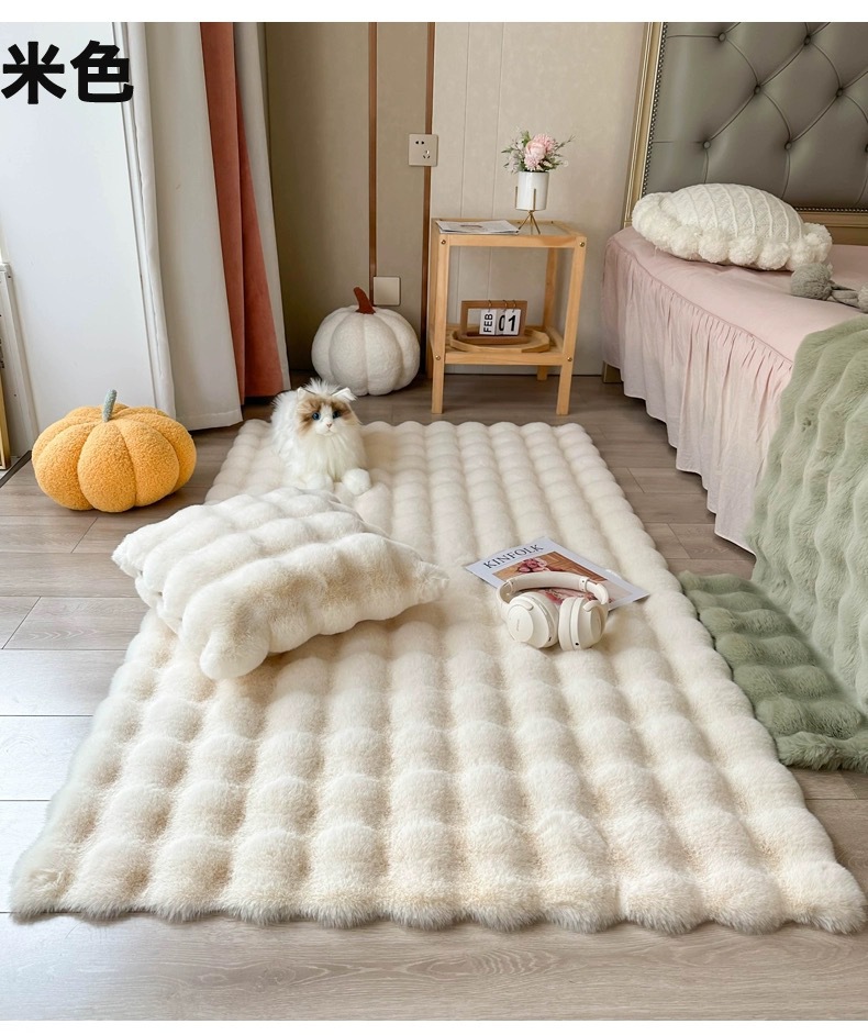 새로운 모조 토끼 벨벳 버블 벨벳 크림 스타일 거실 침실 침대 옆 소파 인공 모피 카펫 바닥 매트
