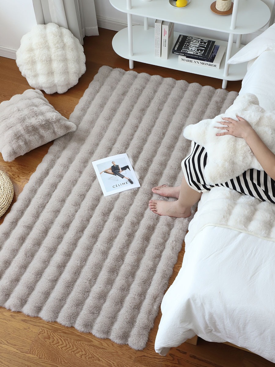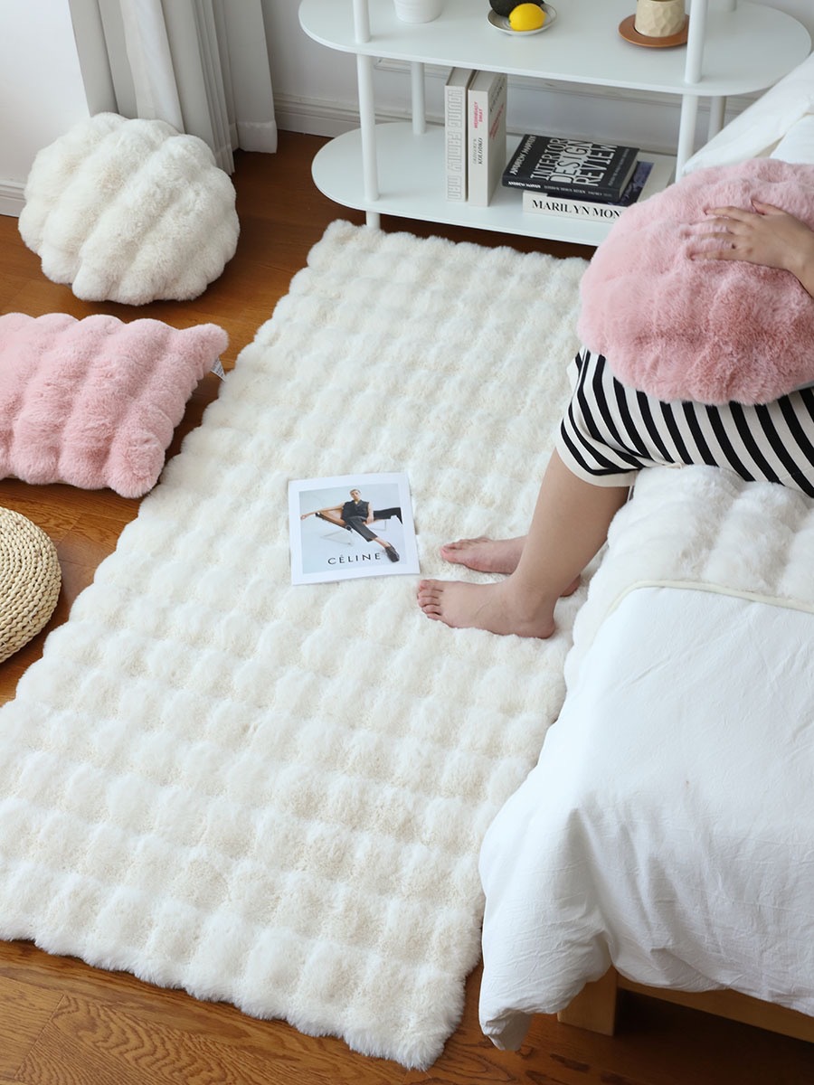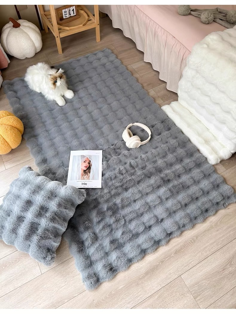 새로운 모조 토끼 벨벳 버블 벨벳 크림 스타일 거실 침실 침대 옆 소파 인공 모피 카펫 바닥 매트