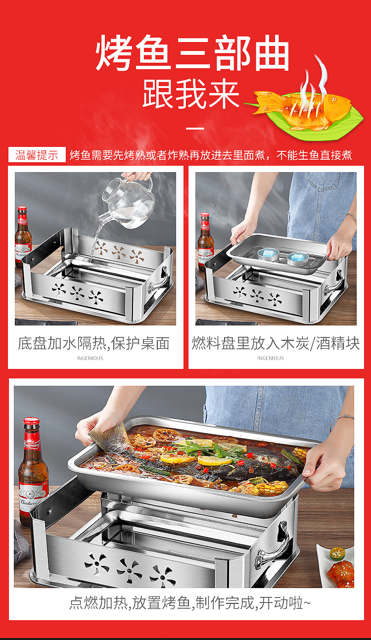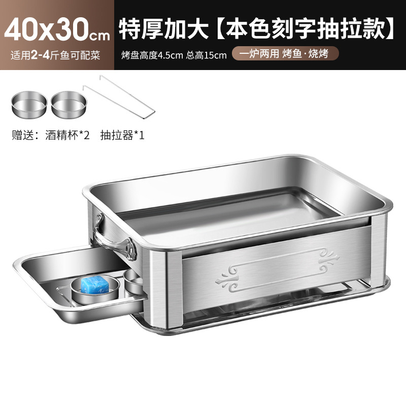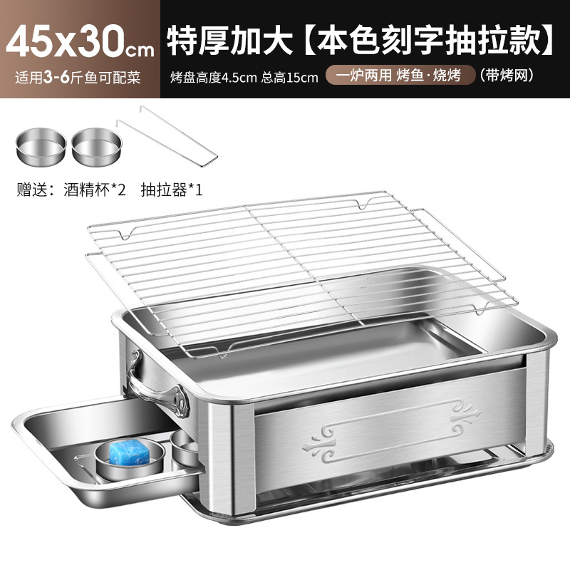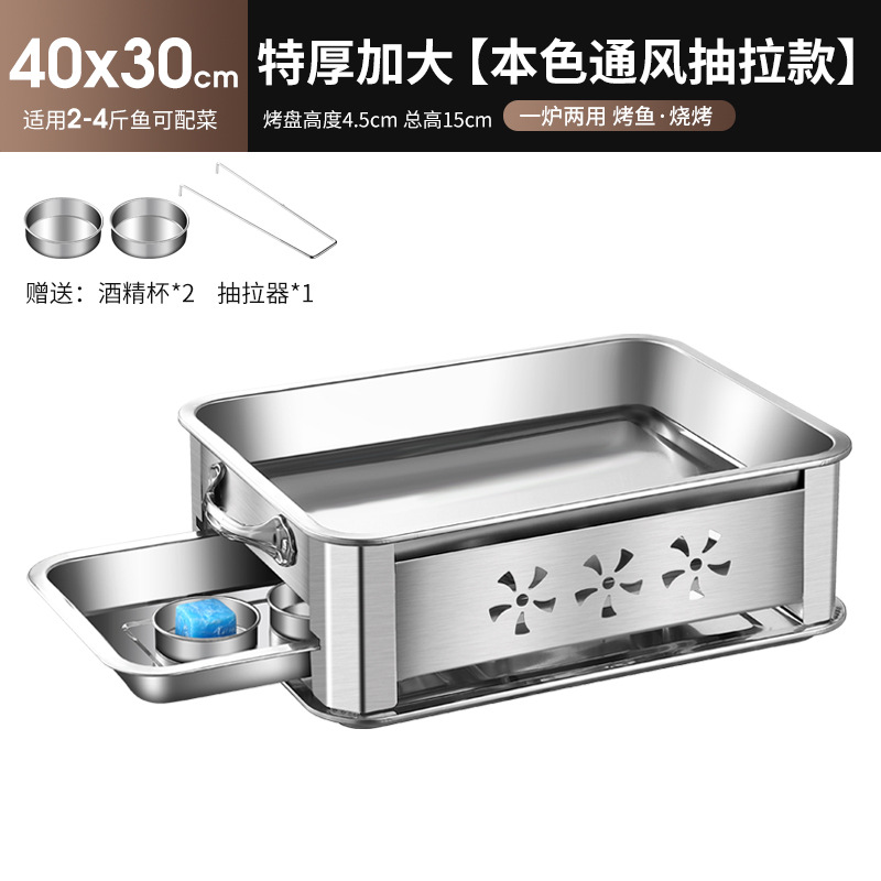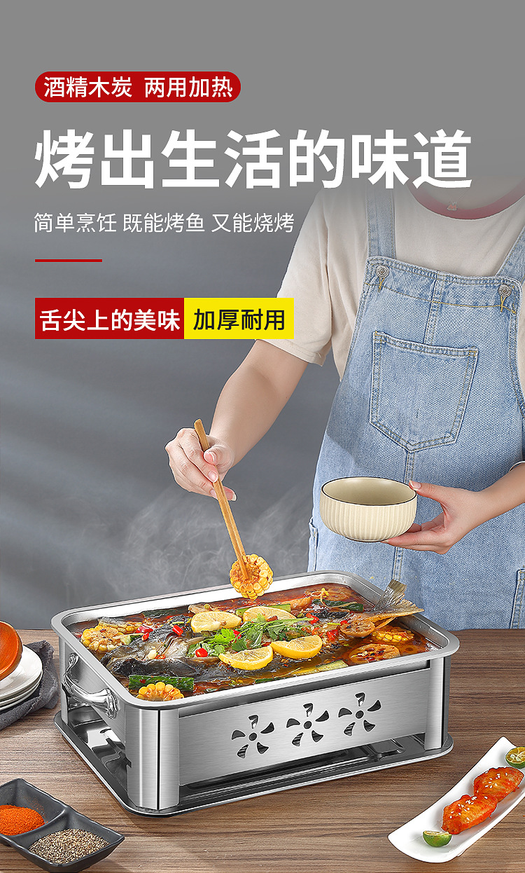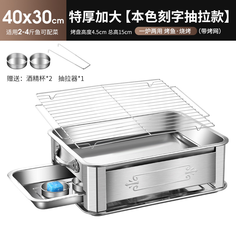 레스토랑 알코올 생선 트레이 스테인레스 스틸 숯 생선 그릴 상업용 긴 그릴 두꺼운 그릴 소스 제조 업체스토어 가기