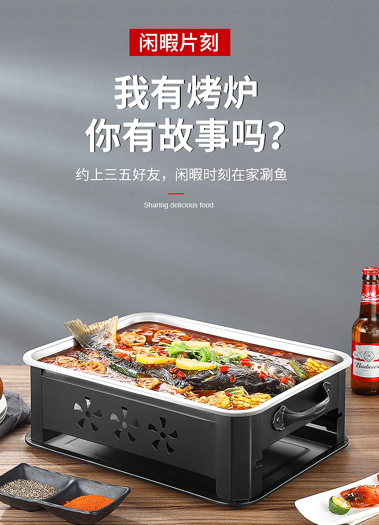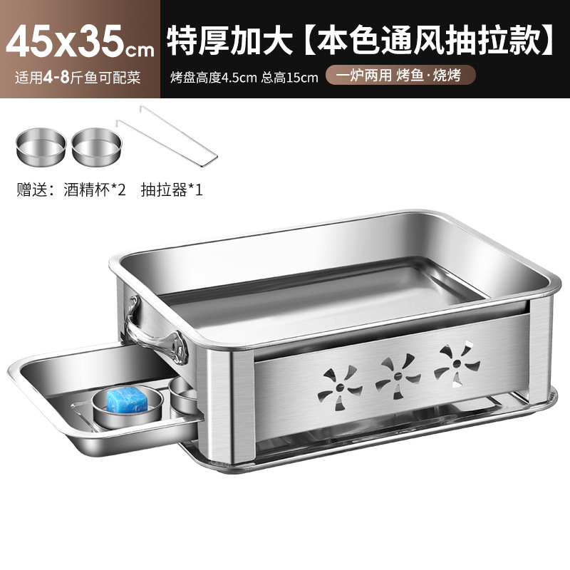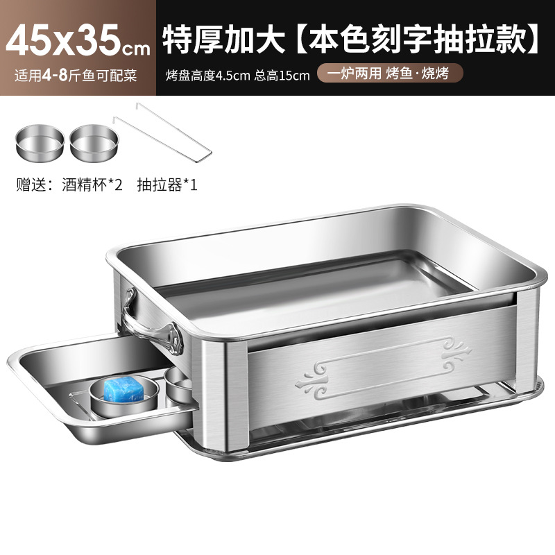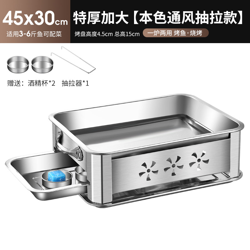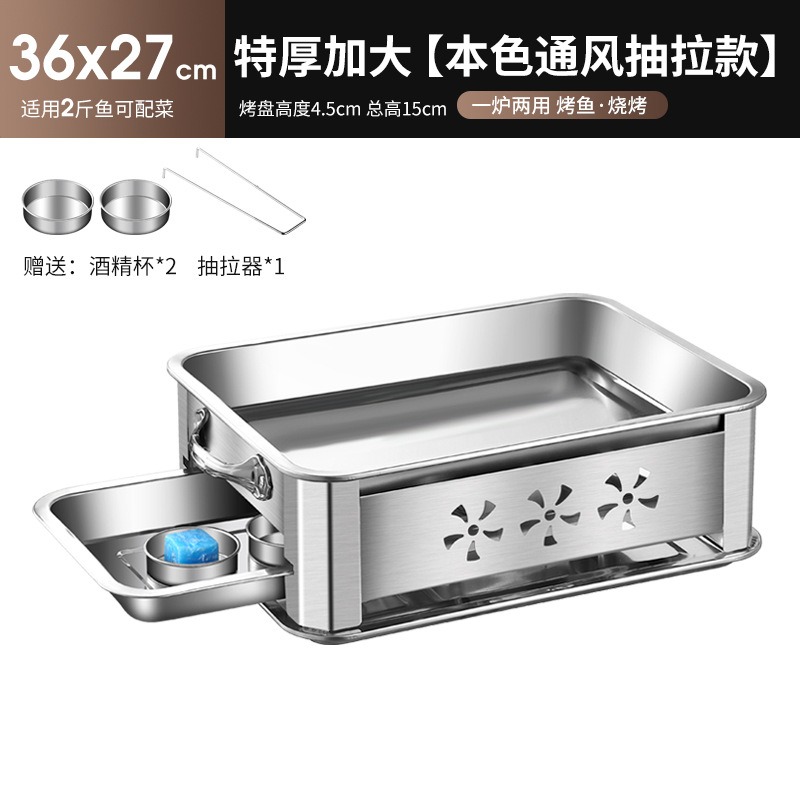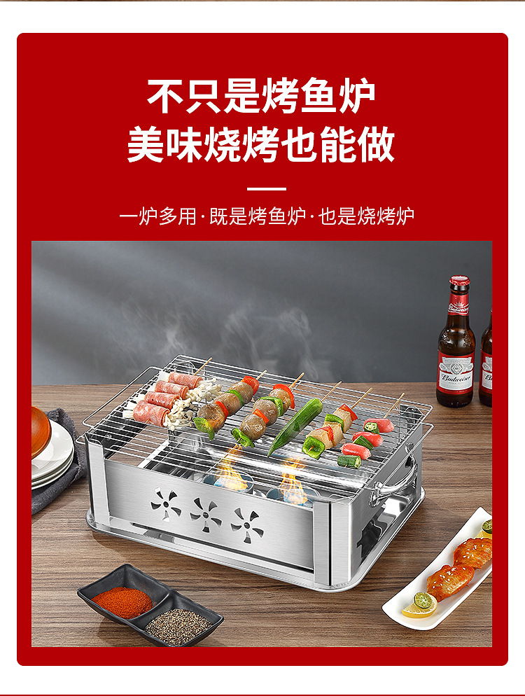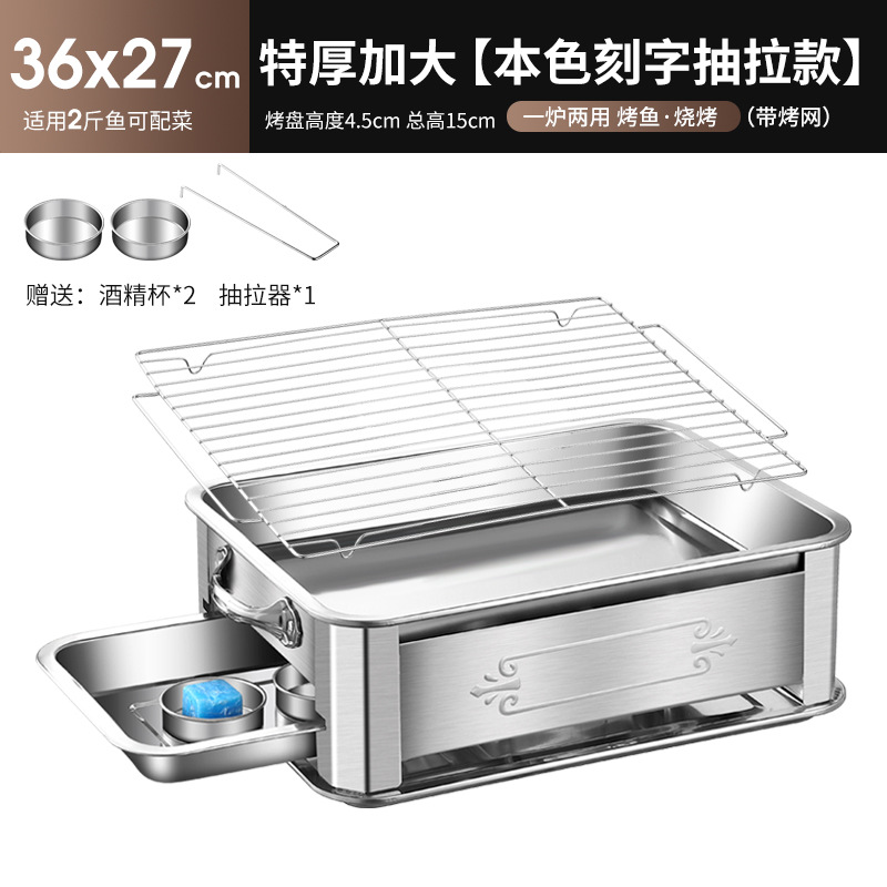 레스토랑 알코올 생선 트레이 스테인레스 스틸 숯 생선 그릴 상업용 긴 그릴 두꺼운 그릴 소스 제조 업체스토어 가기
