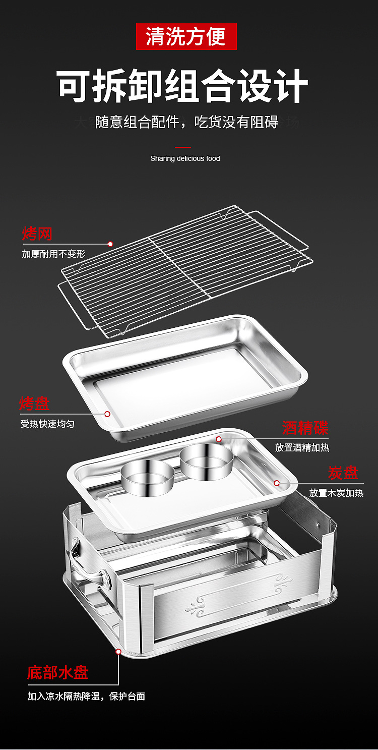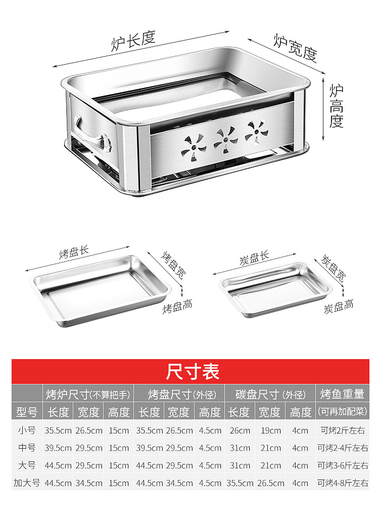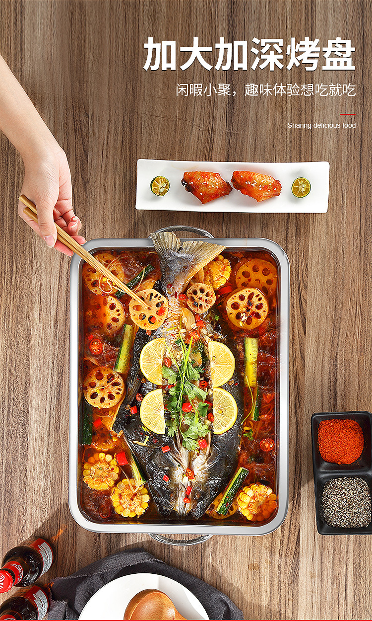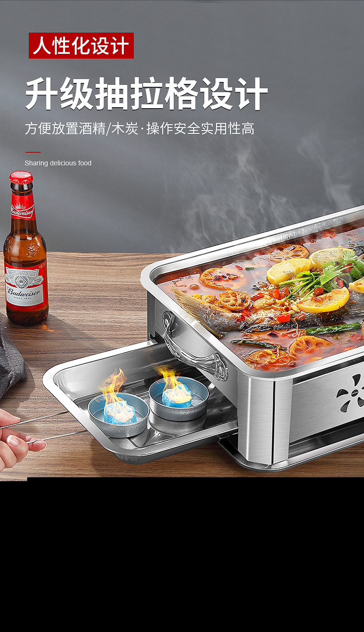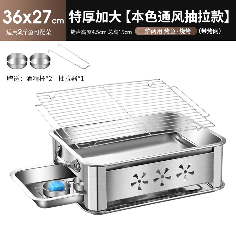 레스토랑 알코올 생선 트레이 스테인레스 스틸 숯 생선 그릴 상업용 긴 그릴 두꺼운 그릴 소스 제조 업체스토어 가기