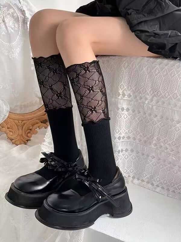 레이스 스플 라이스 양말 여성 가을 송아지 양말 하이 튜브 인 발레 스타일 부츠 양말 레이스 땀 흡수 레이스 파일 양말