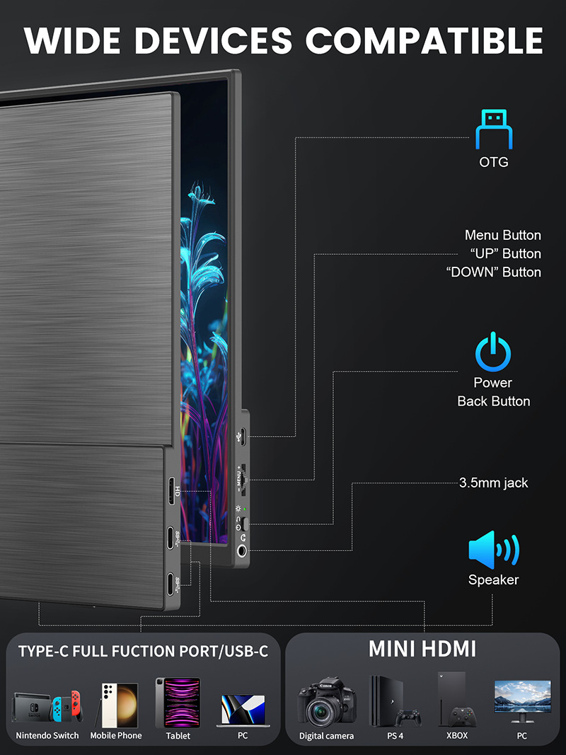 14.5 "4K 휴대용 디스플레이 풀 메탈 CNC 솜씨 NS 게임 한 줄 직접 연결 확장 외부 화면