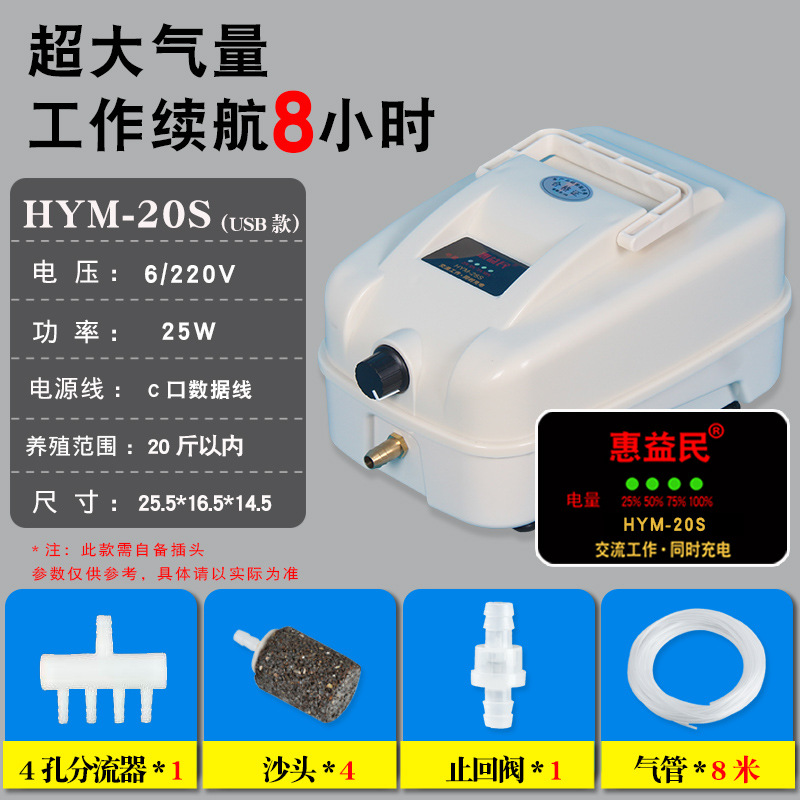 Huiyimin 리튬 배터리 산소 펌프 충전 AC/DC 이중 목적 방수 야외 낚시 산소 펌프 어항 충전 산소스토어 가기