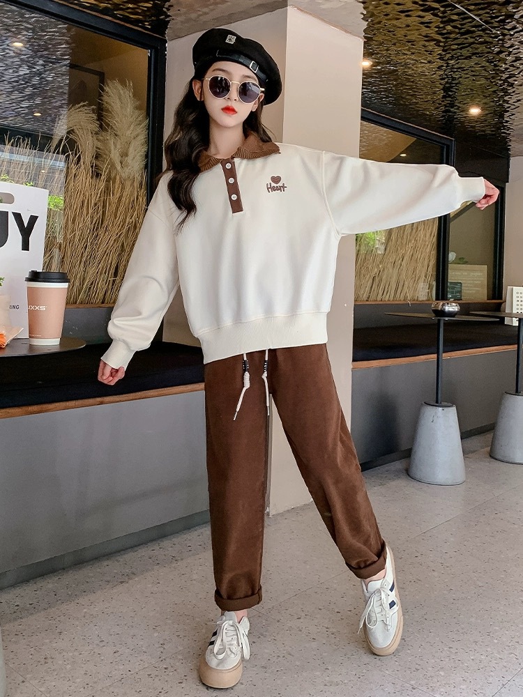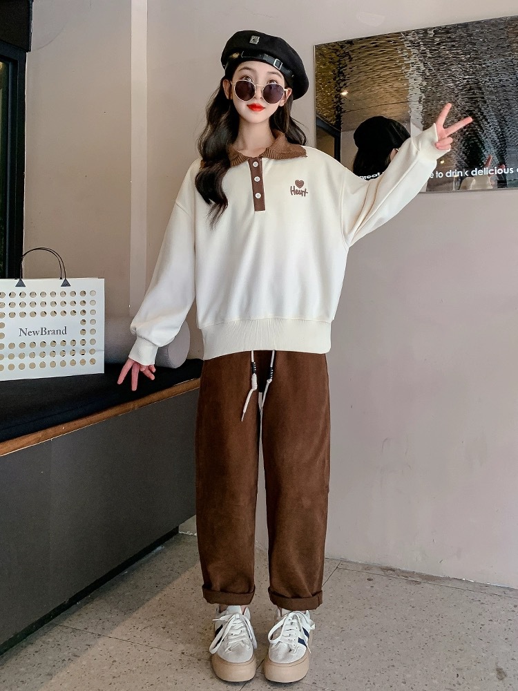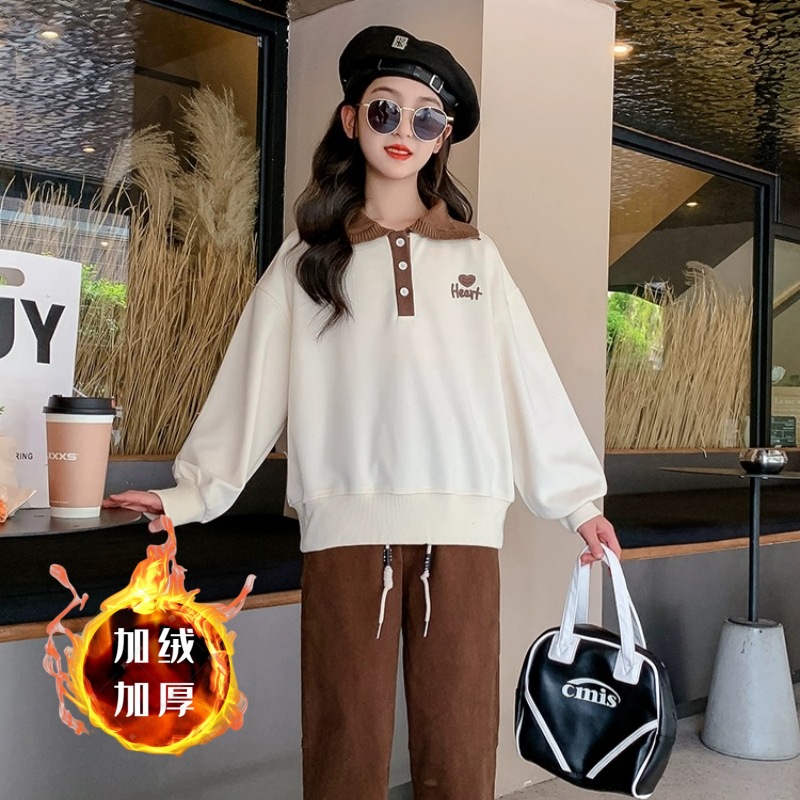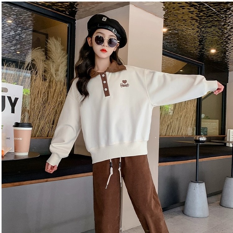 여아 스웨터 가을과 겨울 2023 새로운 세련된 폴로 셔츠 탑 중간 및 큰 아동베이스 셔츠 여아 탑 가을 패션