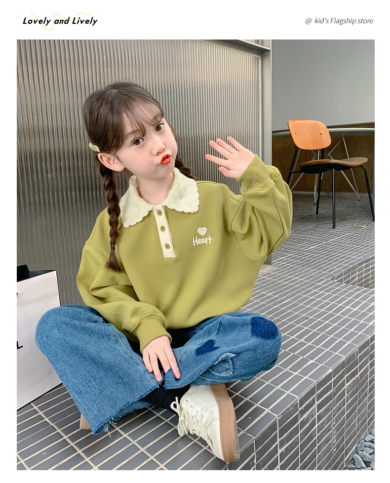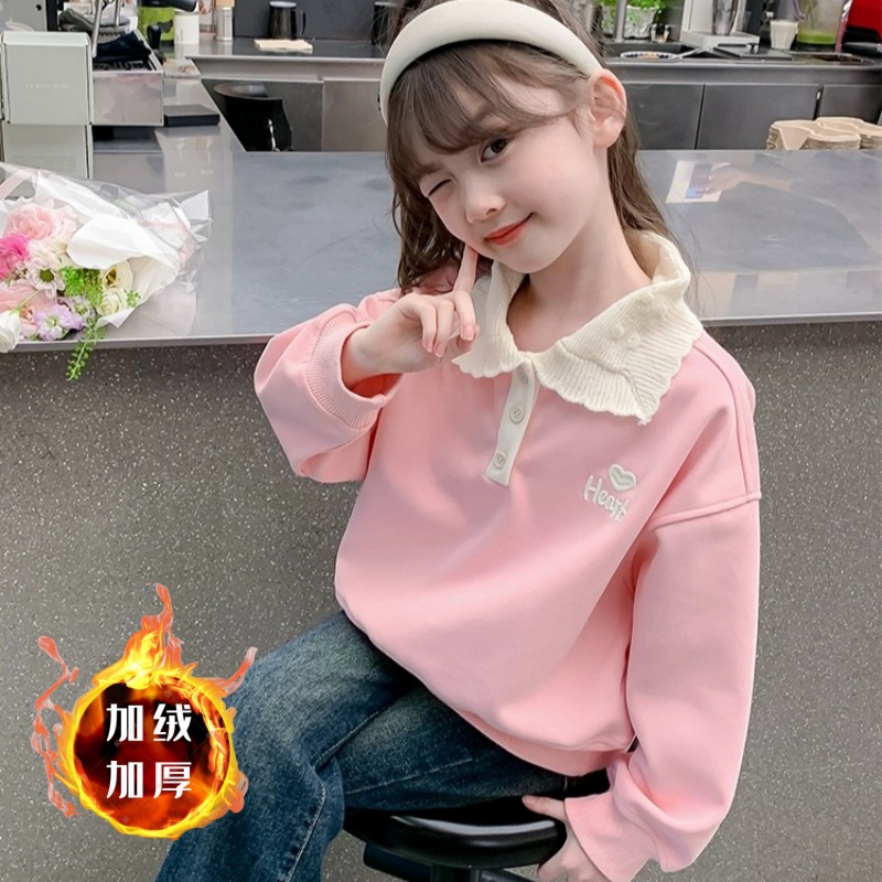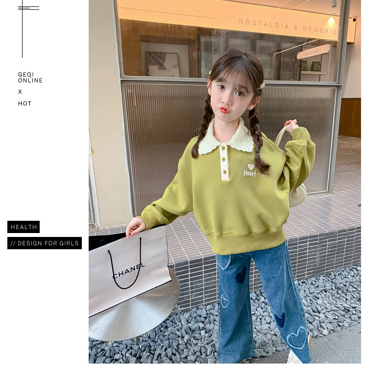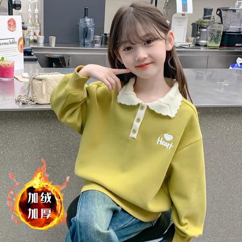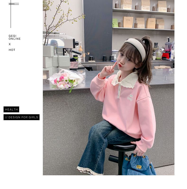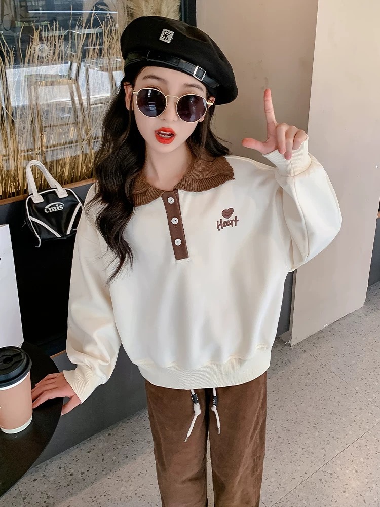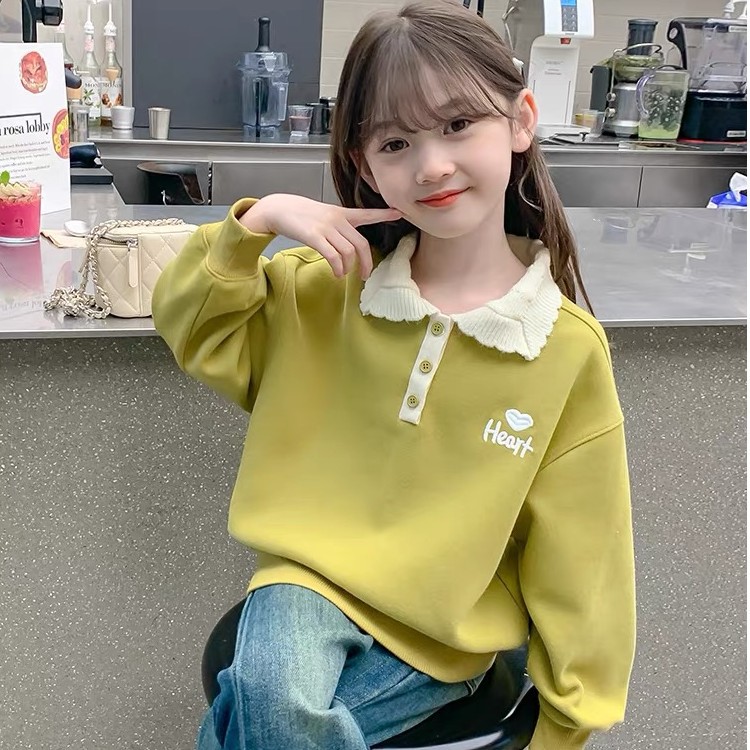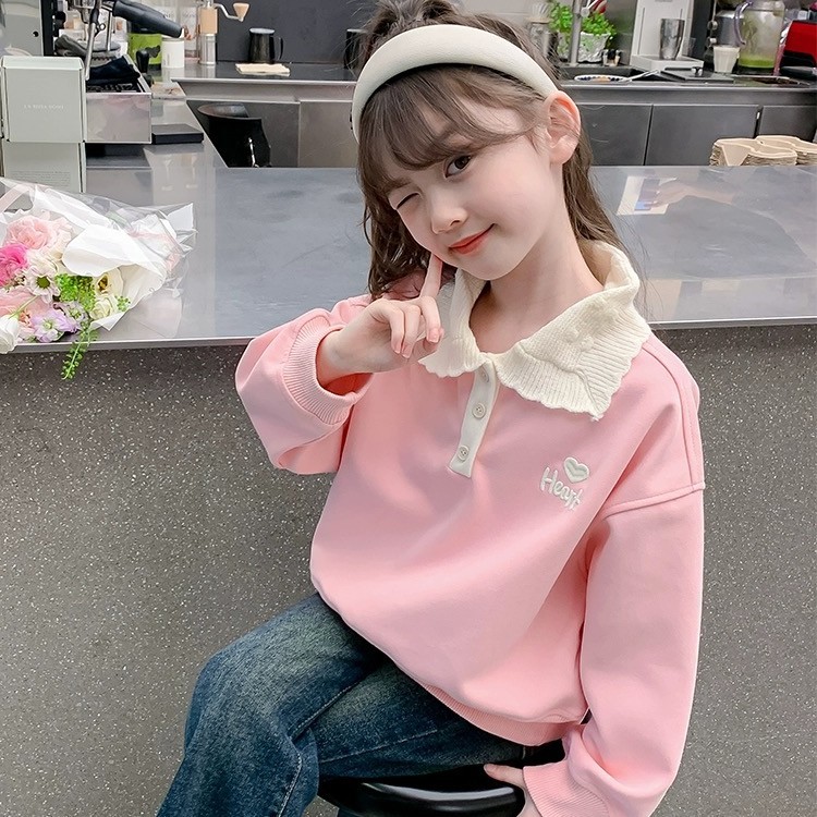 여아 스웨터 가을과 겨울 2023 새로운 세련된 폴로 셔츠 탑 중간 및 큰 아동베이스 셔츠 여아 탑 가을 패션스토어 가기