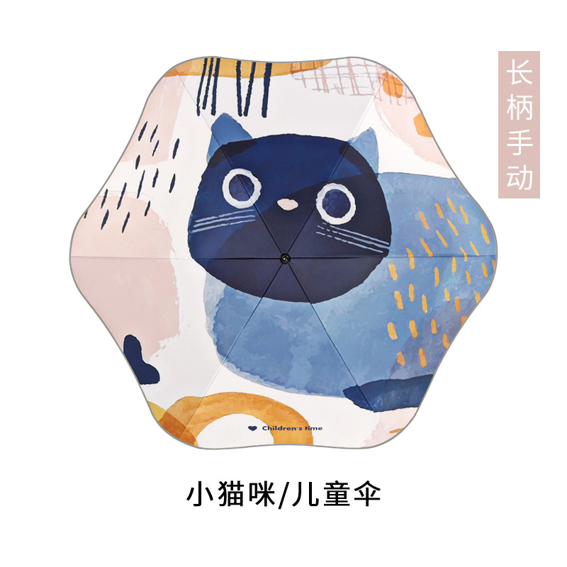 • 둥근 둥근 어린이 스트레이트 막대 우산 새끼 고양이