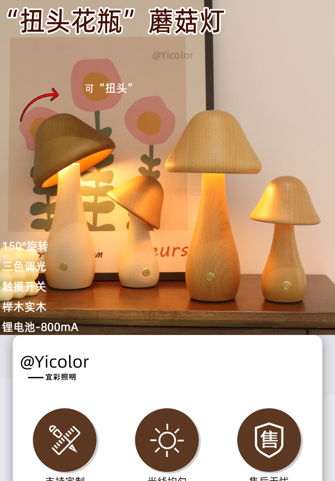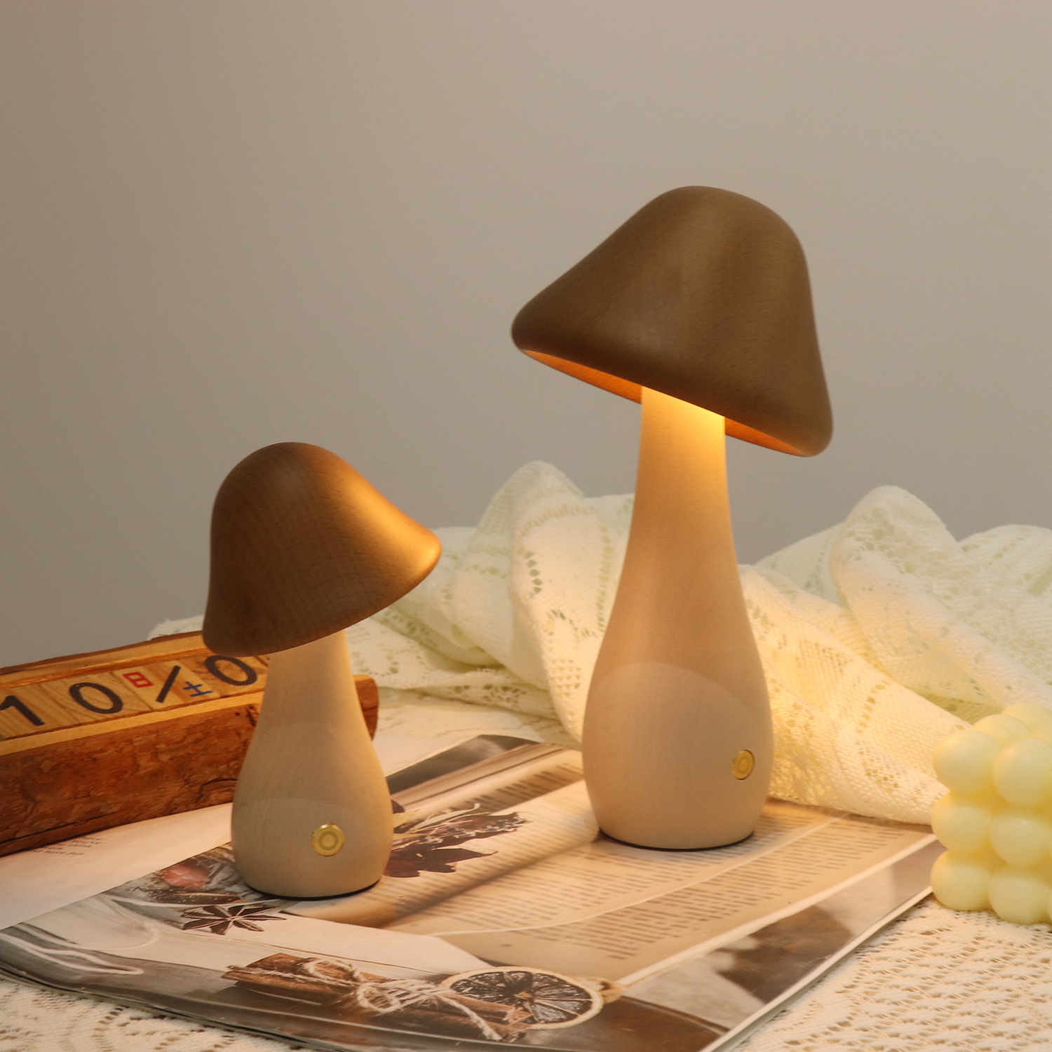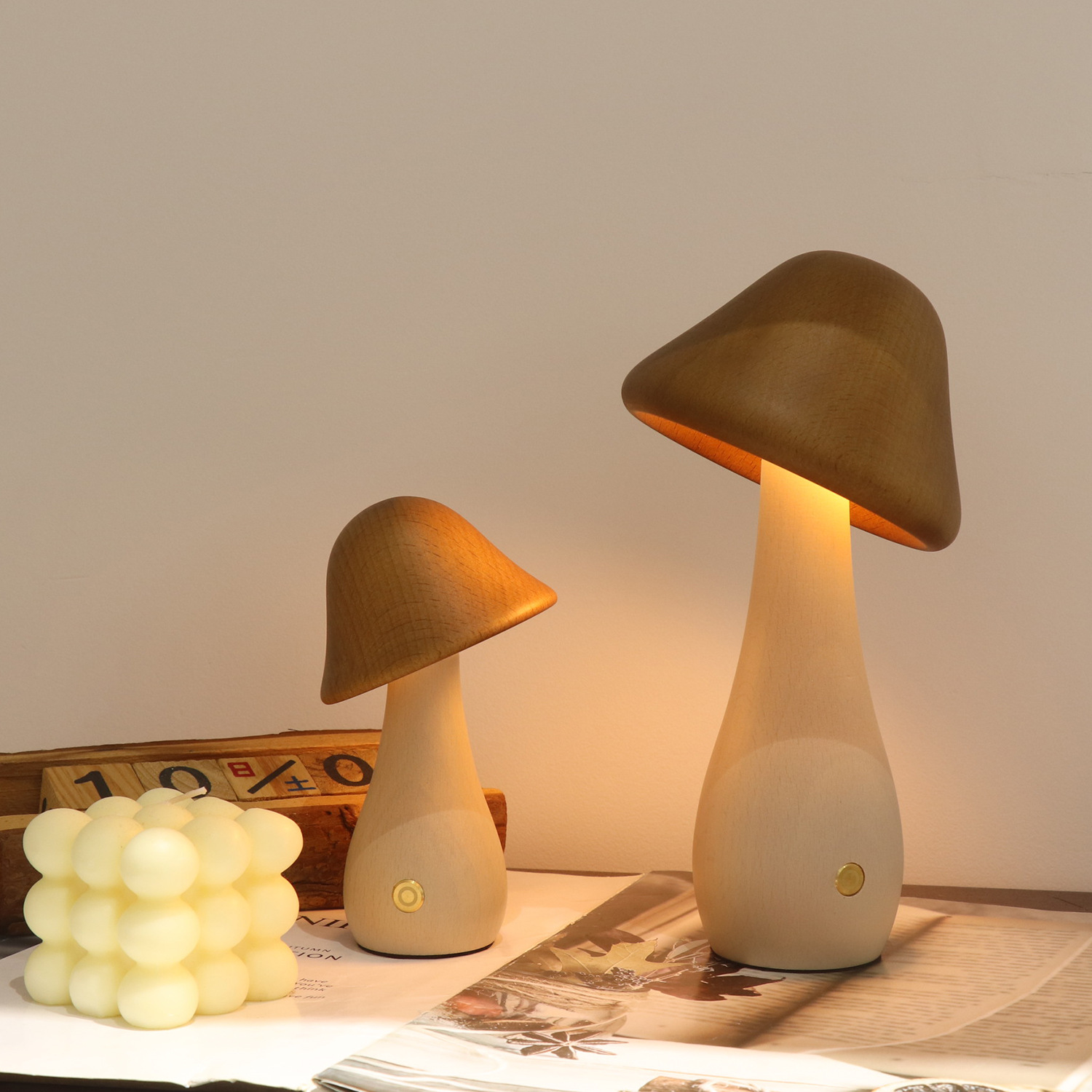 창조적 인 분위기 침대 옆 침실 장식 트위스트 헤드 꽃병 버섯 램프 너도밤 나무 자연 장식 야간 조명