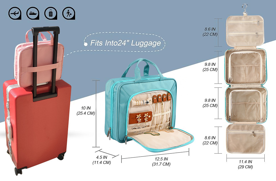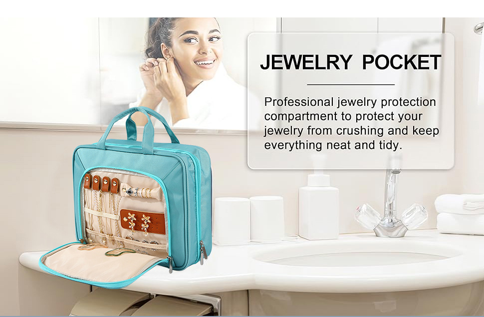 국경을 넘는 아마존 인기 여행용 걸이형 세면도구 가방, 새로운 건식 및 습식 분리 보석류 수납 가방