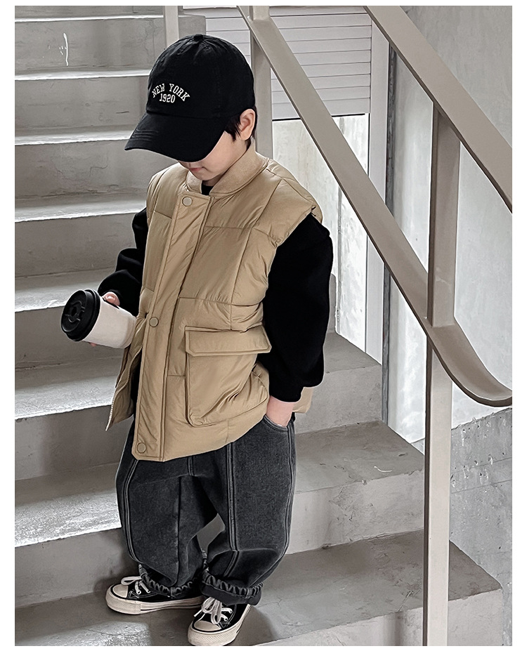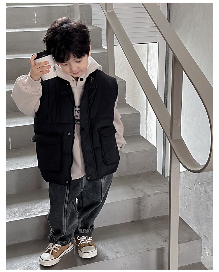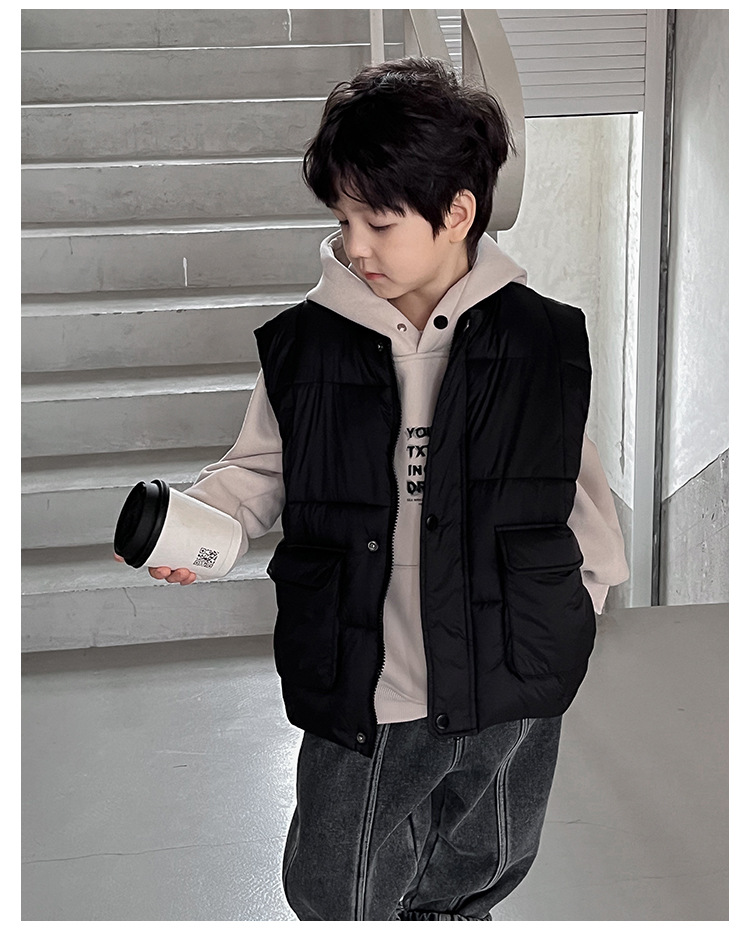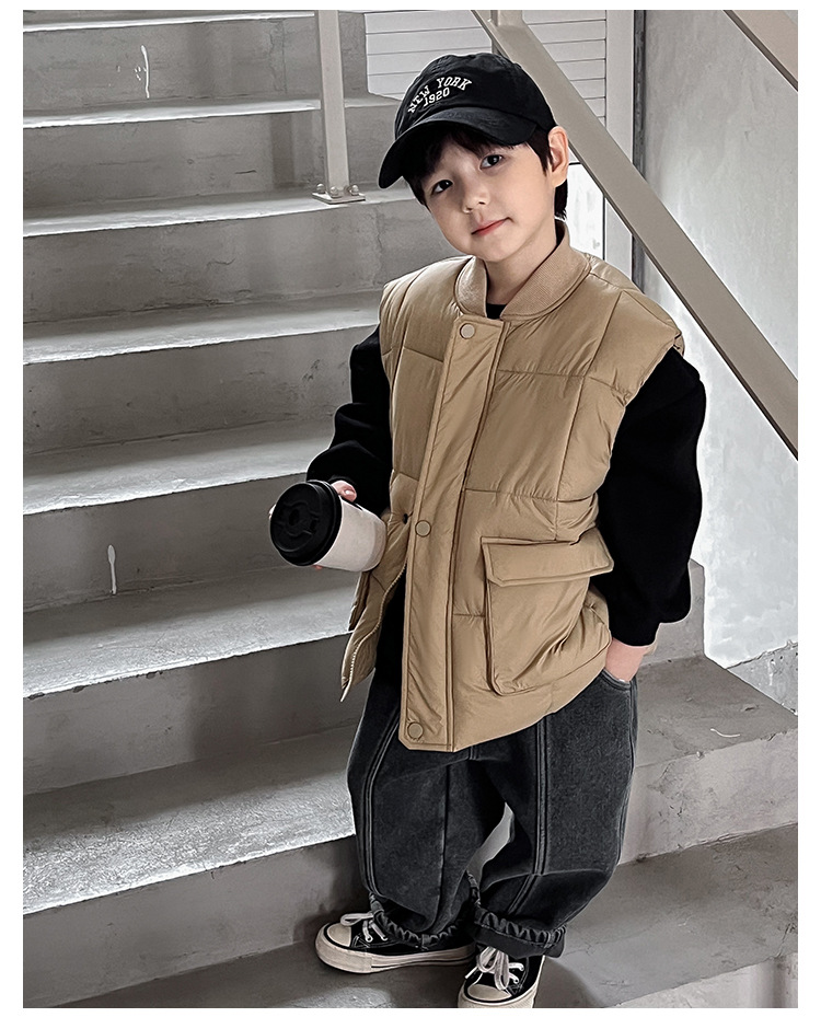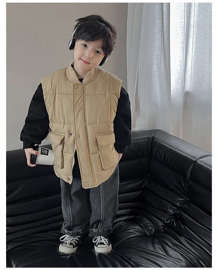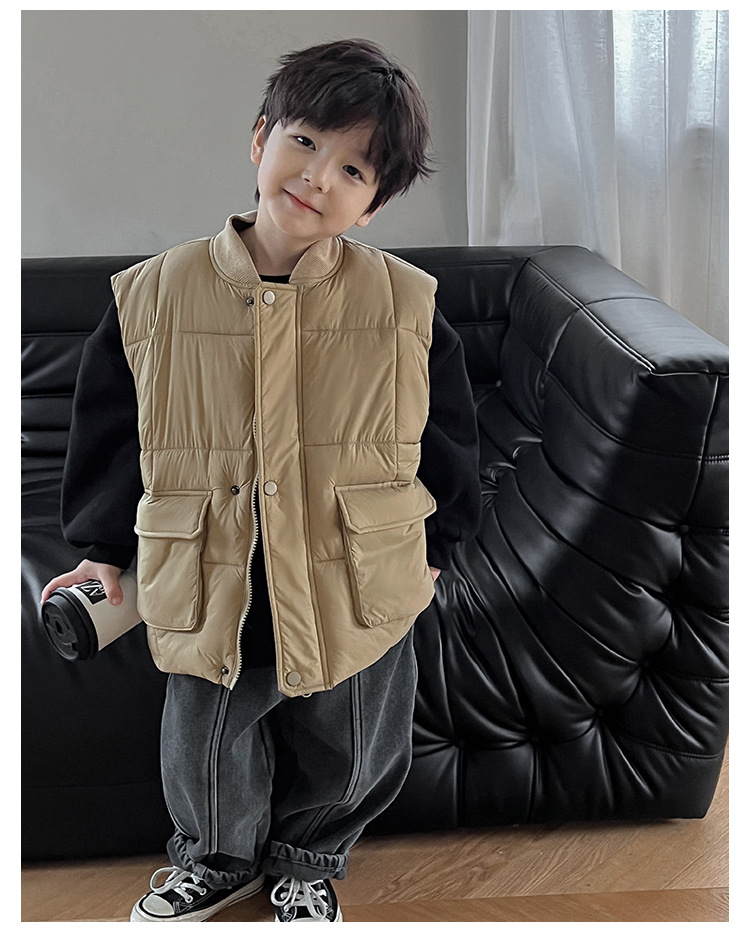 【클리어런스 특가】아동용 겨울 한국 스타일 멋진 유아용 면옷 단색 스탠드 칼라 두꺼운 작업복 스타일 남아 조끼