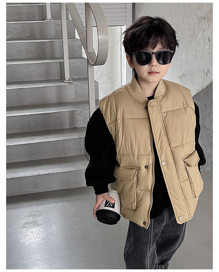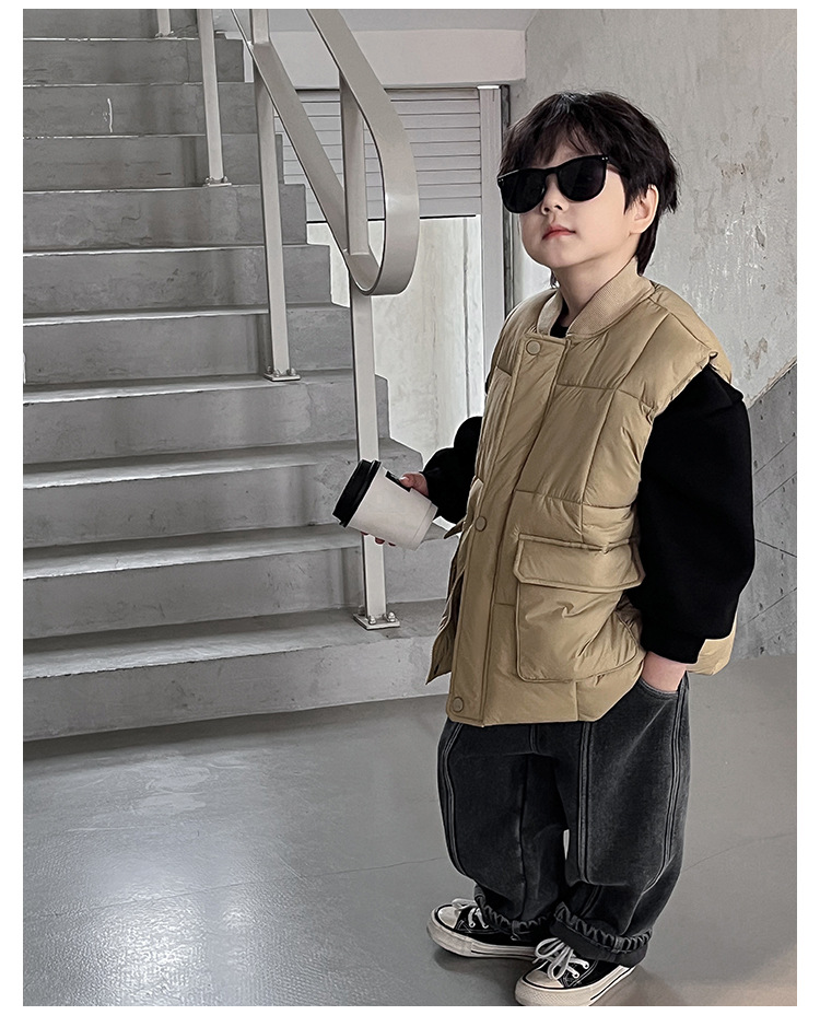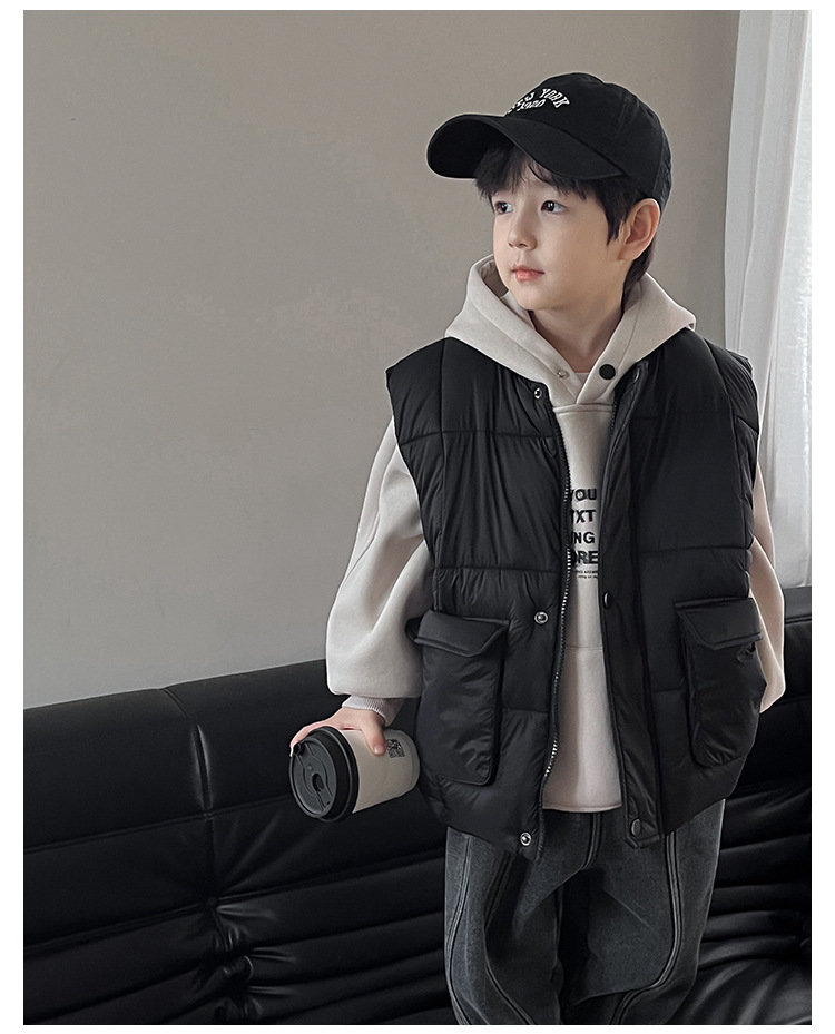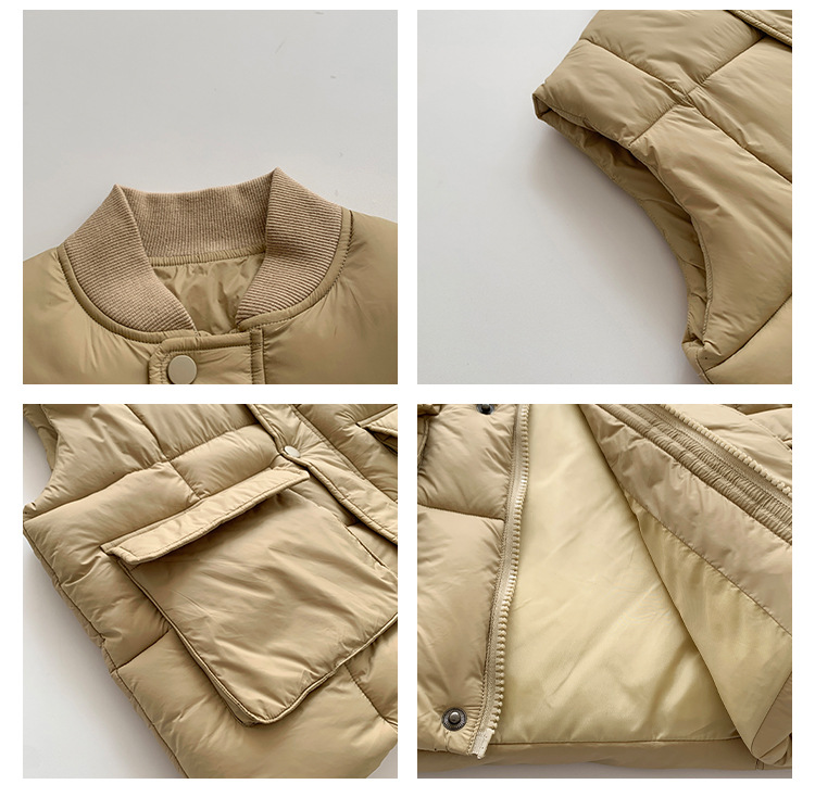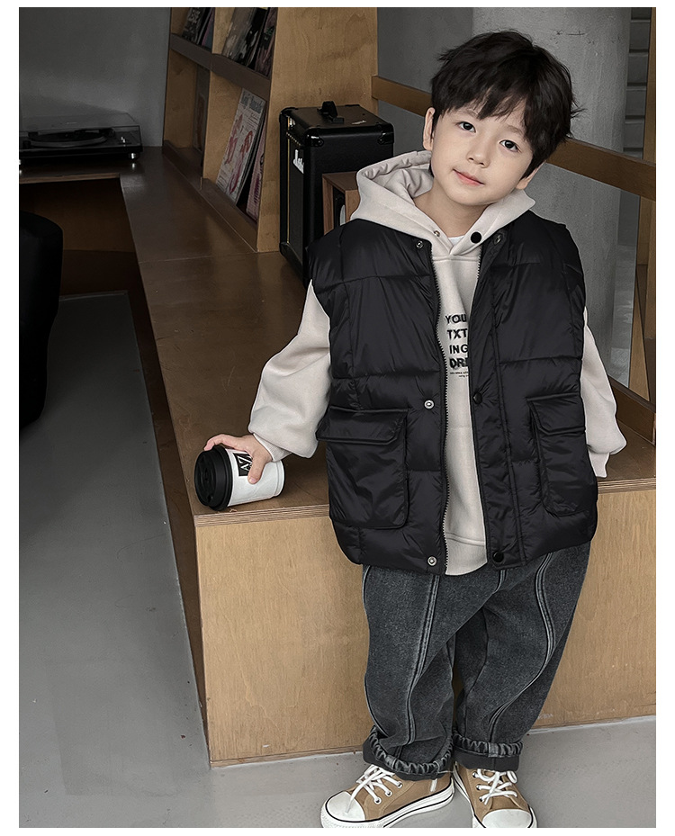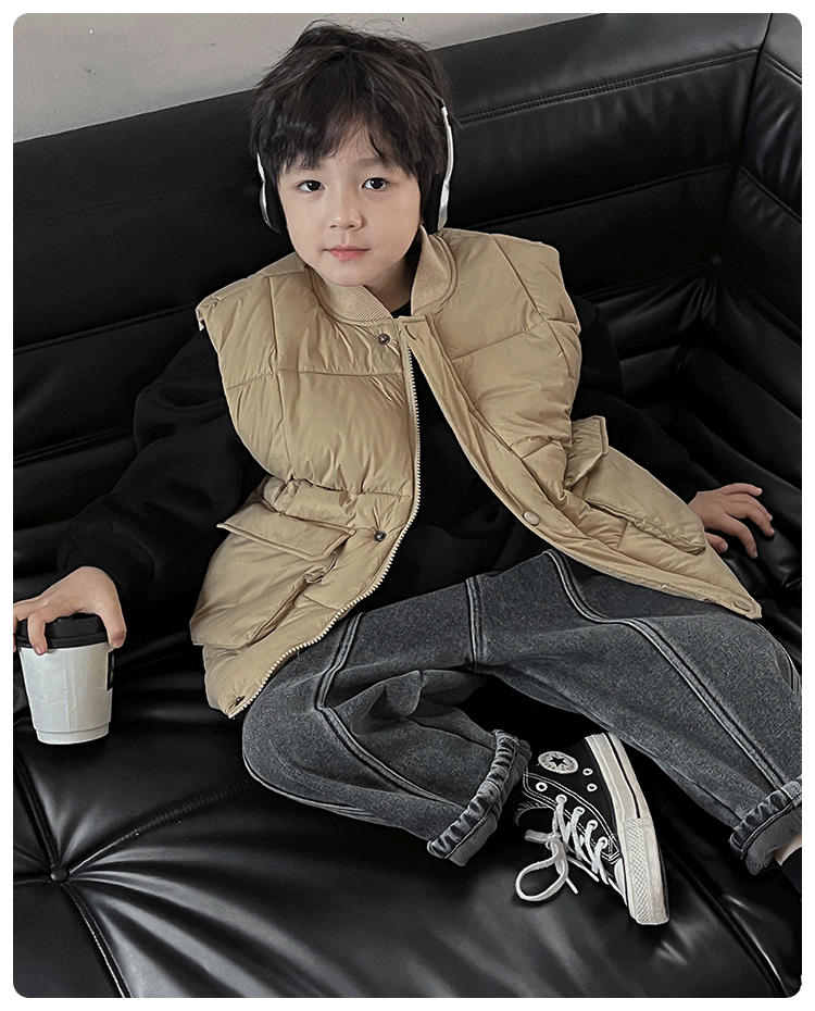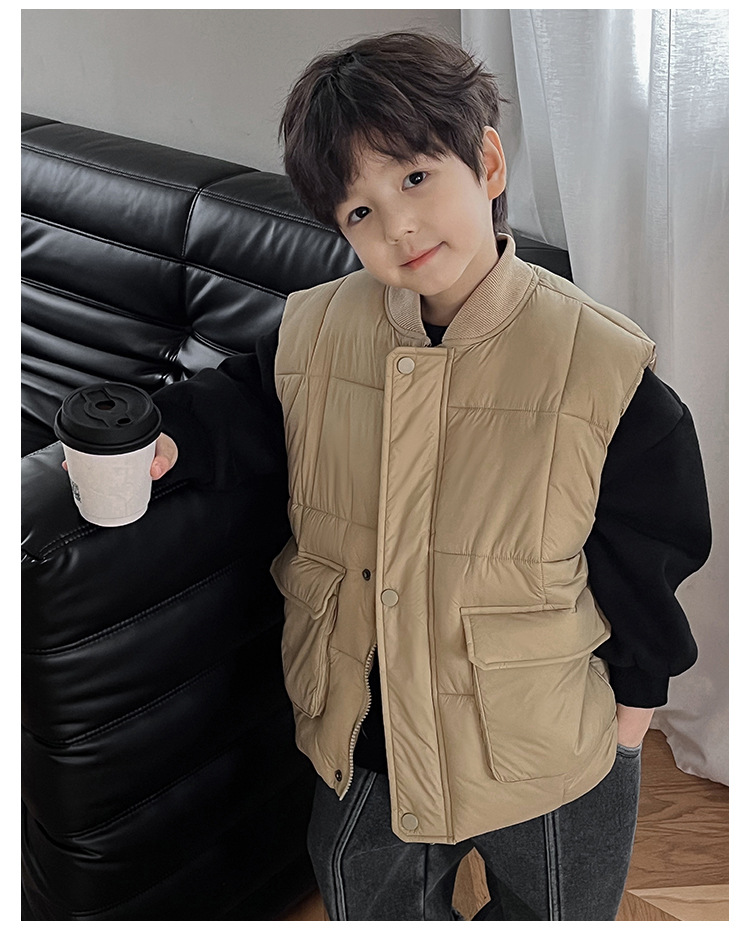 【클리어런스 특가】아동용 겨울 한국 스타일 멋진 유아용 면옷 단색 스탠드 칼라 두꺼운 작업복 스타일 남아 조끼