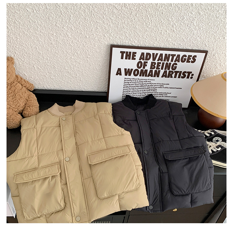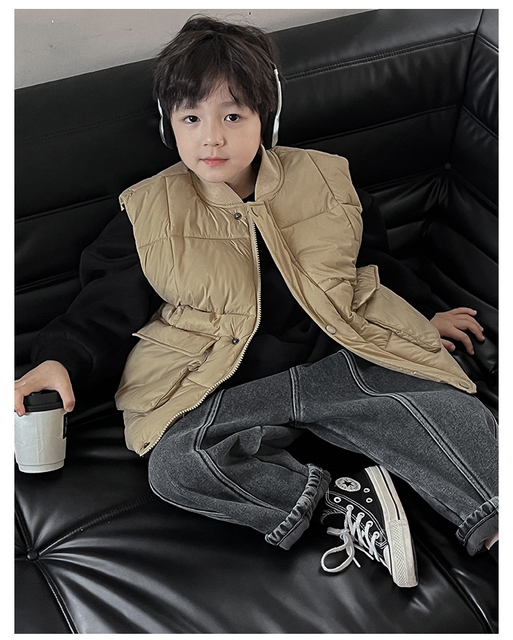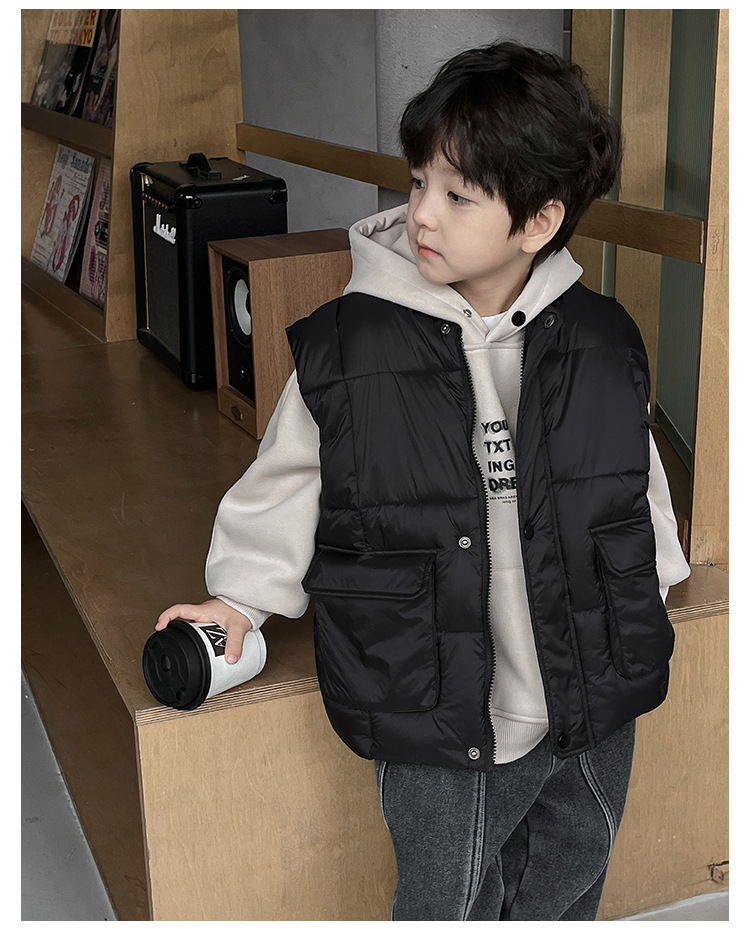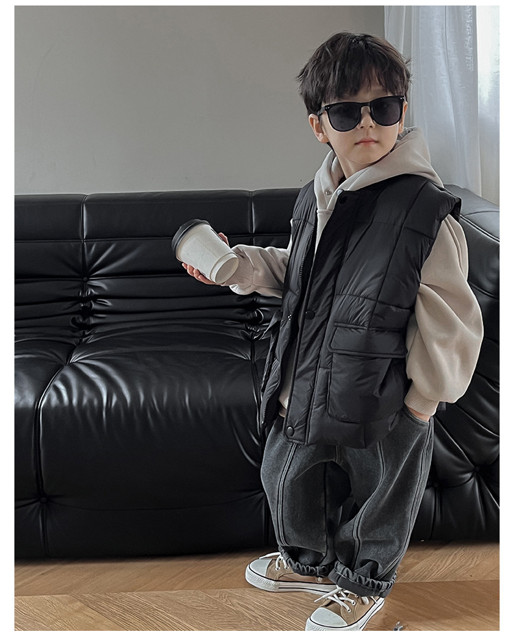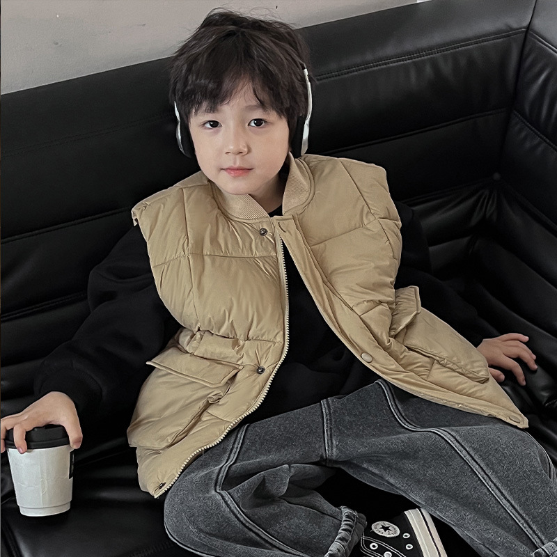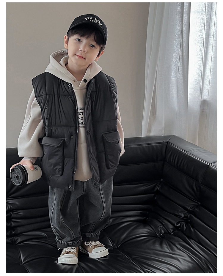 【클리어런스 특가】아동용 겨울 한국 스타일 멋진 유아용 면옷 단색 스탠드 칼라 두꺼운 작업복 스타일 남아 조끼