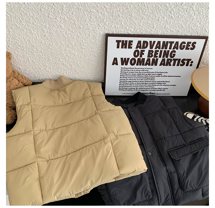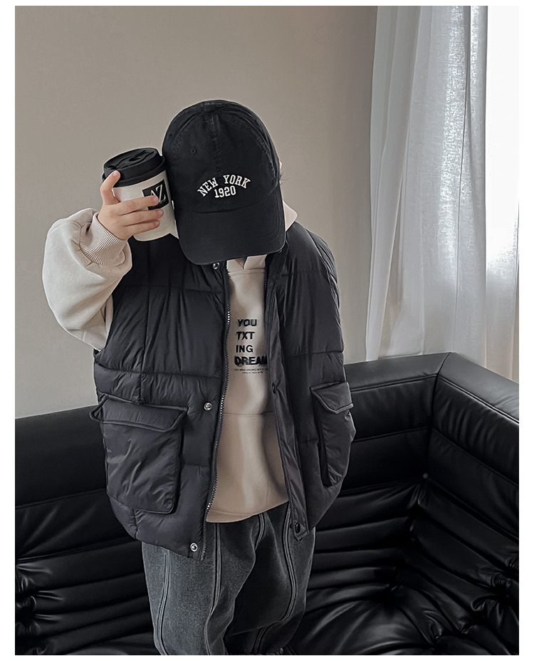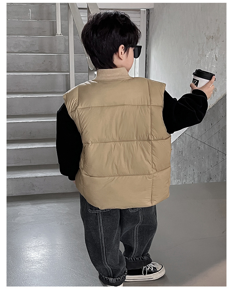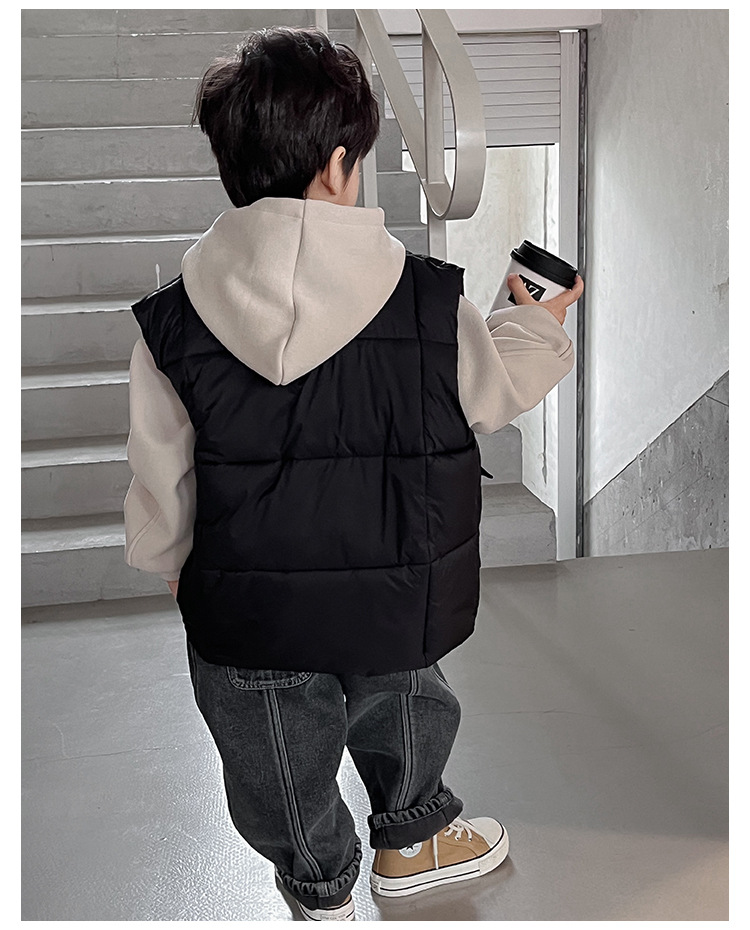 【클리어런스 특가】아동용 겨울 한국 스타일 멋진 유아용 면옷 단색 스탠드 칼라 두꺼운 작업복 스타일 남아 조끼스토어 가기
